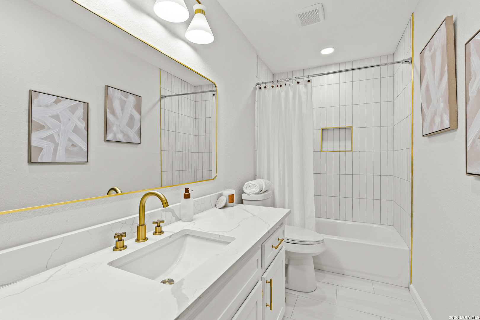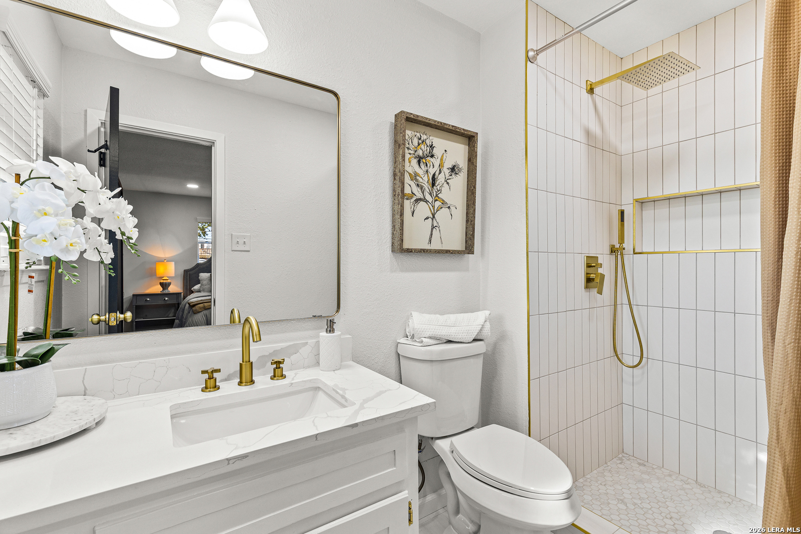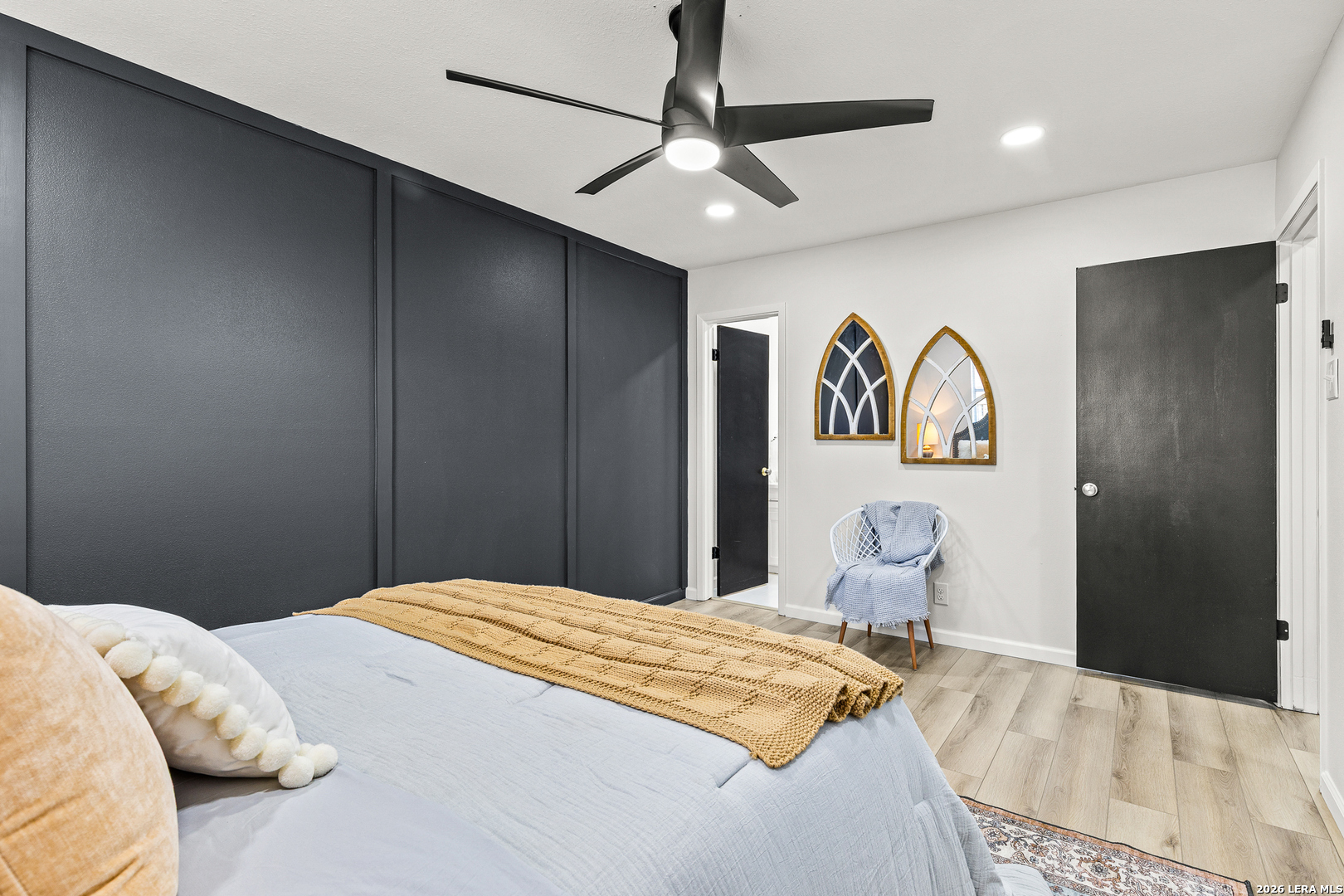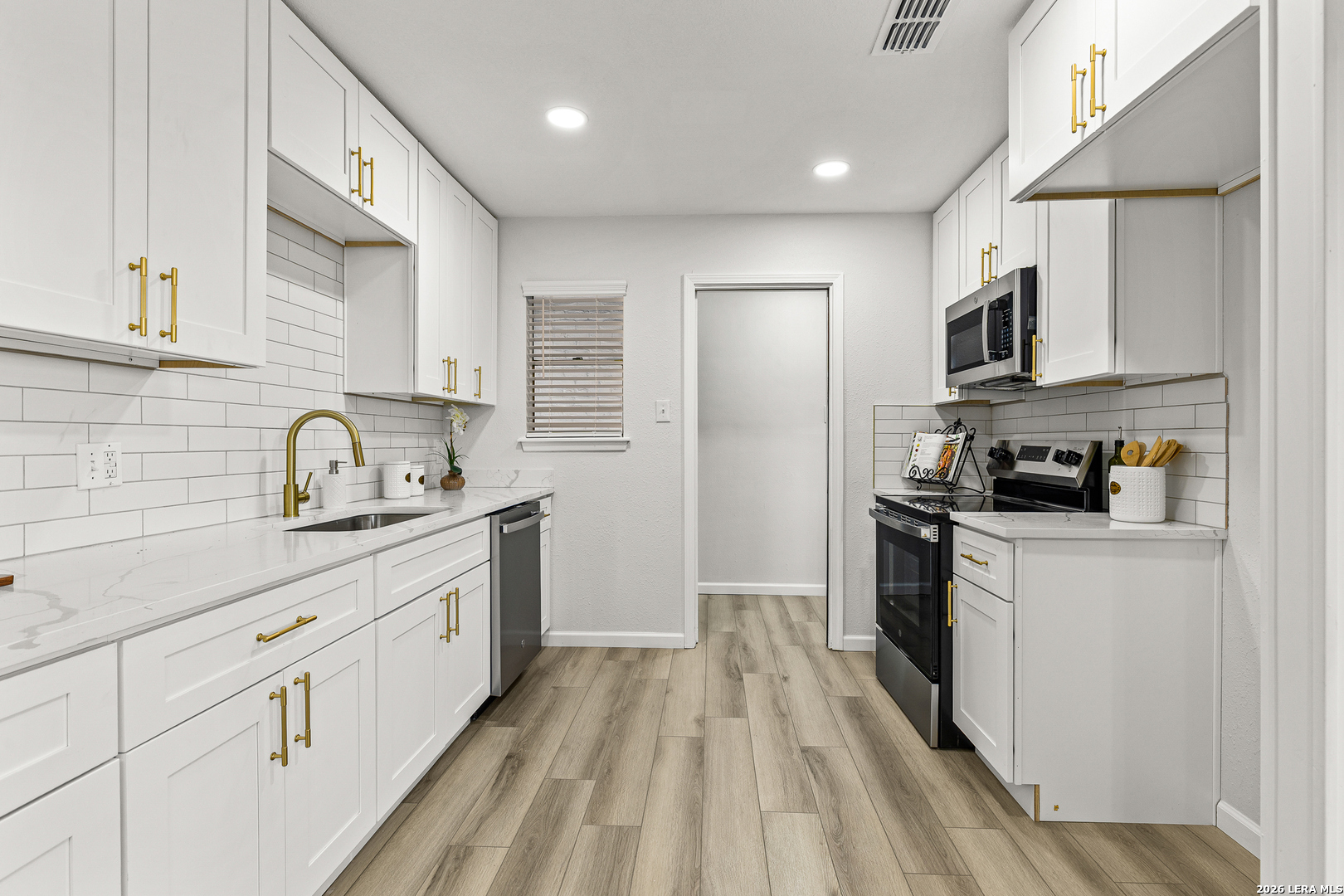 Welcome to 6526 Forest Grove a fully updated 4-bedroom, 2-bath home on a spacious corner lot in a convenient San Antonio location. From the moment you step inside, the open layout and vaulted ceilings with exposed wood beams make a statement. The living, dining, and kitchen areas flow seamlessly together, creating a bright, inviting space that feels both modern and comfortable. The dark accent fireplace wall adds character, while the updated flooring throughout ties everything together beautifully. The kitchen has been refreshed with clean white cabinetry, stylish backsplash, and updated finishes that complement the home's light, airy feel. Whether you're hosting friends or enjoying a quiet evening in, the open floor plan makes everyday living easy. Both bathrooms have been thoughtfully remodeled with contemporary touches. The walk-in shower with sleek tilework, gold fixtures, and built-in niche gives the primary bath a high-end feel. Every detail has been carefully selected to create a clean, modern look without losing warmth. Step outside to a large covered patio overlooking a generous backyard shaded by mature trees perfect for weekend barbecues, pets, or simply relaxing in the evenings. The corner lot provides extra space and added privacy, plus excellent curb appeal. Location is another highlight. You're just minutes from major highways for an easy commute, along with nearby schools, shopping, dining, and everyday conveniences. If you're looking for a move-in ready home with character, updates, and a great layout in a well-connected part of San Antonio, 6526 Forest Grove is one you won't want to miss.