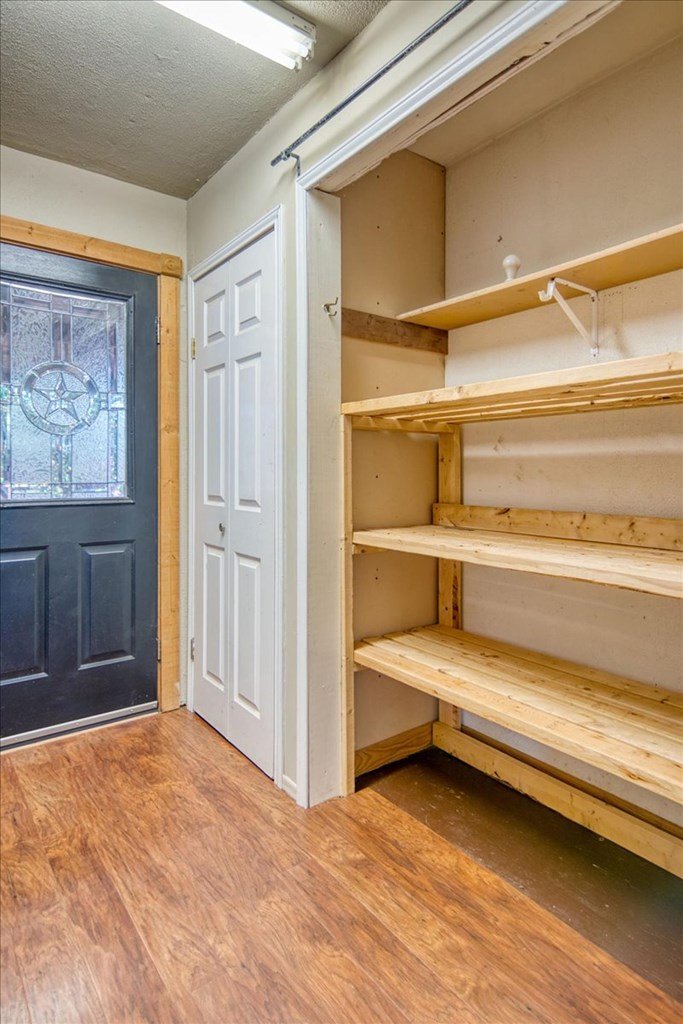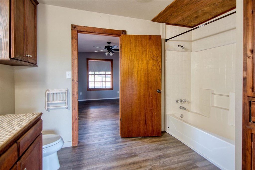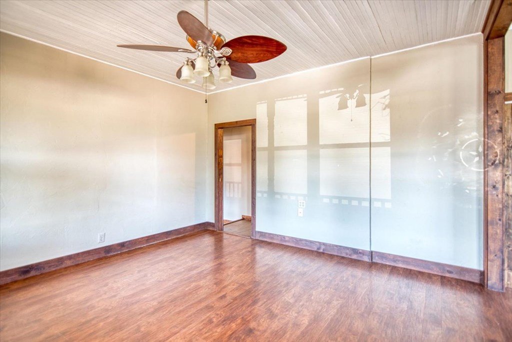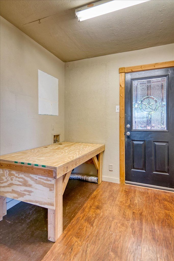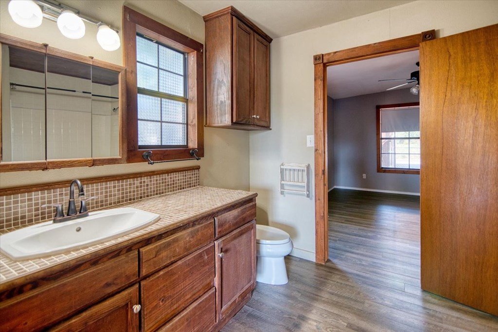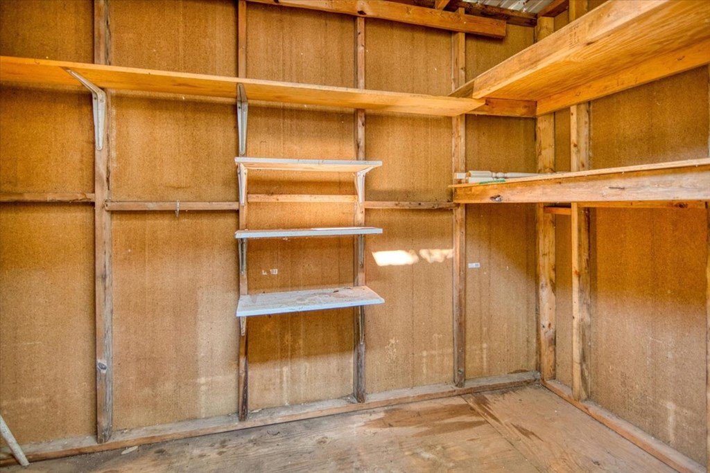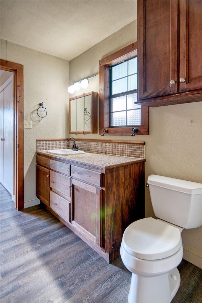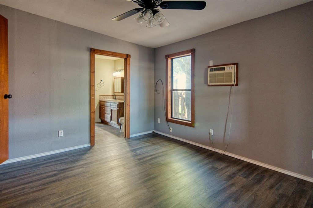 This charming 1940s residence features four bedrooms and 1.5 bathrooms. The kitchen is designed with ample cabinet space, built-in features, and a connection for a gas range, complemented by a bar area for additional seating. The front yard is adorned with two majestic live oak trees and a plum tree, along with a traditional front porch that adds to its curb appeal. Accessed from a side street, the property includes a spacious covered double carport with a paved driveway. Additional highlights of the home include a covered back patio, two storage buildings, multiple large closets, a privacy fence in the backyard, and chain link fencing in the front yard.