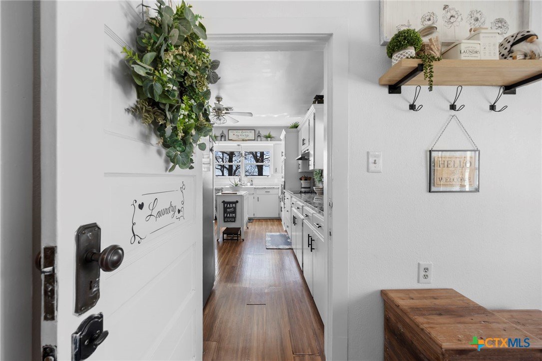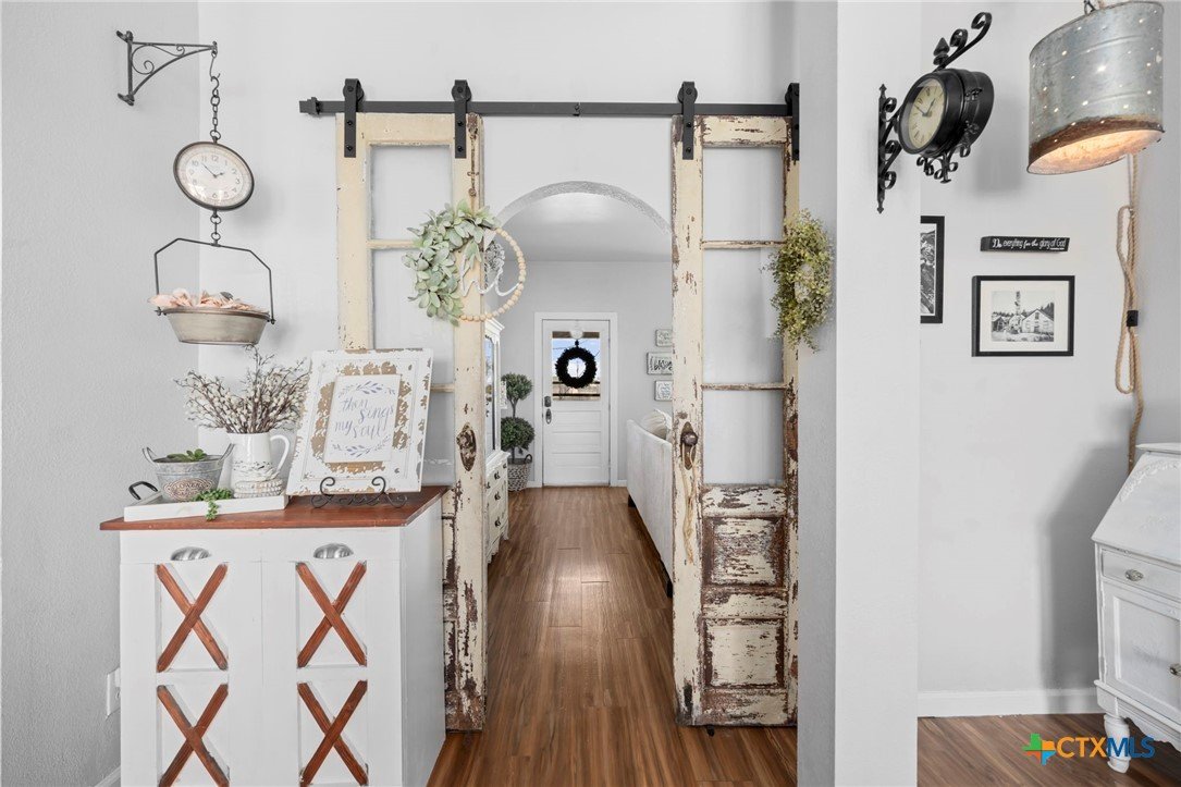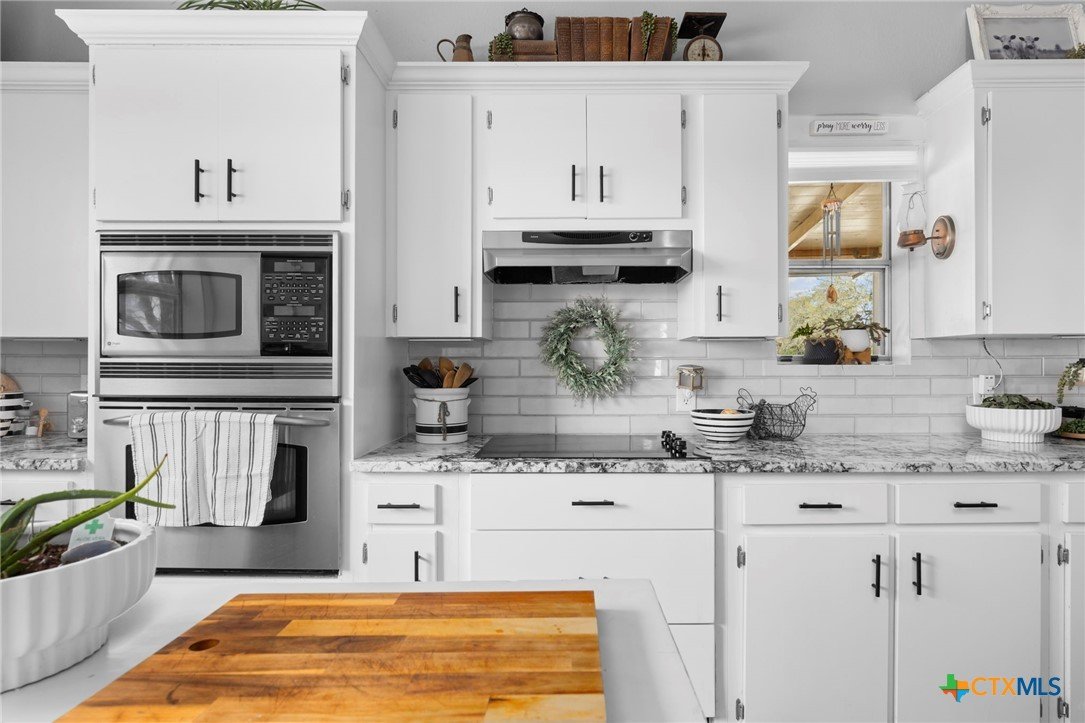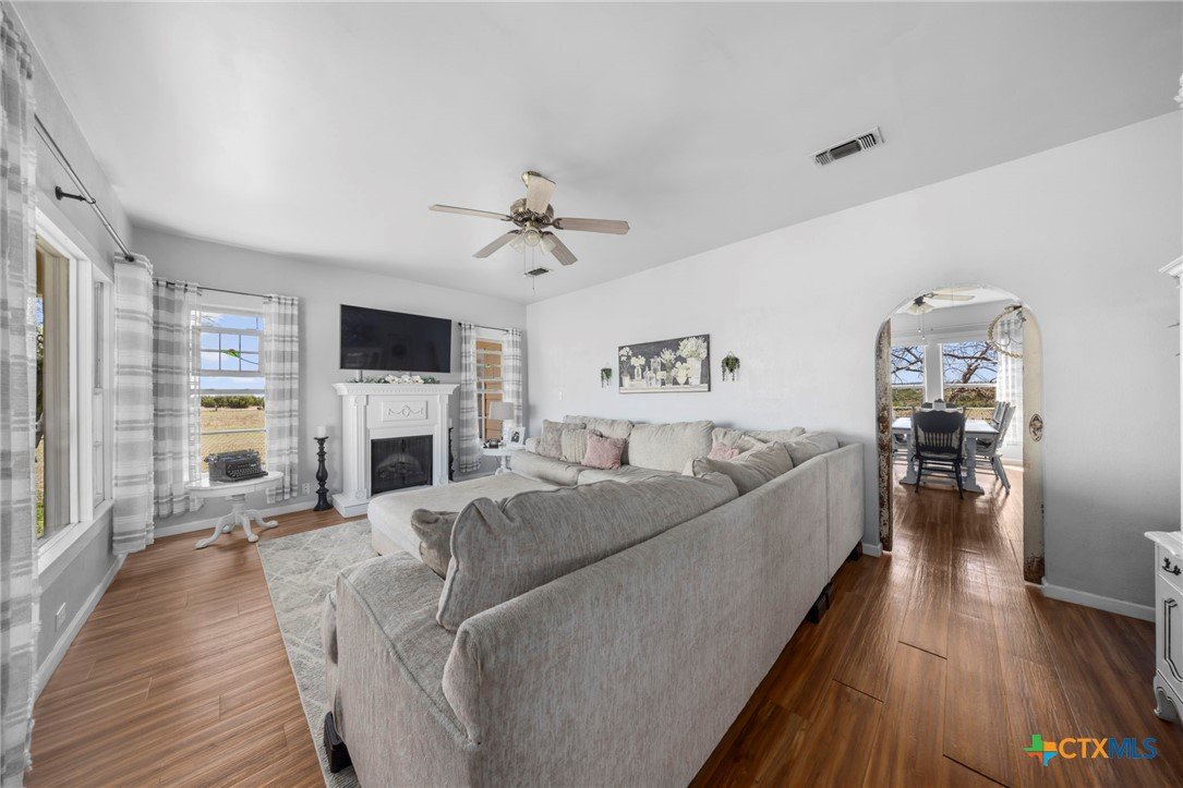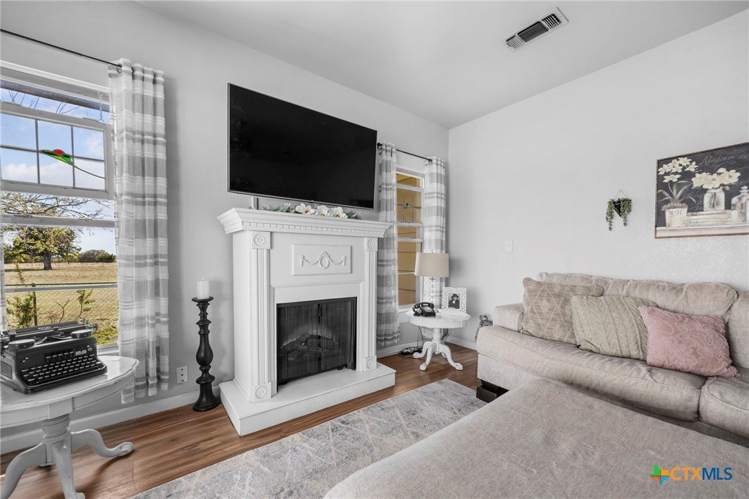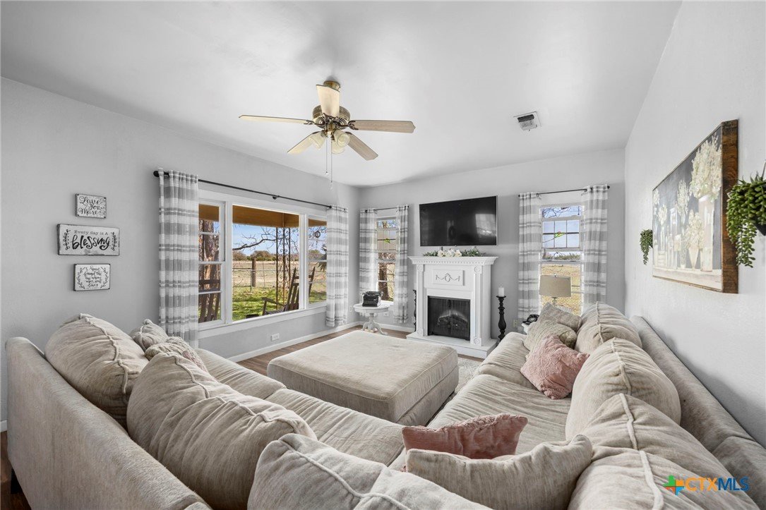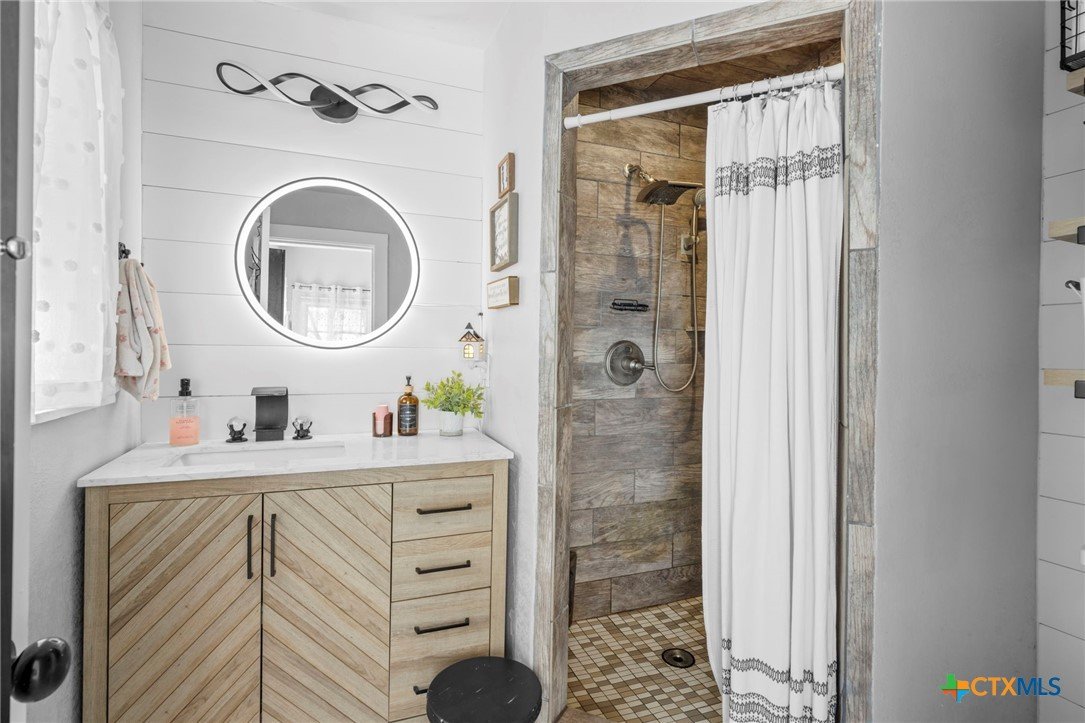 Magazine-worthy design meets refined country living—just minutes from town. Set on 7.95 picturesque acres, this beautifully restored early 1900s farmhouse delivers a rare blend of timeless character and elevated modern comfort. The 1,473 sq ft residence offers 2 bedrooms and 2 full bathrooms, thoughtfully designed with light-filled spaces and curated finishes throughout. The heart of the home features a sun-drenched kitchen, formal dining space, and an inviting living room—creating an ideal setting for both quiet evenings and effortless entertaining. A spacious laundry/mudroom adds convenience with style. Outdoors, the property transforms into a private retreat. Mature hardwood trees, sweeping pasture views, and breathtaking sunrises and sunsets define the landscape. Fully perimeter and cross-fenced, the acreage is turnkey for horses, livestock, or a refined hobby farm. Enhancing the property’s versatility is a 390 sq ft detached studio suite with a full bathroom—perfect for guests, short-term rental income, or a private office. Additional improvements include a large metal shop with bathroom, detached garage, barn, goat house, and chicken coop—blending luxury living with functional ranch amenities. Abundant wildlife, peaceful surroundings, and close proximity to Lampasas make this a rare opportunity to own a truly elevated Hill Country escape. List of upgrades upon request.