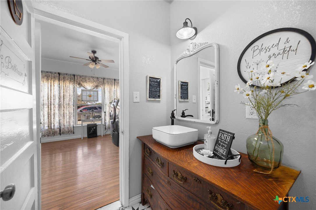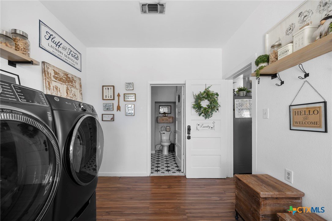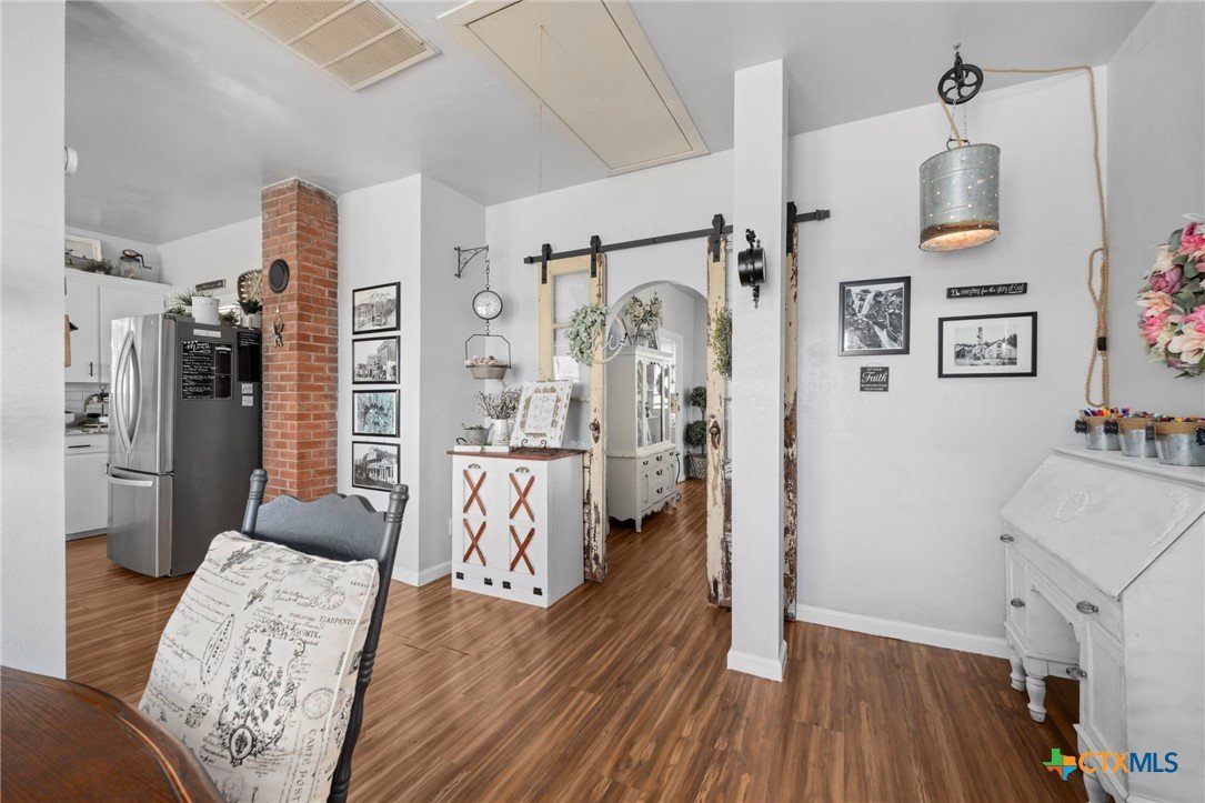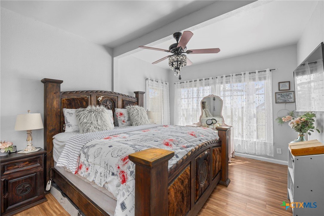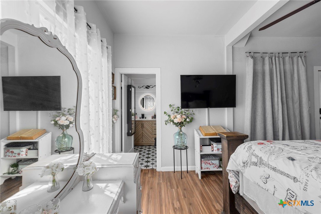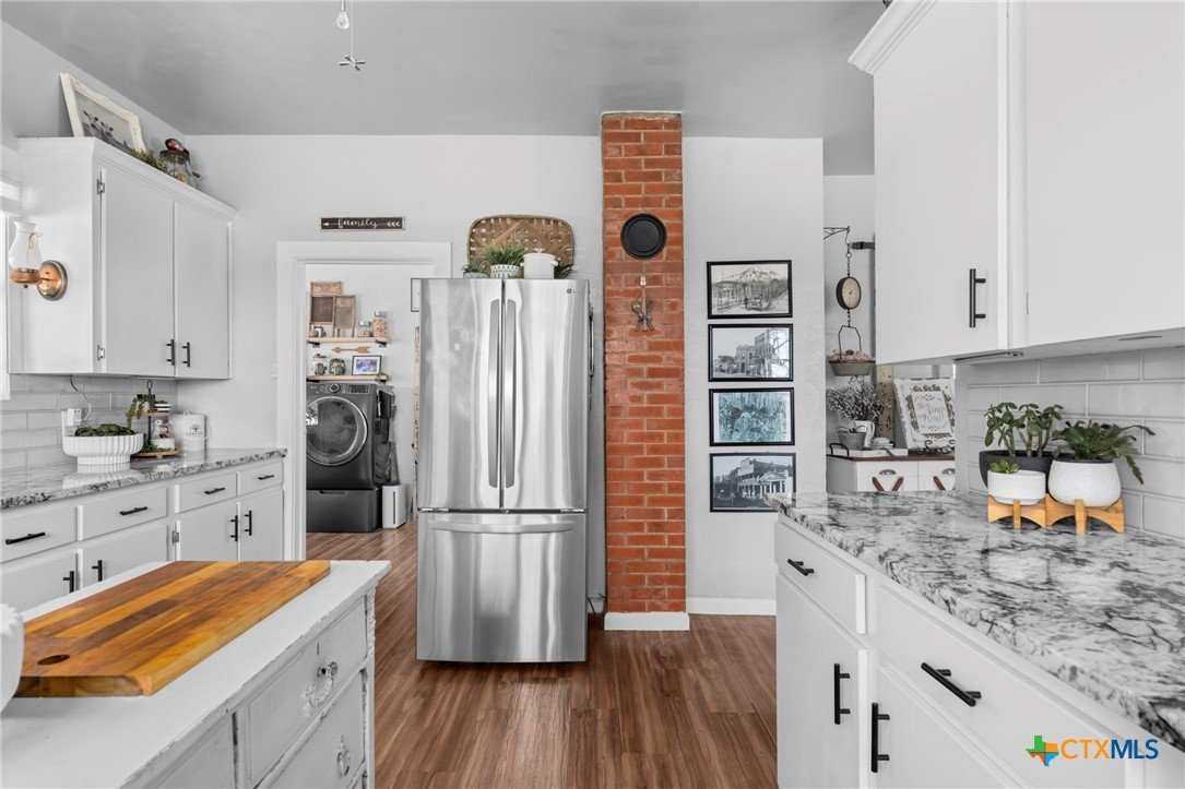 Magazine-worthy design meets refined country living—just minutes from town. Set on 7.95 picturesque acres, this beautifully restored early 1900s farmhouse delivers a rare blend of timeless character and elevated modern comfort. The 1,473 sq ft residence offers 2 bedrooms and 2 full bathrooms, thoughtfully designed with light-filled spaces and curated finishes throughout. The heart of the home features a sun-drenched kitchen, formal dining space, and an inviting living room—creating an ideal setting for both quiet evenings and effortless entertaining. A spacious laundry/mudroom adds convenience with style. Outdoors, the property transforms into a private retreat. Mature hardwood trees, sweeping pasture views, and breathtaking sunrises and sunsets define the landscape. Fully perimeter and cross-fenced, the acreage is turnkey for horses, livestock, or a refined hobby farm. Enhancing the property’s versatility is a 390 sq ft detached studio suite with a full bathroom—perfect for guests, short-term rental income, or a private office. Additional improvements include a large metal shop with bathroom, detached garage, barn, goat house, and chicken coop—blending luxury living with functional ranch amenities. Abundant wildlife, peaceful surroundings, and close proximity to Lampasas make this a rare opportunity to own a truly elevated Hill Country escape. List of upgrades upon request.