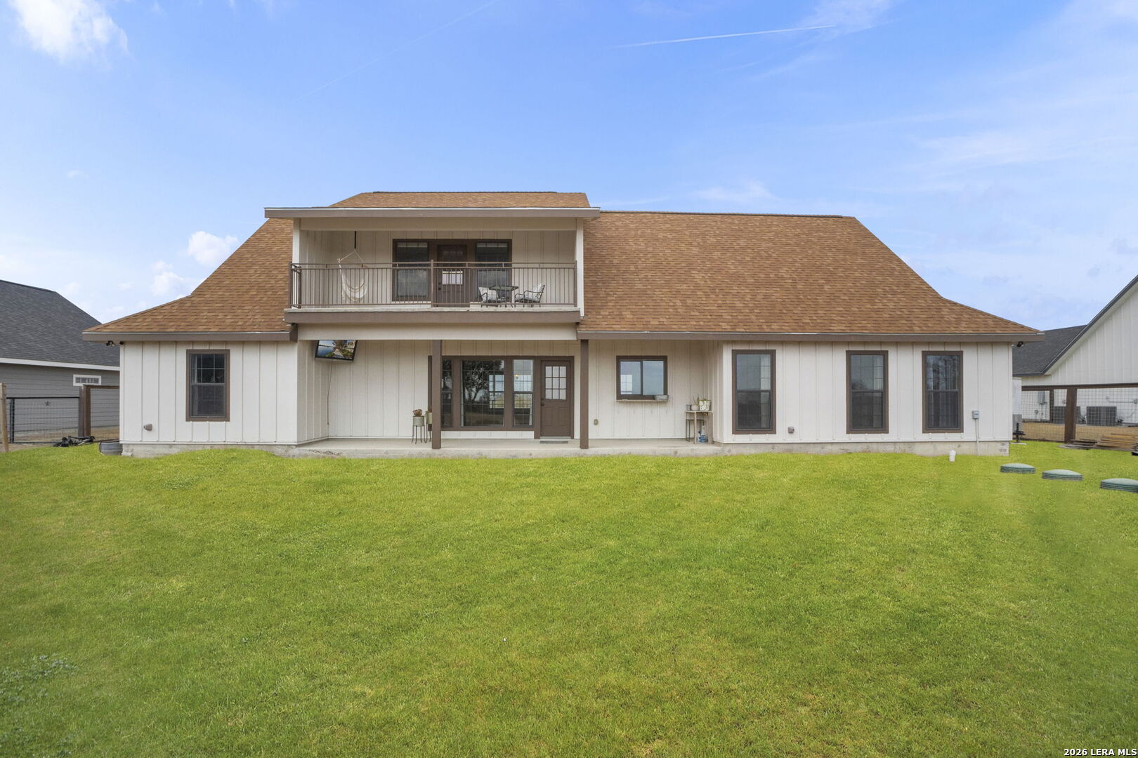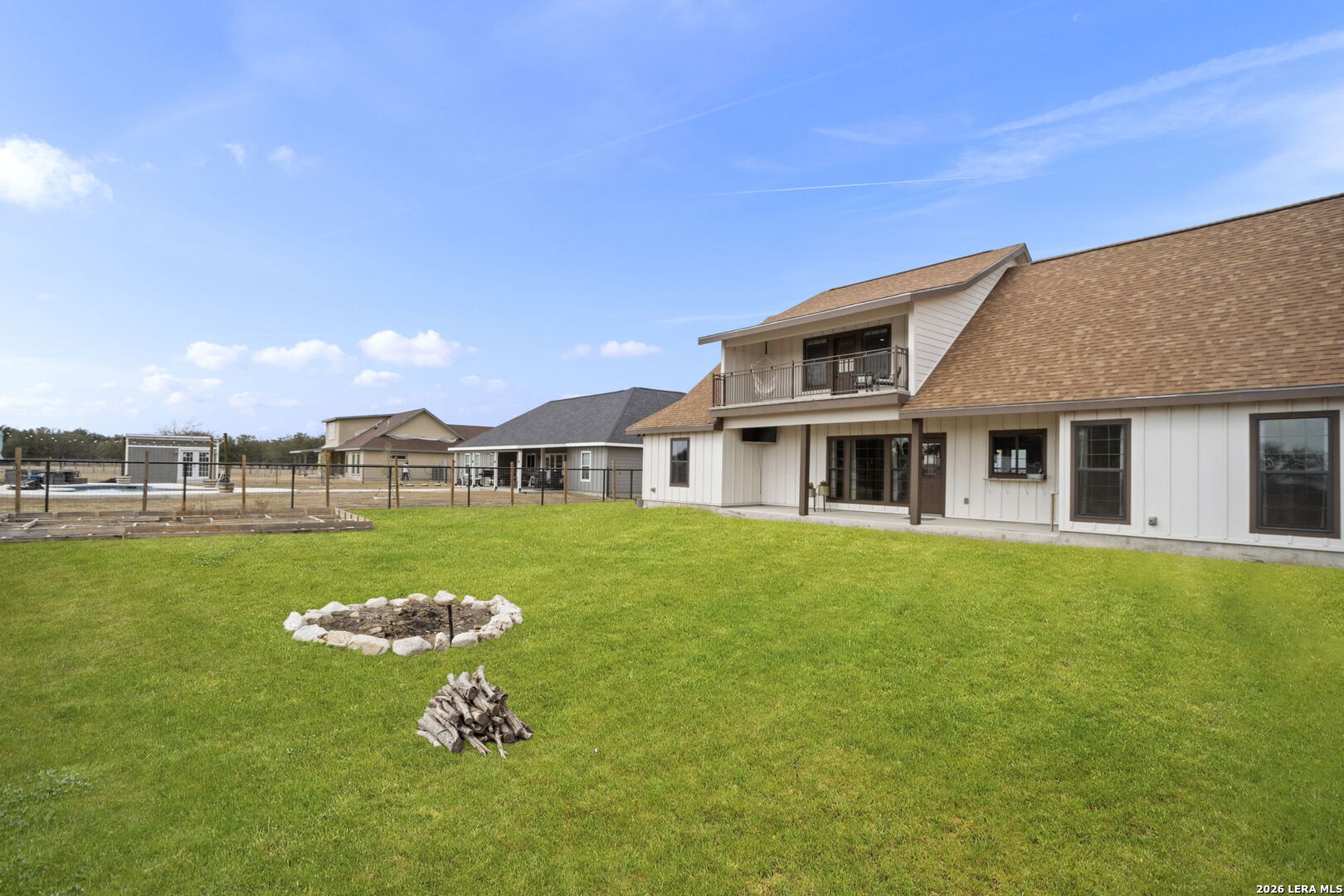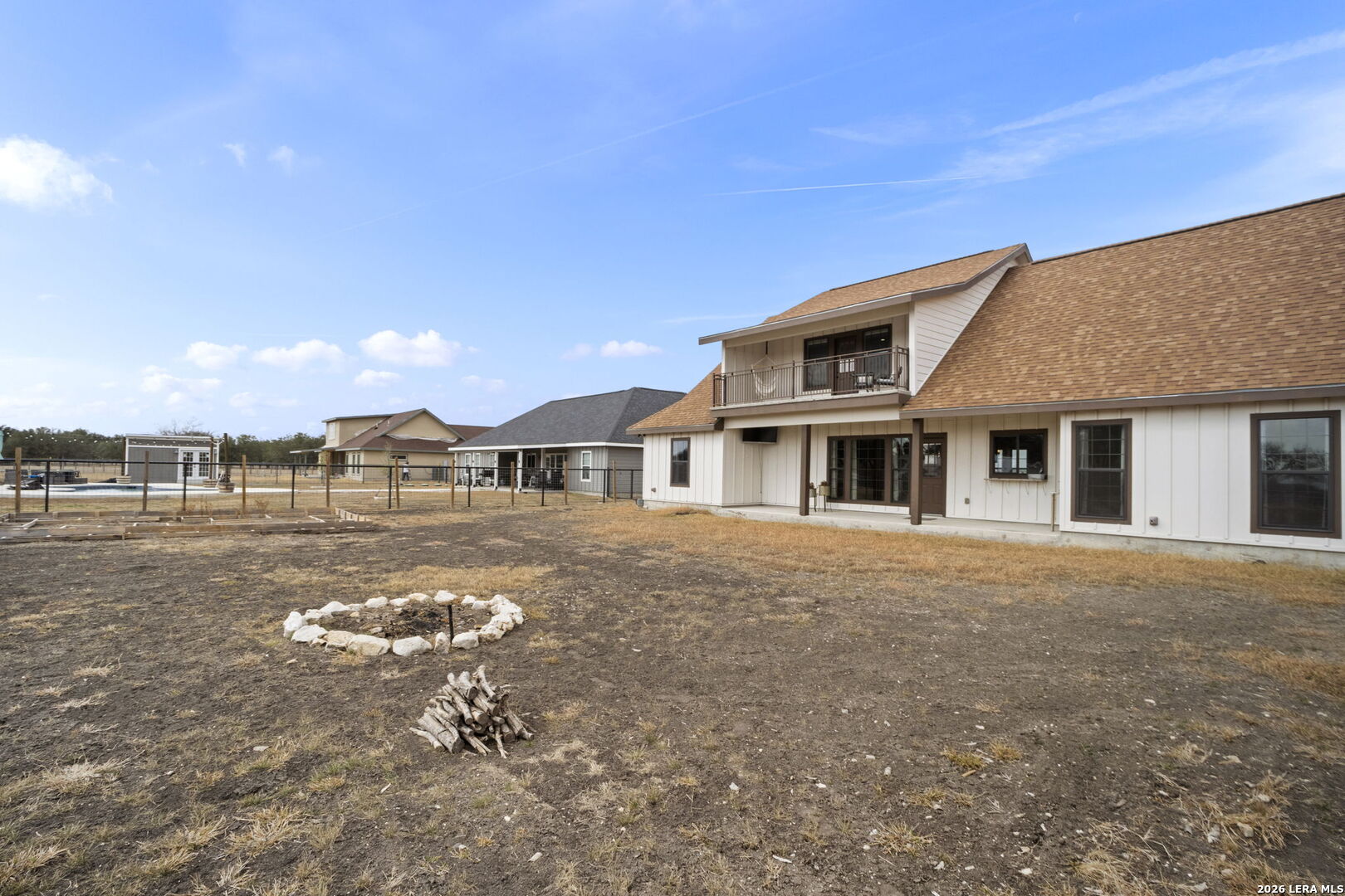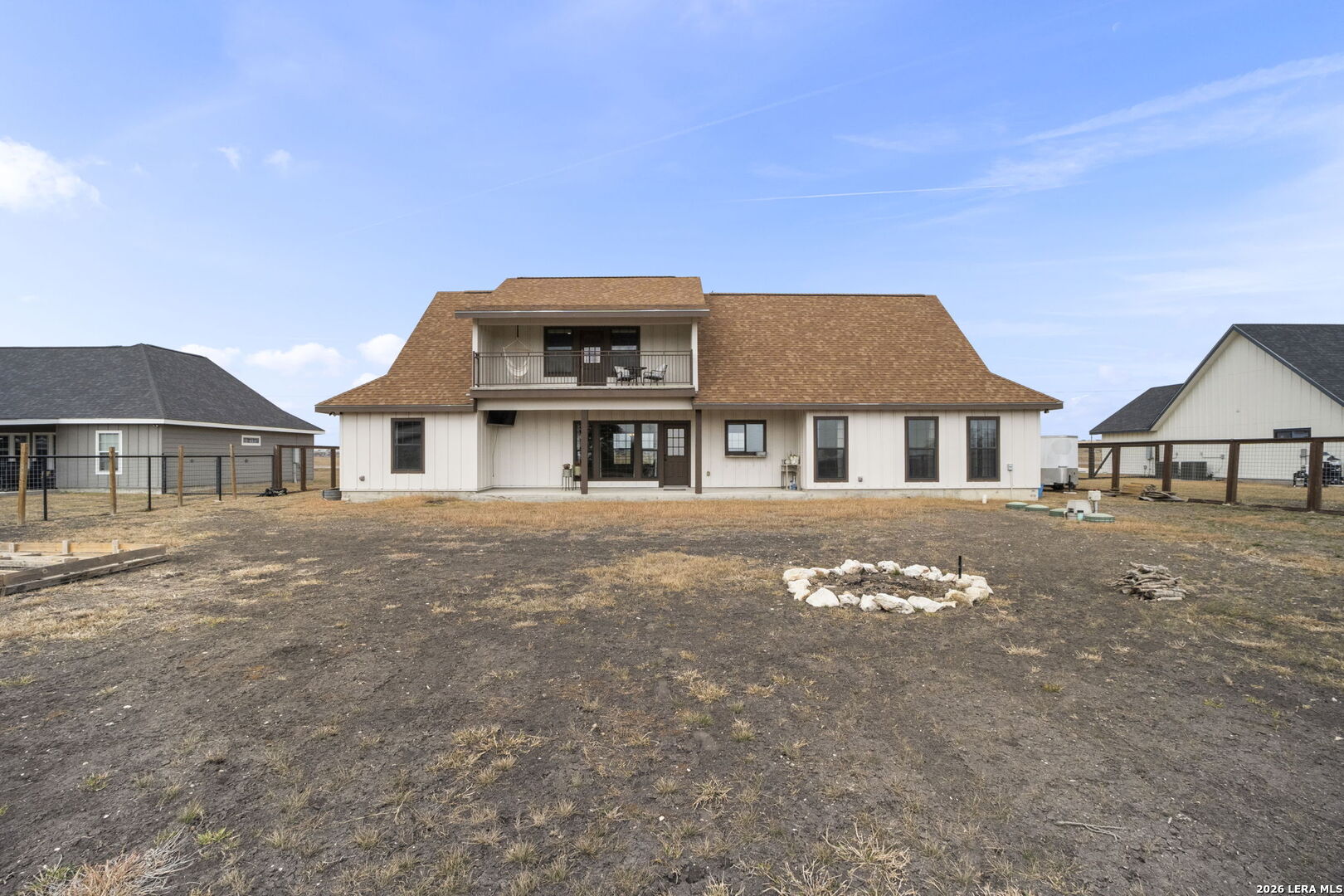 Country living at its finest! Situated on .79 acres backing to a peaceful greenbelt, this charming farmhouse-style home offers wide open spaces and room to breathe. Featuring 4 bedrooms and 2 bathrooms, the open-concept floorplan is perfect for everyday living and entertaining, with luxury vinyl flooring throughout the main level and a spacious living area that flows seamlessly into the kitchen complete with granite countertops and custom cabinetry. The main level offers 3 bedrooms, including a private primary suite with a walk-in shower and generous walk-in closets. Upstairs, the flexible space can serve as an additional bedroom, game room, or playroom and features an open balcony overlooking the beautiful countryside. Step outside to enjoy a fully fenced backyard with a fire pit and raised garden beds ready for planting - ideal for relaxing evenings or weekend gatherings. Conveniently located within the highly sought-after Navarro ISD, this property blends country charm with everyday comfort.
