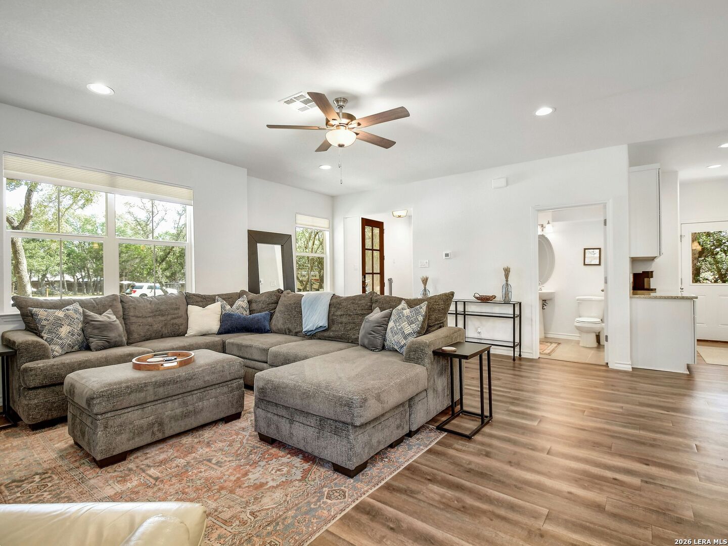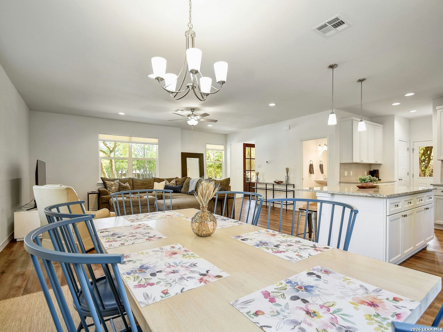 Welcome to your Canyon Lake retreat! Built in 2023 and located in the desirable Canyon Lake Hills community, this 3-bedroom, 2.5-bath home offers 1,812 square feet of thoughtfully designed living space just moments from the water. Step inside to an open-concept floor plan featuring high ceilings, abundant natural light, and a spacious living and dining area that flows seamlessly into the island kitchen. The kitchen is equipped with granite countertops, recessed lighting, ample cabinetry, and a breakfast bar-perfect for entertaining or everyday living. Upstairs, the private bedroom layout provides comfortable separation, with generously sized bedrooms and walk-in closets. Enjoy the Hill Country lifestyle from multiple outdoor living spaces, including a south-facing patio with lake views-ideal for morning coffee or relaxing evenings. The property also offers convenient boat parking and is located approximately 500 feet from Boat Ramp #6, making lake days quick and easy. Whether you're looking for a full-time residence, weekend getaway, or investment opportunity, this home offers modern construction, lake proximity, and easy access to all the recreation Canyon Lake is known for.