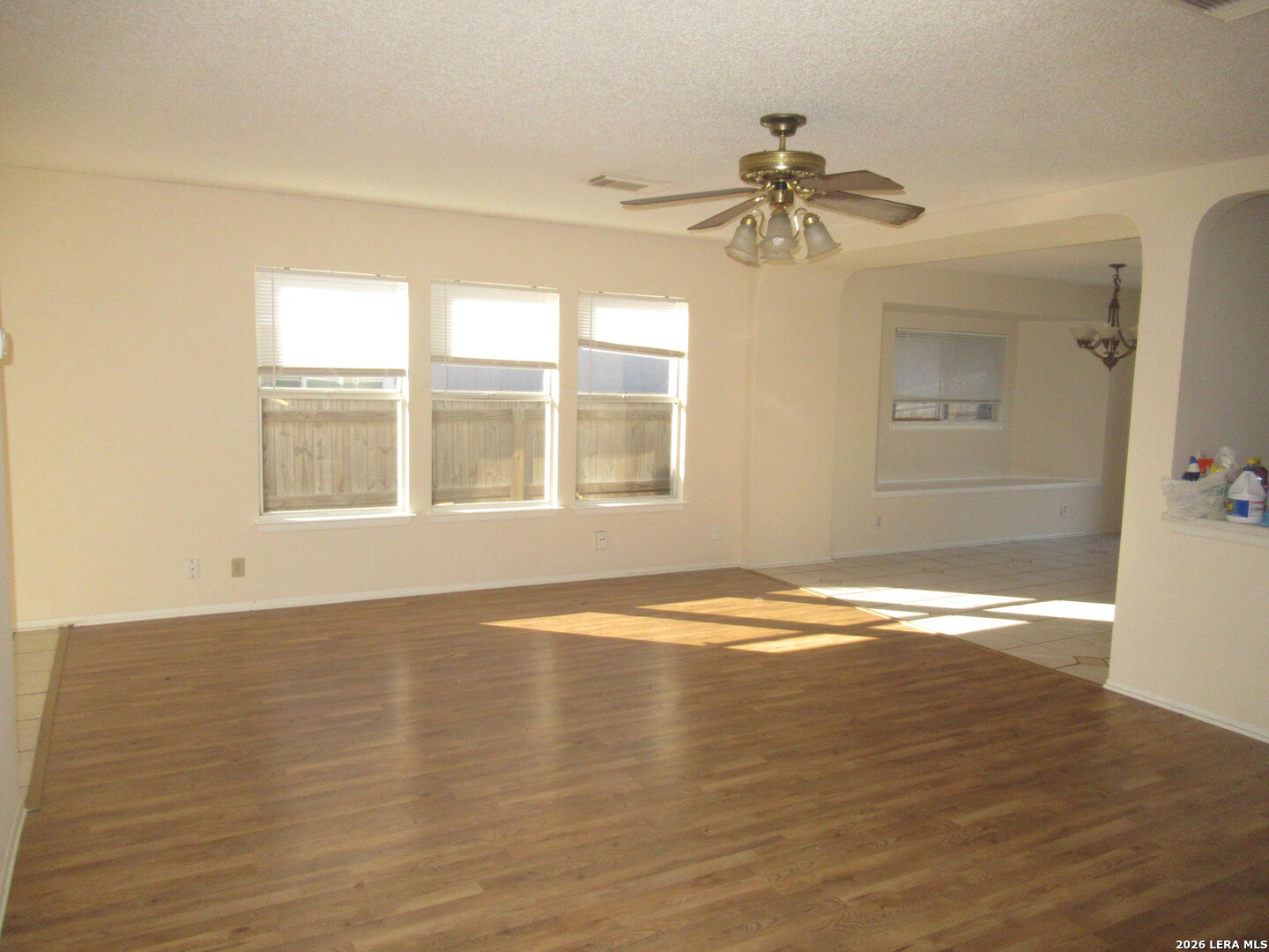 NICE RENTAL! OPEN FLOOR PLAN. LARGE SINGLE LIVING AREA. LIGHT AND BRIGHT ISLAND KITCHEN WITH BREAKFAST ROOM. LOTS OF CABINETS AND COUNTER SPACE. LARGE WALK-IN PANTRY/UTILITY ROOM. NEWER APPLIANCES. CERAMIC TILE FLOOR IN KITCHEN AND BATH ROOMS. RECENT LAMINATE WOOD LOOK FLOORING IN LIVING AREA AND BEDROOMS. GOOD SIZE MAIN BEDROOM. FENCED BACK YARD WITH 12X8 PATIO.