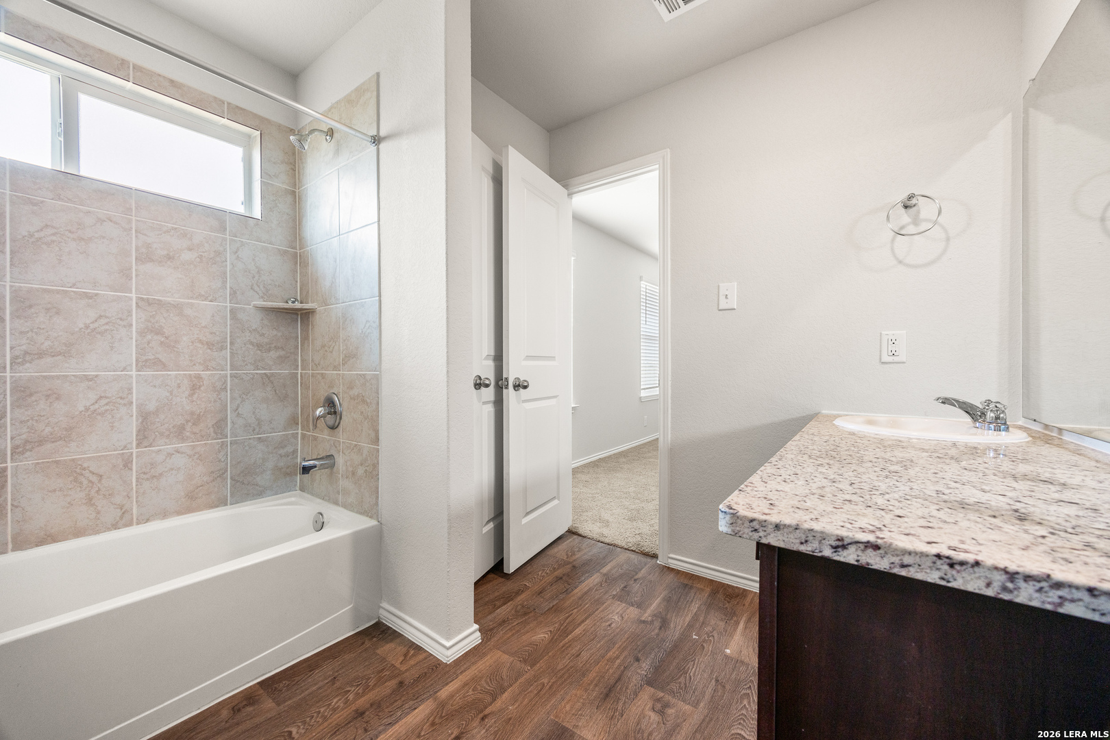 Spacious 4 Bed / 2.5 Bath Home - 2,243 Sq Ft + Resort-Style Amenities Welcome to 6623 Whisper Pond in San Antonio-a spacious two-story home offering 2,243 sq. ft., 4 bedrooms, and 2.5 bathrooms with a functional and inviting layout. The charming front porch leads into a welcoming foyer that opens to a large open-concept kitchen, dining, and living area. The kitchen features a spacious island with ample counter space, perfect for cooking, entertaining, and everyday living. The dining area sits just off the kitchen and flows seamlessly into the expansive living room, which leads directly to the backyard and covered patio-ideal for relaxing or hosting guests. Upstairs, you'll find all bedrooms, each generously sized to provide comfort and flexibility for families, guests, or a home office. The home also includes a convenient utility room that connects to the garage, along with additional storage space located under the stairs. Located in a desirable community, residents enjoy access to resort-style amenities including a pool, playground, basketball and sports courts, and a fitness center-offering something for everyone. Conveniently situated with easy access to major highways, shopping, dining, and everyday essentials, this home provides the perfect balance of space, comfort, and location.