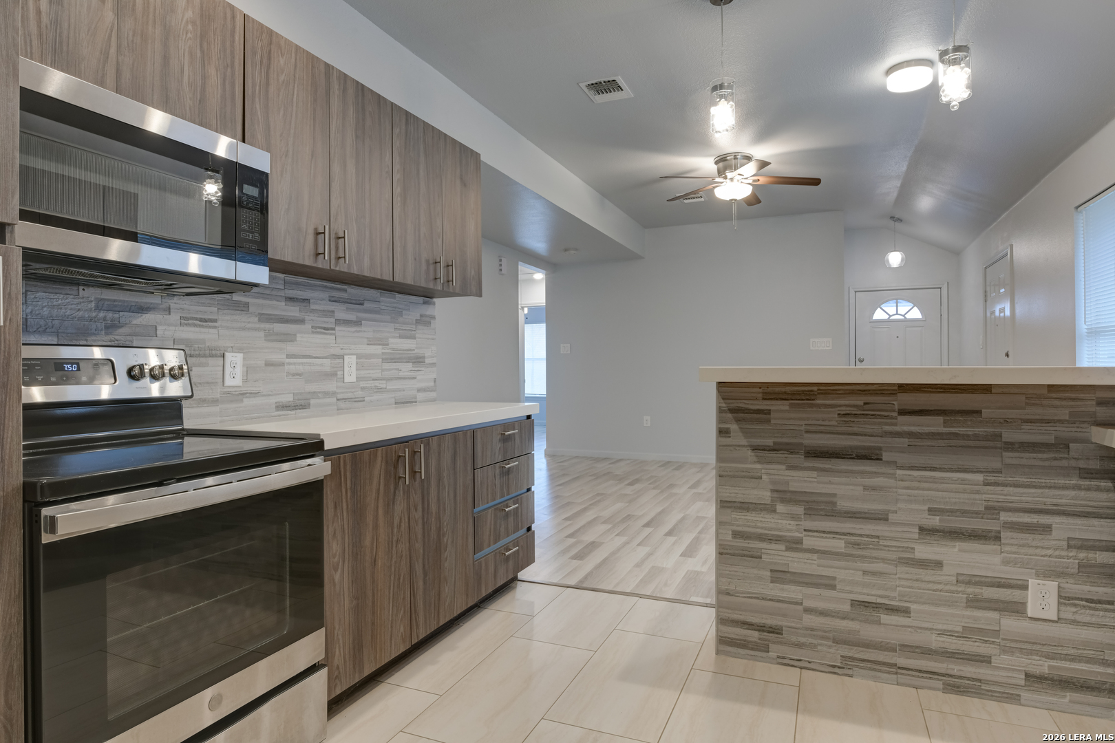 VA ASSUMABLE 2.75 rate! This stunningly modern home is move-in ready! This 3BR/2BA single-story gem in San Antonio features a modern, open-concept design with NO CARPET! Vinyl flooring flows throughout the home, accented in the kitchen and bathrooms with ceramic tile. The chef-inspired kitchen is a true standout, boasting crisp quartz countertops, a custom tile backsplash, and stainless steel appliances. Enjoy the convenience of a dedicated indoor laundry room and a private primary suite. Outside, the unique multi-level backyard with room to create your ideal outdoor retreat backyard, complemented by a clean 1-car garage and inviting stone-accented curb appeal. Perfectly located with easy access to major highways, shopping, dining, Brooks City Base, Joint Base Ft. Sam, Pecan Valley Golf Club, and Republic Golf Club. Schedule your showing today!