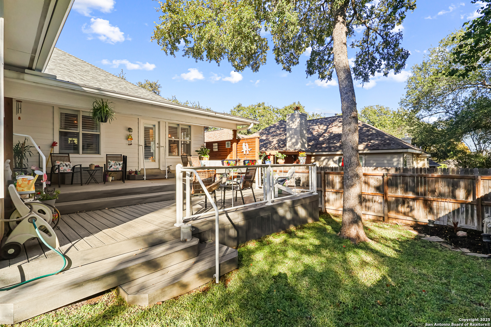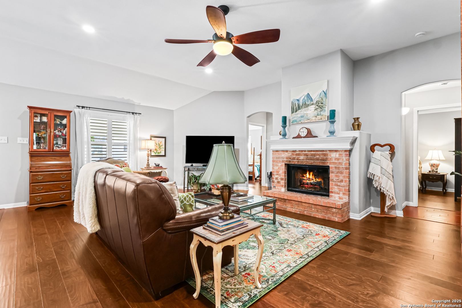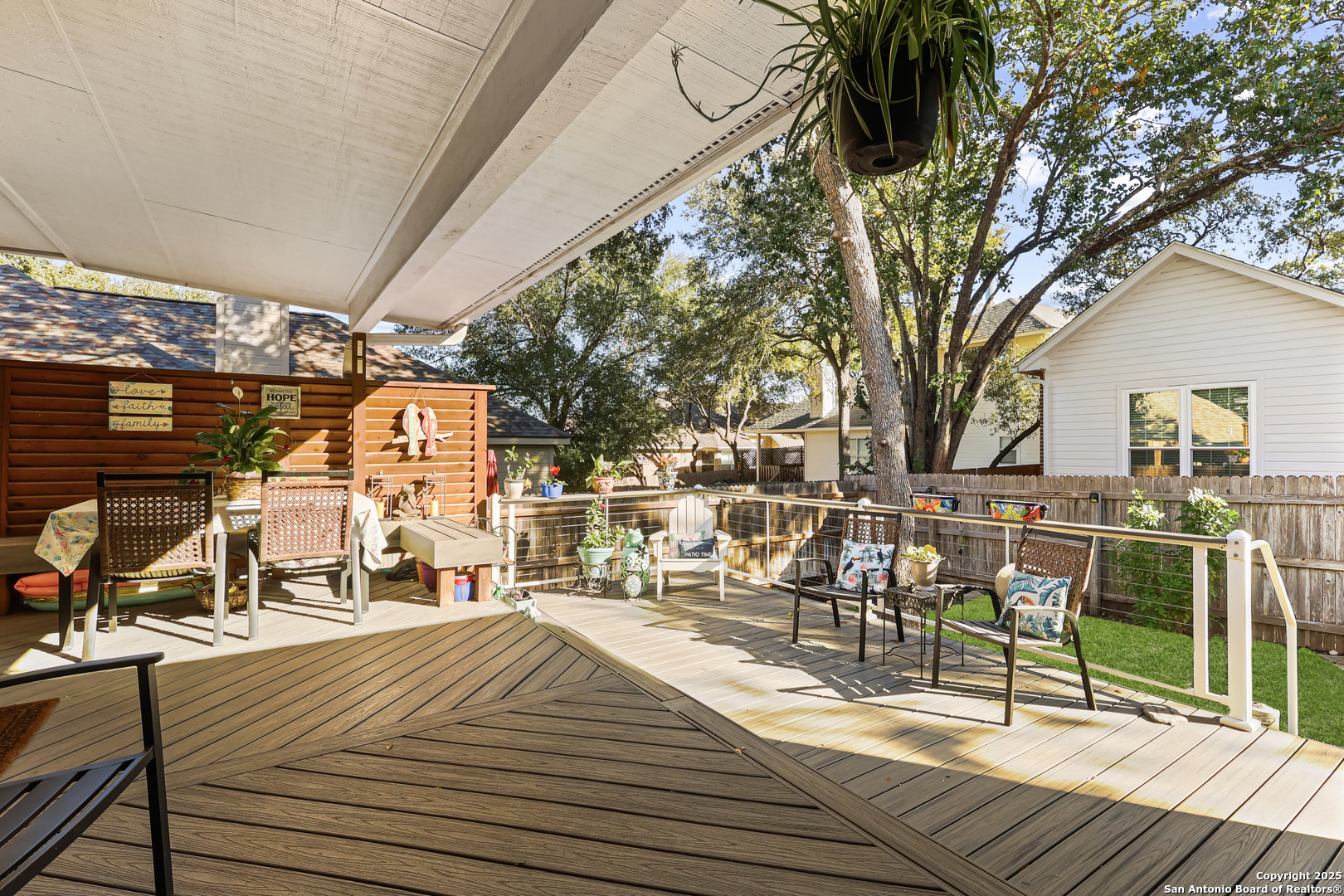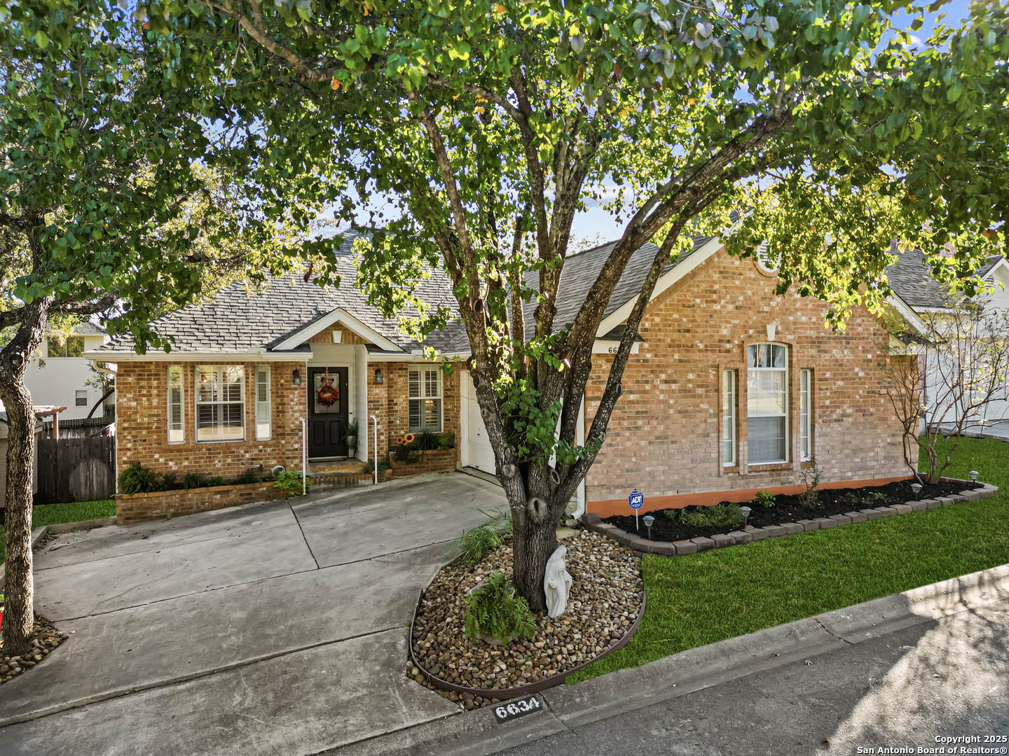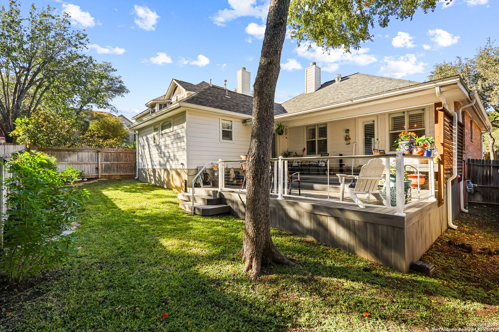 This home exudes charm with well-chosen finishes, a warm fireplace, and a great floorplan that flows effortlessly. The owner's suite is set apart for added privacy, and the home's step-free design and no-carpet flooring make daily life simple and comfortable. Plantation shutters throughout, upgraded finishes and beautiful color tones add elegance while the large covered Trex deck patio offers a wonderful spot to relax & entertain. Low-maintenance features throughout mean more time to enjoy the things that matter. Conveniently located near IH-10, Loop 1604, La Cantera & The Rim, this home is ready for you to settle right in!