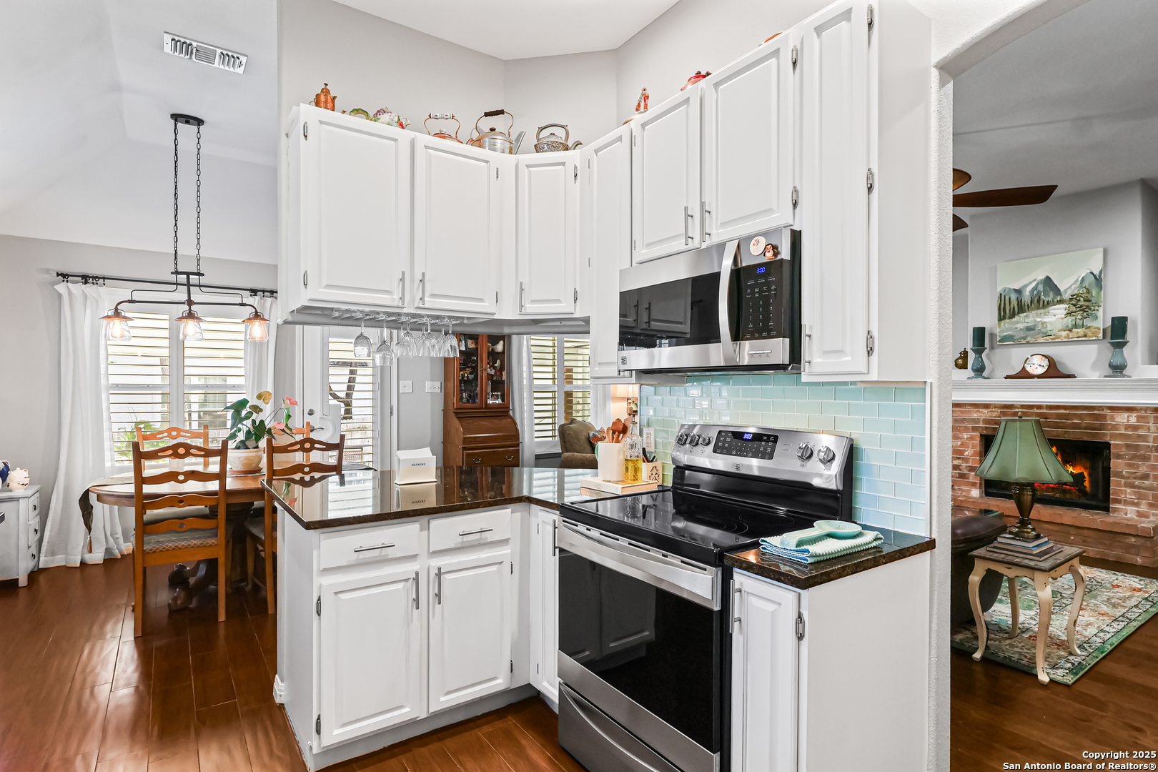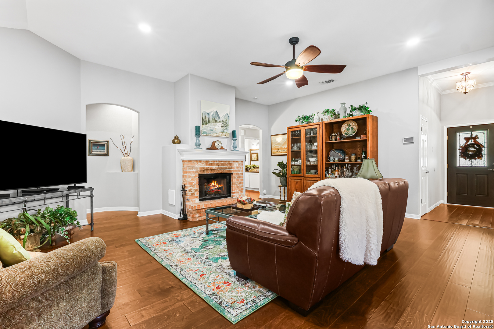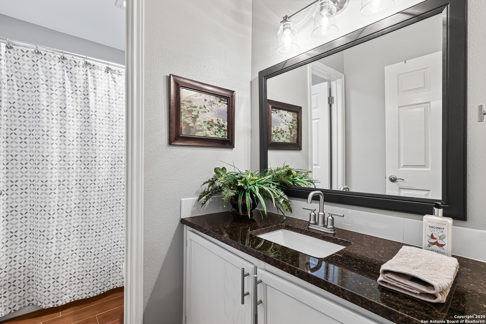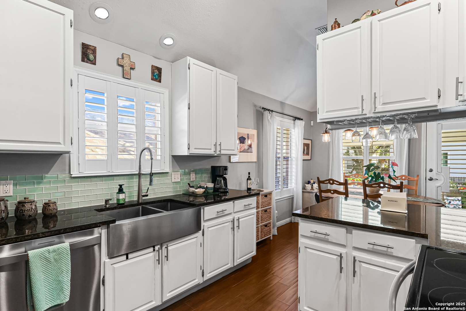 This home exudes charm with well-chosen finishes, a warm fireplace, and a great floorplan that flows effortlessly. The owner's suite is set apart for added privacy, and the home's step-free design and no-carpet flooring make daily life simple and comfortable. Plantation shutters throughout, upgraded finishes and beautiful color tones add elegance while the large covered Trex deck patio offers a wonderful spot to relax & entertain. Low-maintenance features throughout mean more time to enjoy the things that matter. Conveniently located near IH-10, Loop 1604, La Cantera & The Rim, this home is ready for you to settle right in!