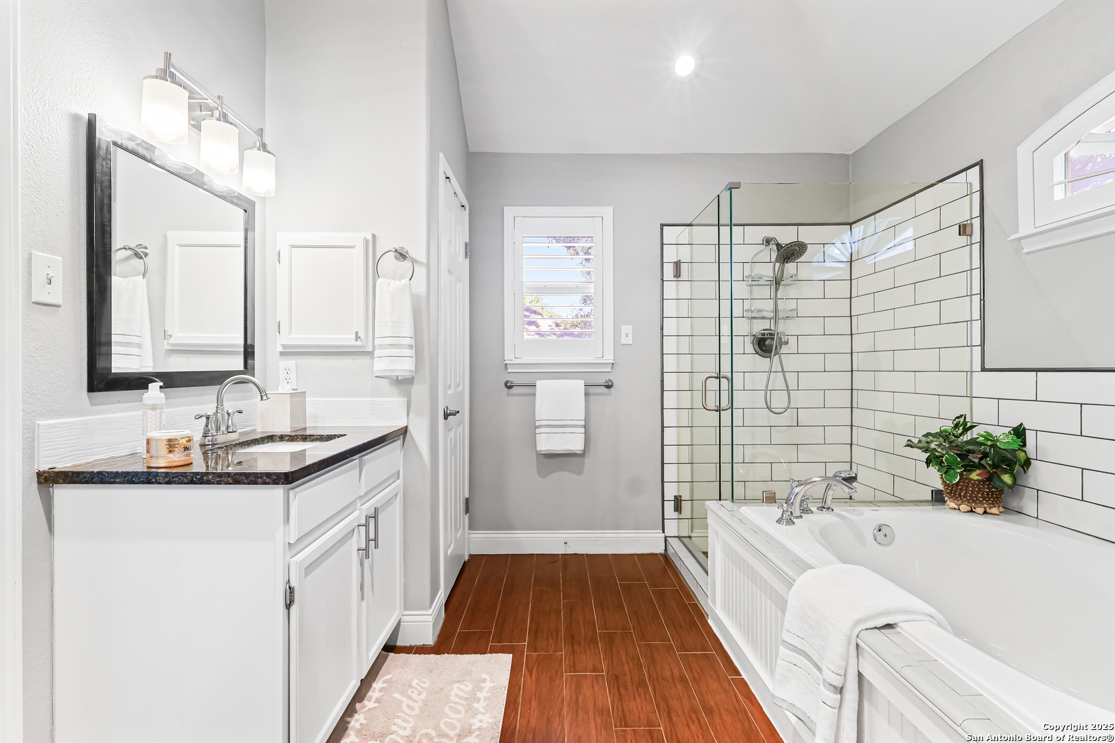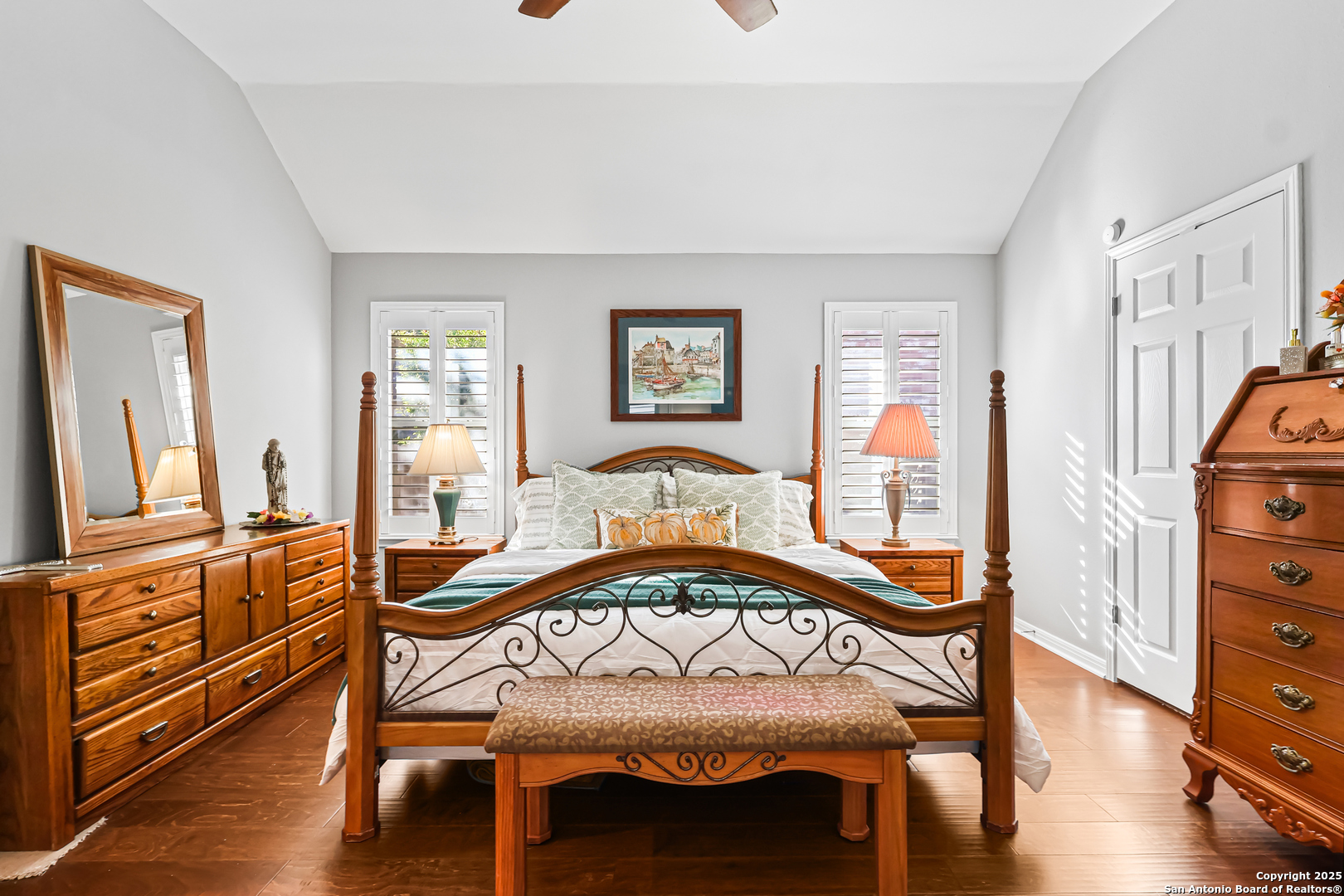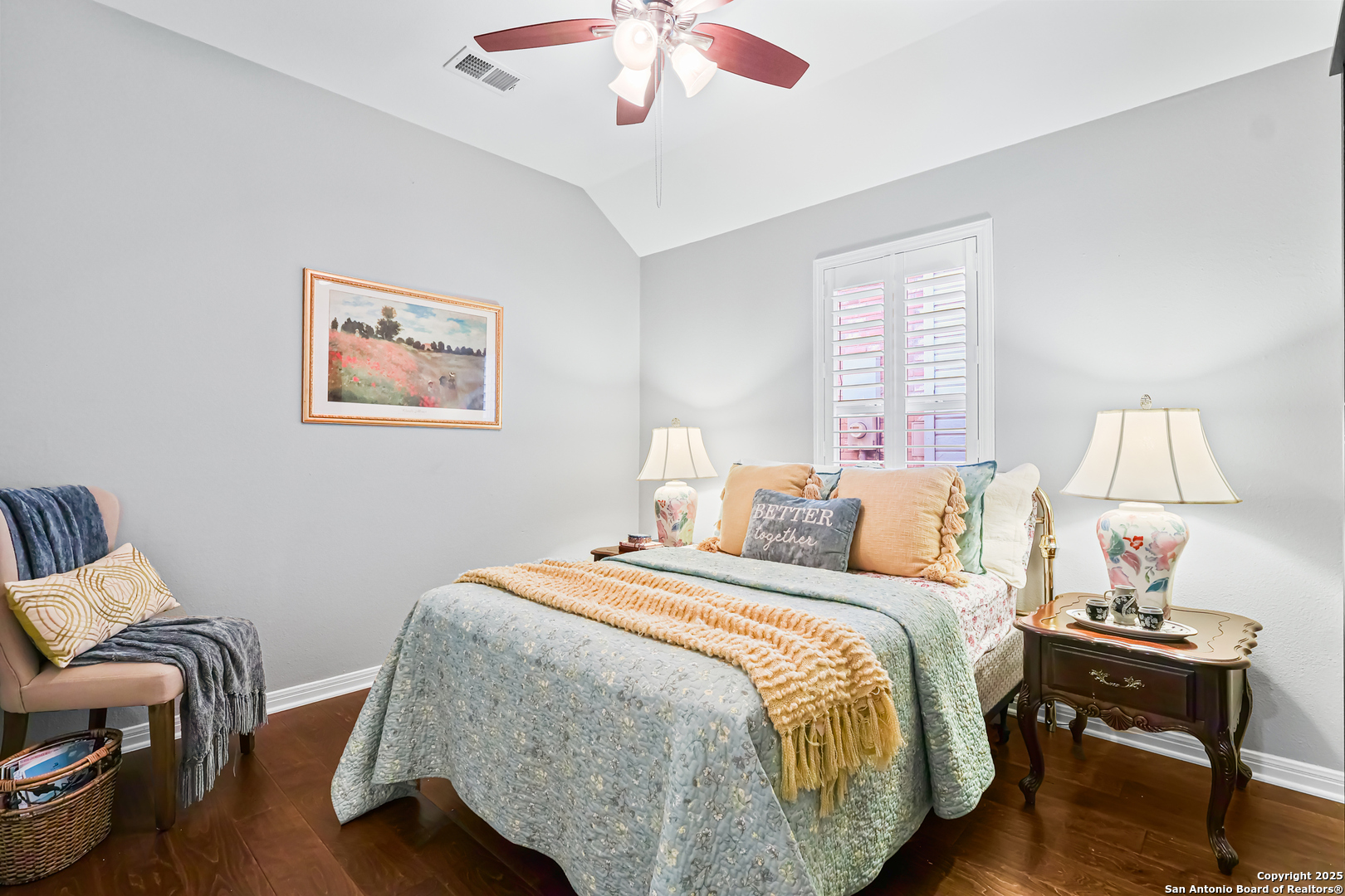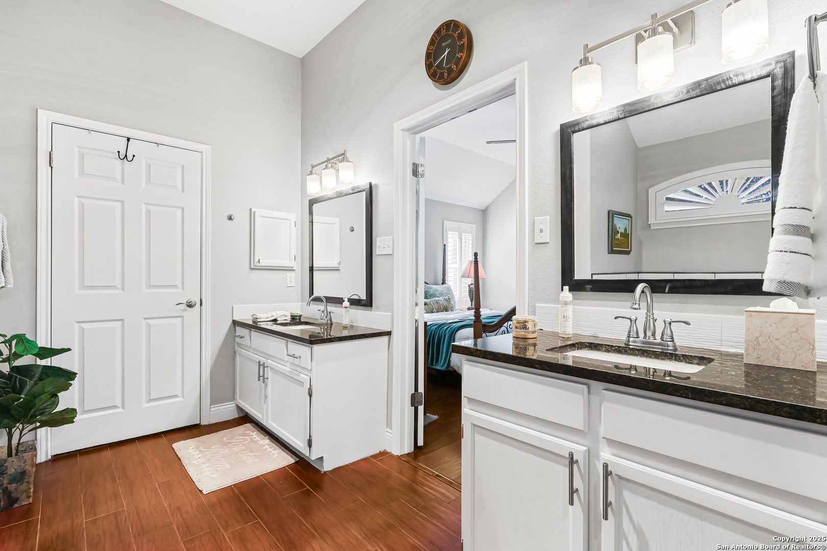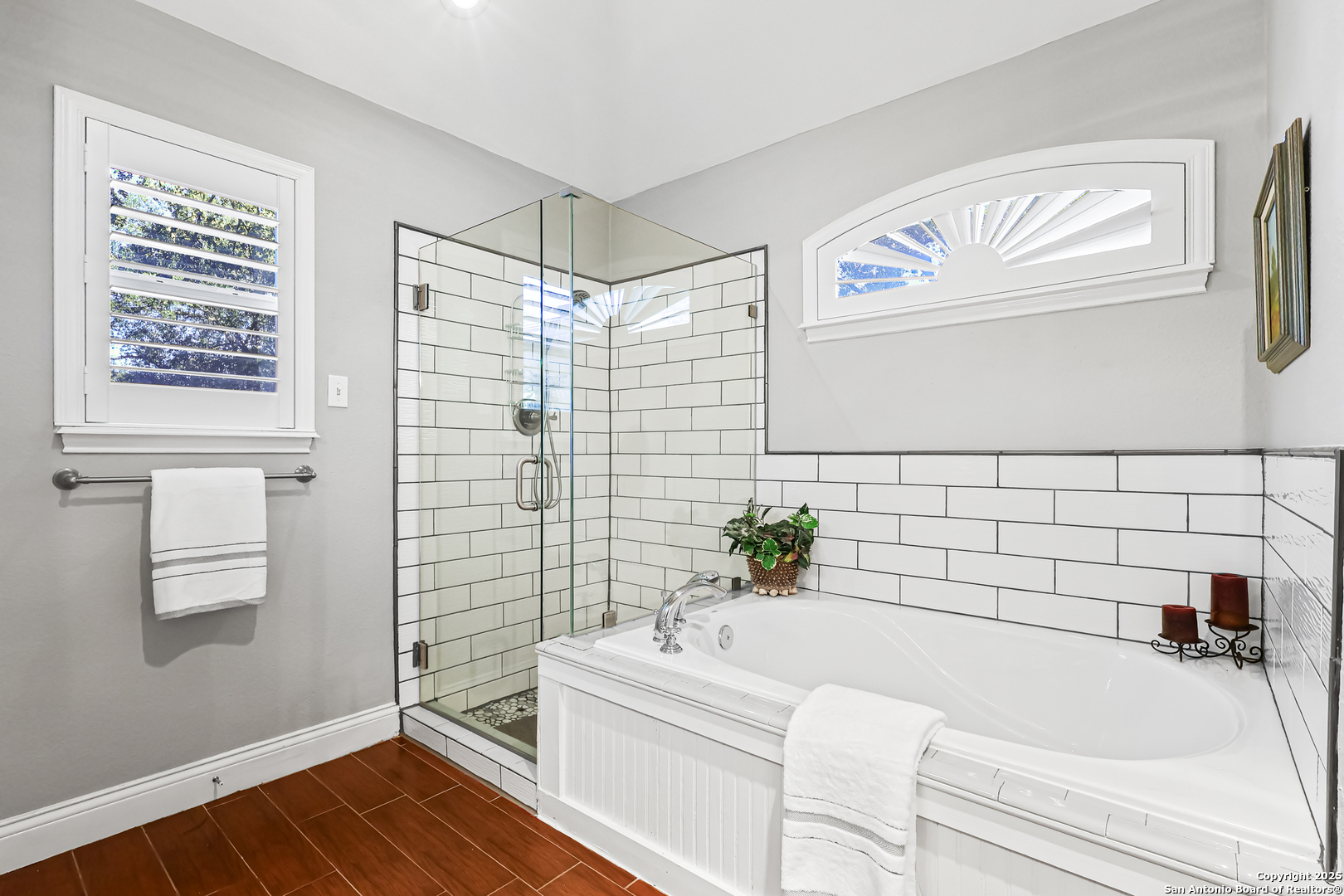 This home exudes charm with well-chosen finishes, a warm fireplace, and a great floorplan that flows effortlessly. The owner's suite is set apart for added privacy, and the home's step-free design and no-carpet flooring make daily life simple and comfortable. Plantation shutters throughout, upgraded finishes and beautiful color tones add elegance while the large covered Trex deck patio offers a wonderful spot to relax & entertain. Low-maintenance features throughout mean more time to enjoy the things that matter. Conveniently located near IH-10, Loop 1604, La Cantera & The Rim, this home is ready for you to settle right in!