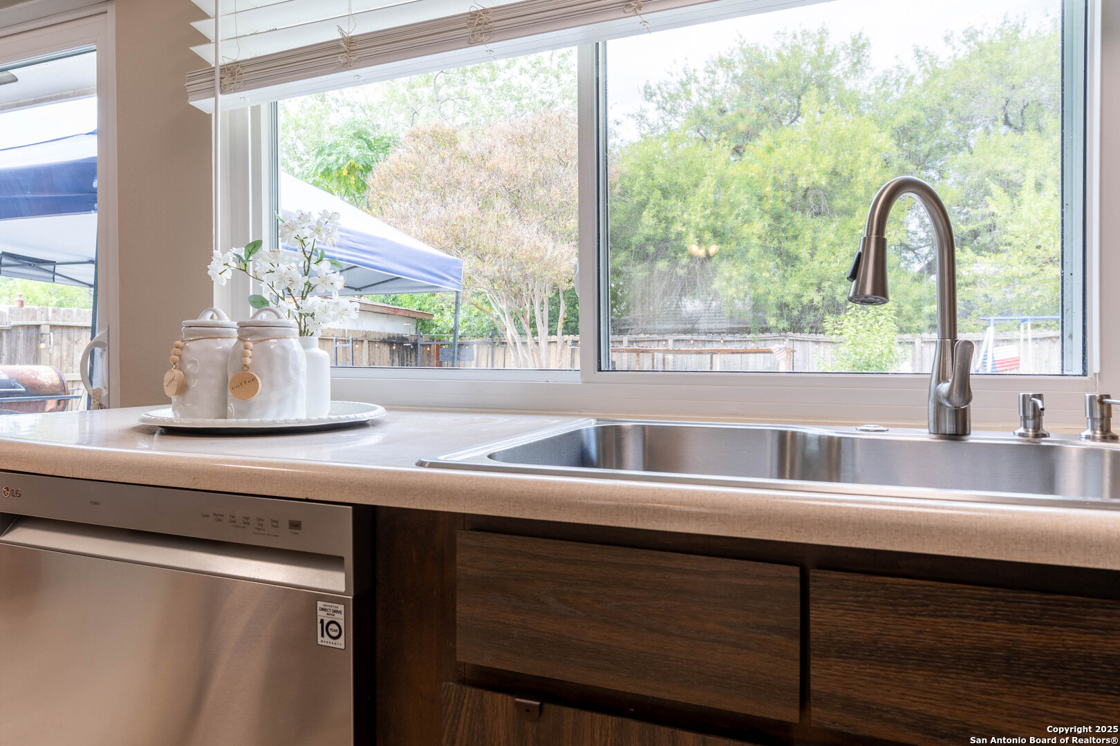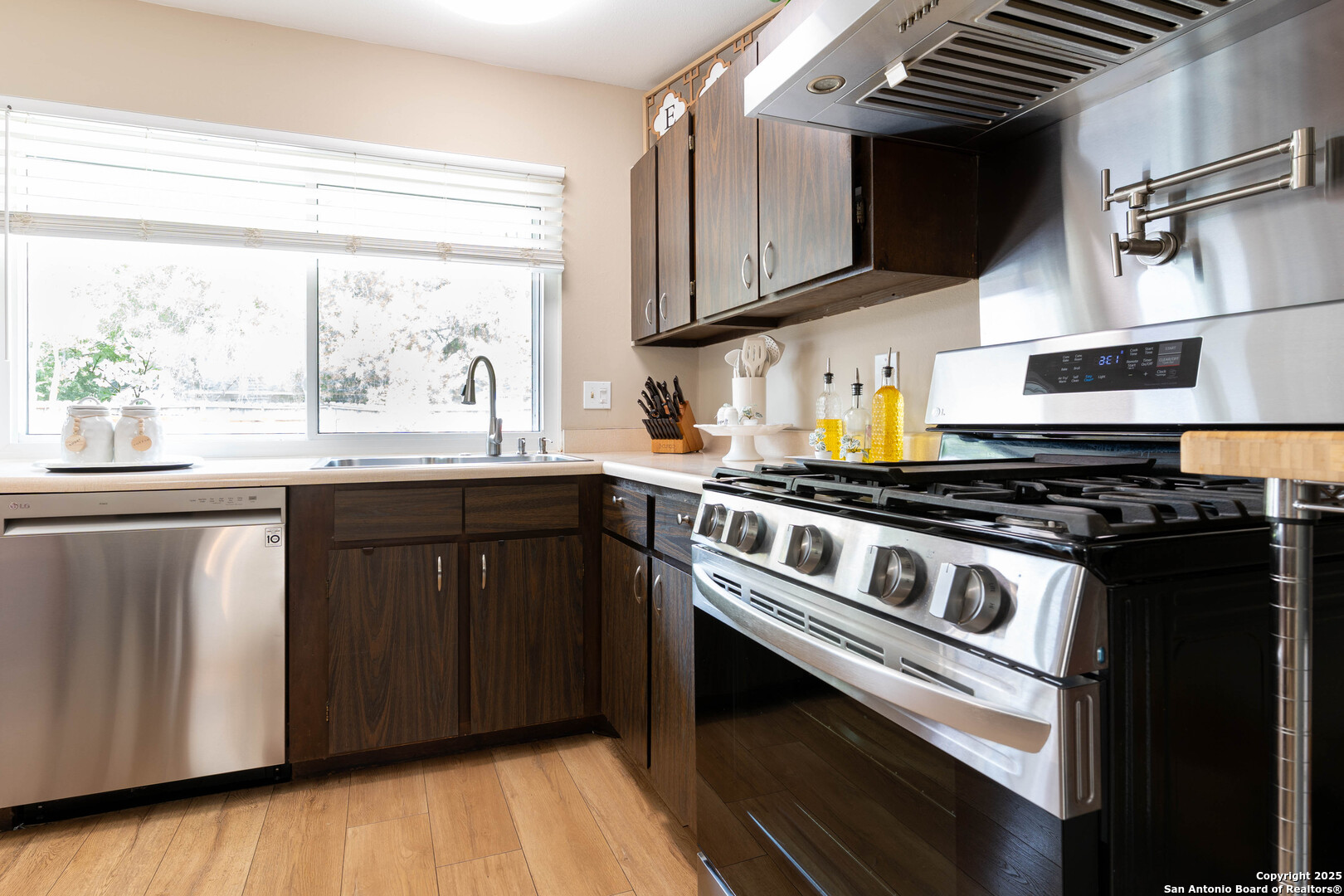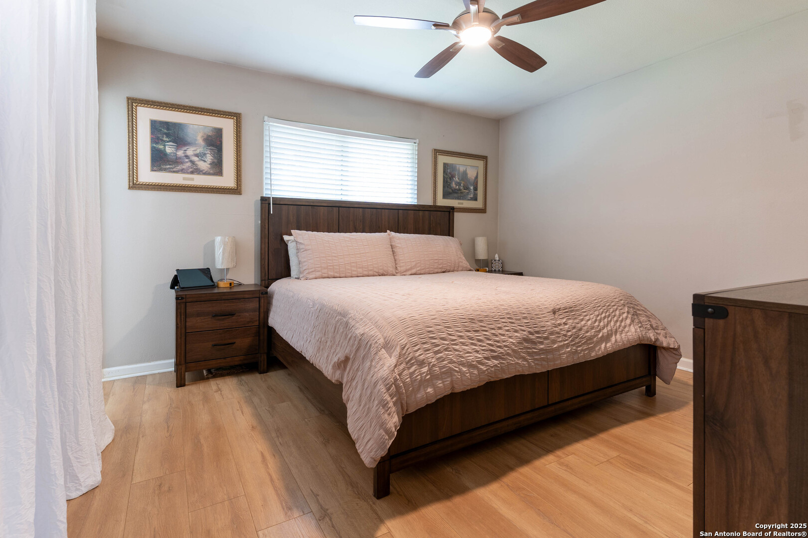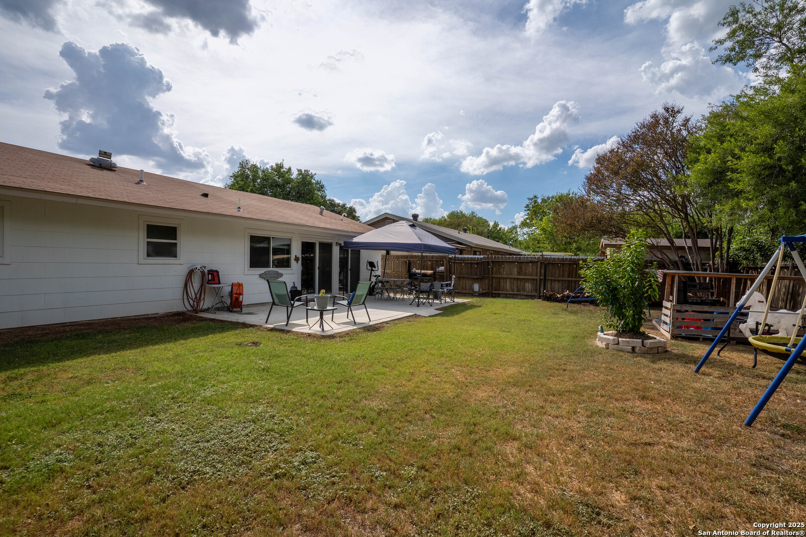 STUNNING SINGLE STORY!! Beautifully maintained single-story ranch offering comfort, efficiency, and style! This move-in ready home features all new vinyl windows (2021) and a 14 SEER HVAC (2022) for peace of mind and energy savings. The open floor plan showcases laminate flooring throughout (no carpet), LED lighting, and ceiling fans in every room. The kitchen impresses with gas cooking, pot filler, abundant cabinetry, and a stainless-steel appliance package including refrigerator. Enjoy a spacious family room with flat-screen TV, oversized utility room with washer and dryer, and amply sized secondary bedrooms-one with a walk-in shower. Outside, entertain on the expanded patio, benefit from an extended driveway, and relax behind a privacy fence with oversized gates and storage shed. Additional highlights include dusk-to-dawn exterior lighting, covered entry, and a programmable thermostat. This home perfectly blends thoughtful updates and easy living! See this one TODAY!!