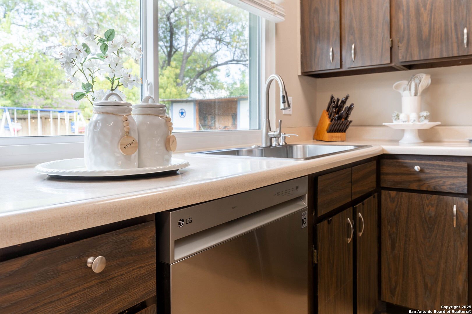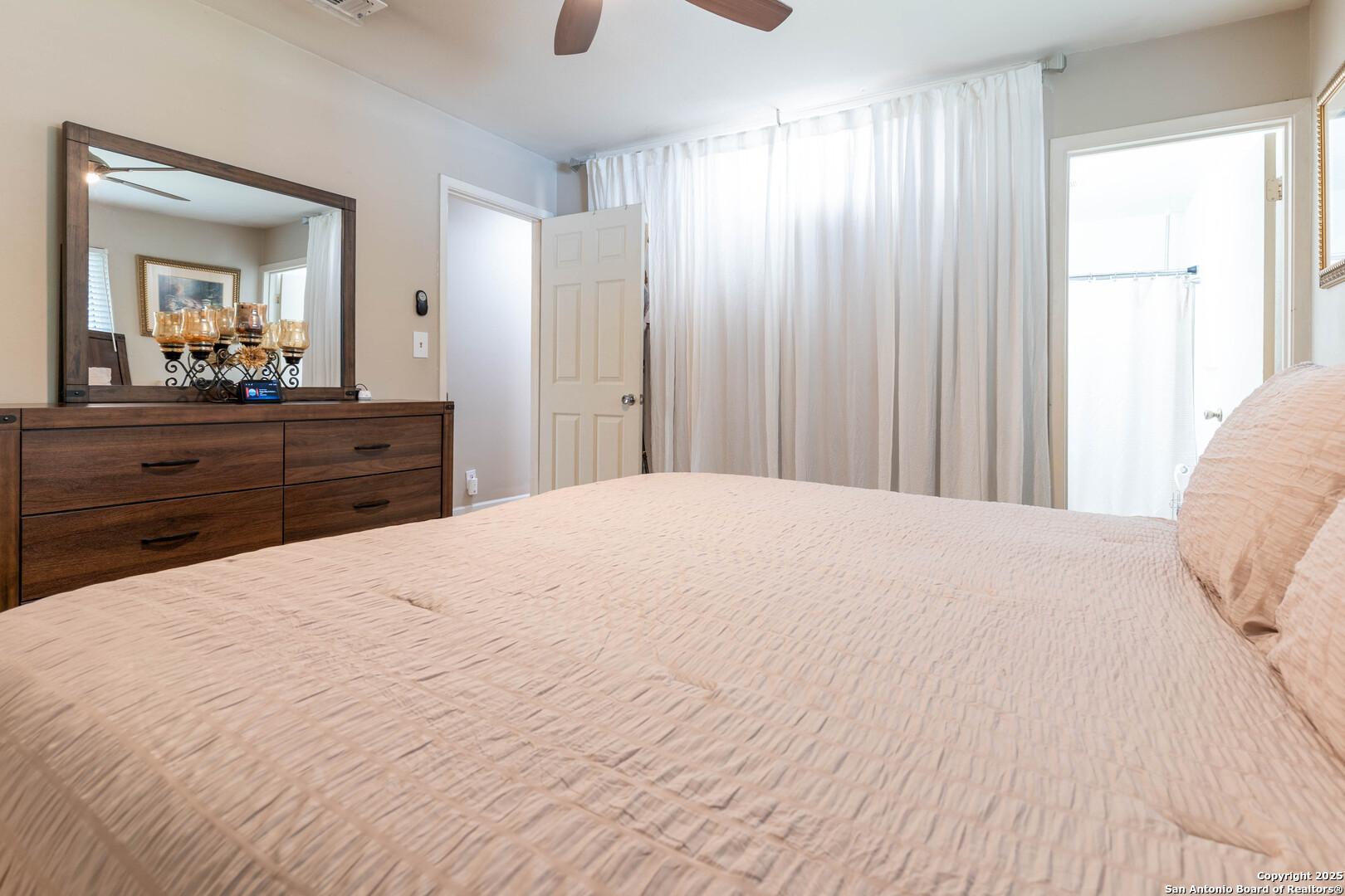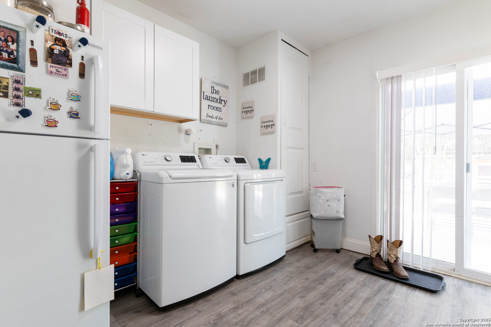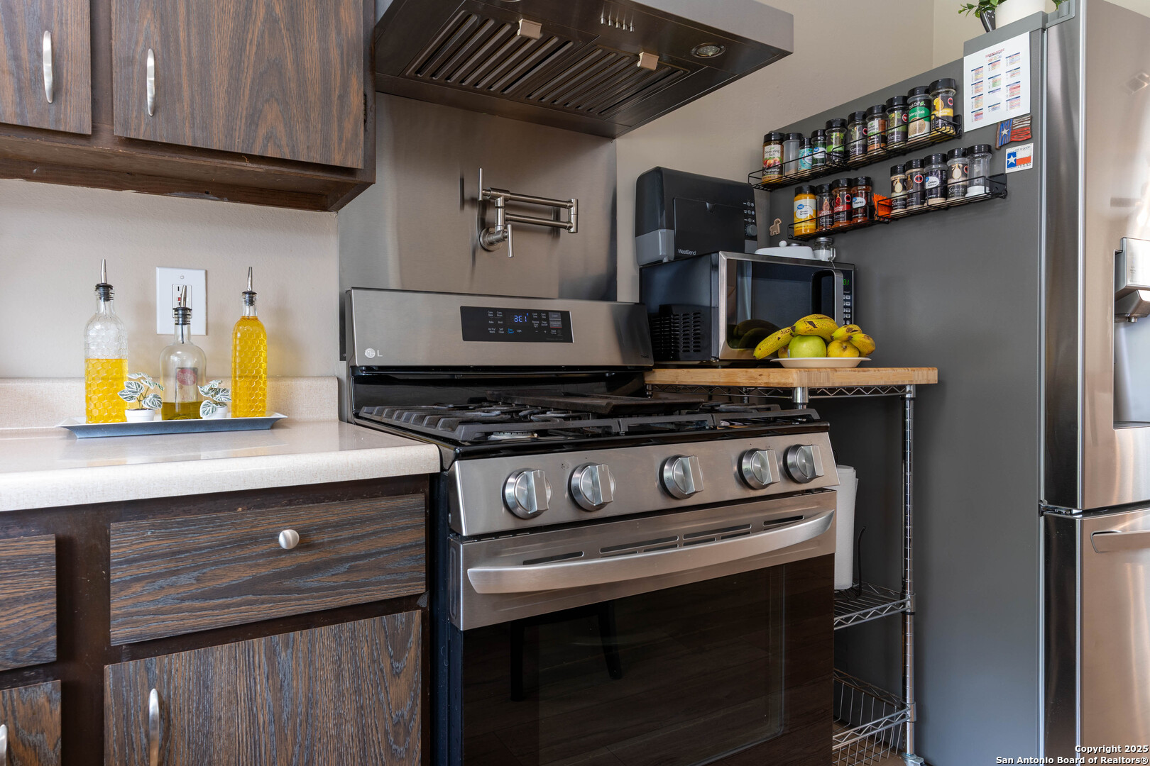 STUNNING SINGLE STORY!! Beautifully maintained single-story ranch offering comfort, efficiency, and style! This move-in ready home features all new vinyl windows (2021) and a 14 SEER HVAC (2022) for peace of mind and energy savings. The open floor plan showcases laminate flooring throughout (no carpet), LED lighting, and ceiling fans in every room. The kitchen impresses with gas cooking, pot filler, abundant cabinetry, and a stainless-steel appliance package including refrigerator. Enjoy a spacious family room with flat-screen TV, oversized utility room with washer and dryer, and amply sized secondary bedrooms-one with a walk-in shower. Outside, entertain on the expanded patio, benefit from an extended driveway, and relax behind a privacy fence with oversized gates and storage shed. Additional highlights include dusk-to-dawn exterior lighting, covered entry, and a programmable thermostat. This home perfectly blends thoughtful updates and easy living! See this one TODAY!!