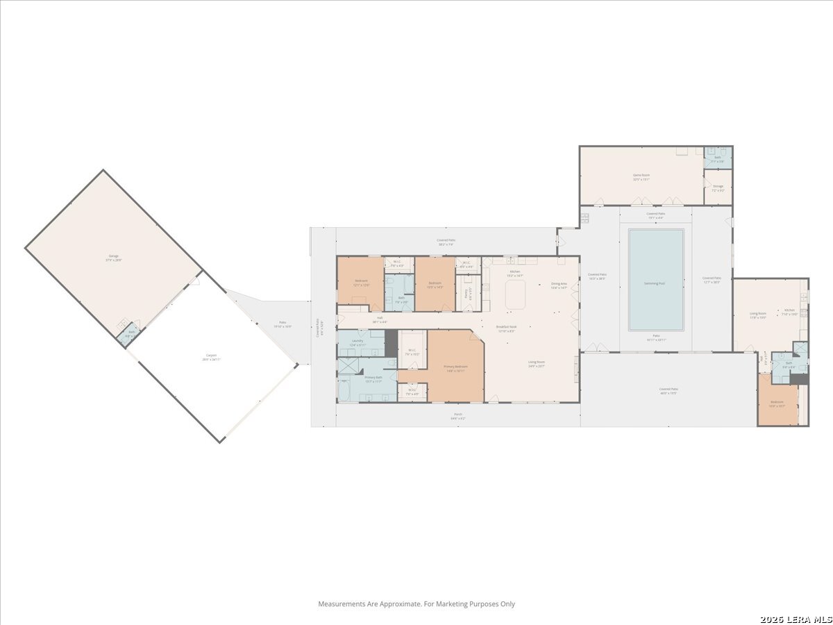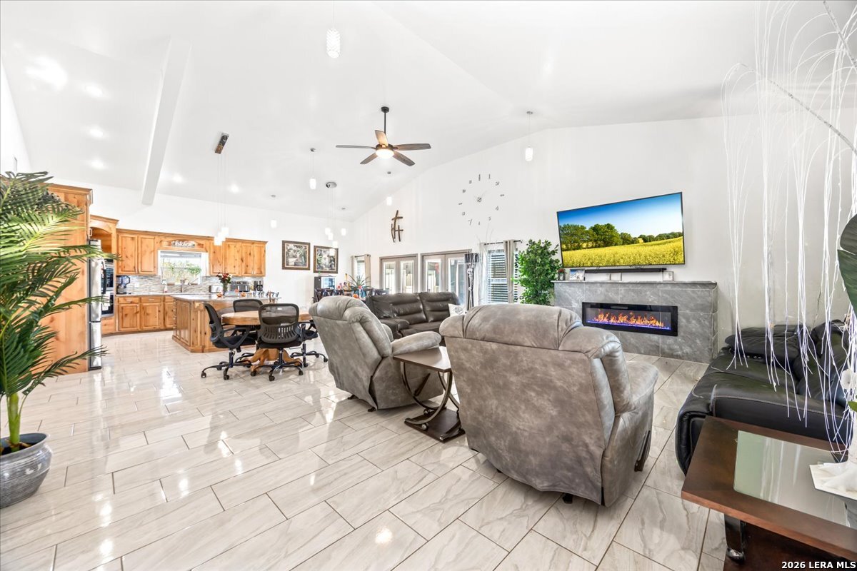 **Very Interesting Set-Up**...Mini Ranch w/Lots of Extras' on 11.47 Fenced & Cross Fenced Acres (Approx 830' wide x 600' deep) w/Paved Road Frontage on 2-Sides..Approx 4100sf of Total Livable Heated & Cooled Space "Amongst" A 2600sf Custom Blt Barndo w/Approx 2000' of Wrap Around Metal Porchs ..(Very Open Floorplan,3-Bd,2-Ba,Gourmet Style Island Kit w/Upgraded Appliances/Cabinets,Raised Deco Ceilings & Central Vac Unit) *PLUS* Approx 720 Attached 2nd Barndo/In-law Suite w/1-Bd,1-Ba,Kit & Living area *PLUS..Approx 800sf Gm Room w/Rustic finish out,1/2 BA,Ice Maker,Pool table & Other Gaming items.... **Note All 3 Have Energy Efficient Spray Foam Insulation*** Approx 38x20 Metal Carport/Covered Area,1700sf Interior Courtyard w/Ingrd Pool & BBQ Area that Overlooks all the 3 Living/Gm Area ...Approx 40x30 Spray Foam Insulated & Air-Conditioned Metal Bldg Workshop with 1/2 BA....12x10 Rollup Door & 40x30 Covered Parking Area....12x12 Chicken Coop w/20x12 Caged Area...Approx 300' Deep Water Well w/Variable Speed Pump AND a Rural Water Meter from SS Water Co,Fiber Internet from from GVEC & Sprinkler Sys that Irrigates approx 1.5 Acres..20x20 Covered Area w/Working Animal Pens & Concrete Water Troughs..20' Decorative Entry Gate w/Auto Opener & Asphalt paved circle dr...RV Parking area w/Hook-ups...Call 4 Detailed Packet of Info/Appraisal...Country living w/No City Taxes,Low 1.5% Tax Rate & Low Ag-Exempt Tax Rate..A Must-See....