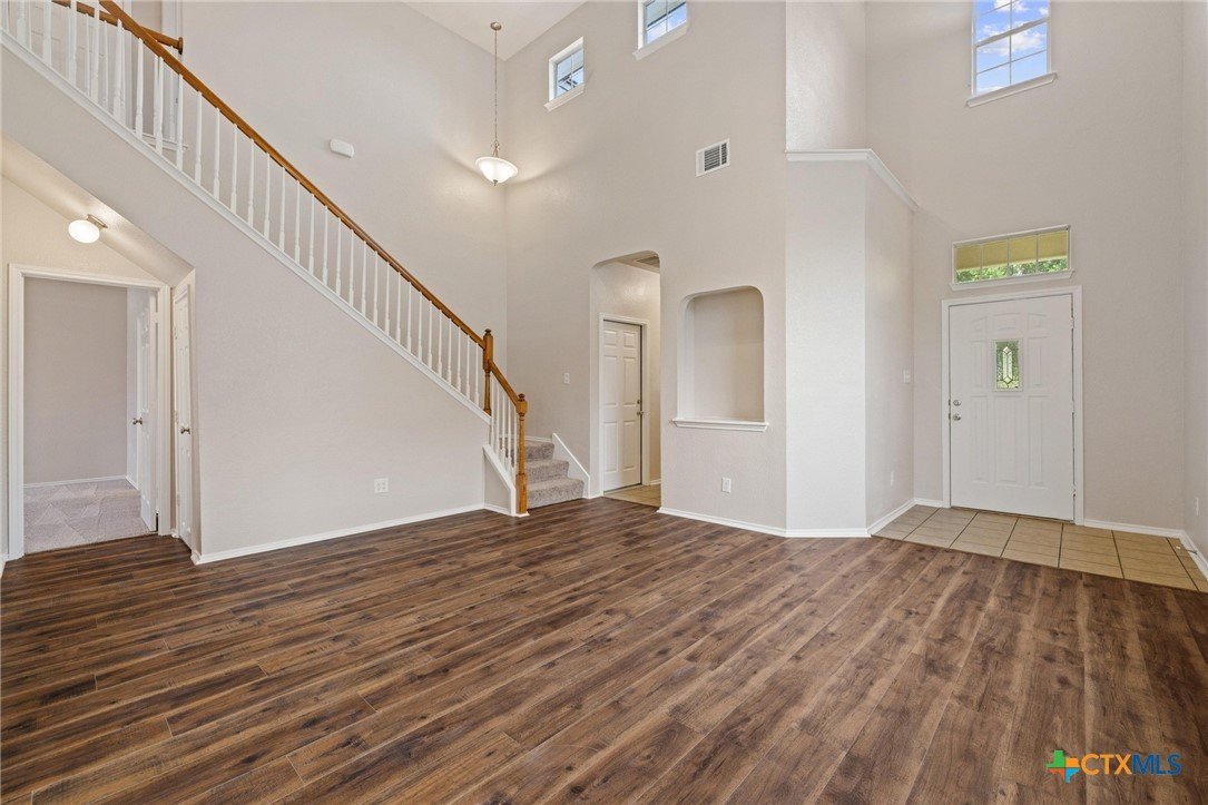 FRESHLY UPDATED HOME WITH NEW ROOF AND HVAC Come see this updated MOVE-IN READY 4 bedroom, 2.5 bath home in White Rock Estates featuring a long list of NEW UPDATES including NEW INSIDE PAINT, NEW WOOD LAMINATE FLOORING, NEW CARPET, NEW STAINLESS STEEL APPLIANCES, NEW OUTSIDE PAINT, a NEW ARCHITECTURAL IMPACT-RESISTANT ROOF, and a NEW CENTRAL HEAT & AIR SYSTEM. The spacious layout offers an open kitchen with granite countertops, a breakfast area, pantry, and plenty of room to entertain. The PRIMARY BEDROOM AND BATHROOM ARE LOCATED DOWNSTAIRS and feature a GARDEN TUB, SEPARATE SHOWER, DOUBLE VANITY, and WALK-IN CLOSET. All secondary bedrooms are upstairs, along with an additional full bath. Enjoy the privacy of a fully fenced backyard and a covered patio ready for your outdoor enjoyment. Located just HALF A MILE FROM LIBERTY HILL MIDDLE SCHOOL, 1 MILE FROM TIMBER RIDGE ELEMENTARY SCHOOL, and 1 MILE FROM CEDAR VALLEY ELEMENTARY SCHOOL.