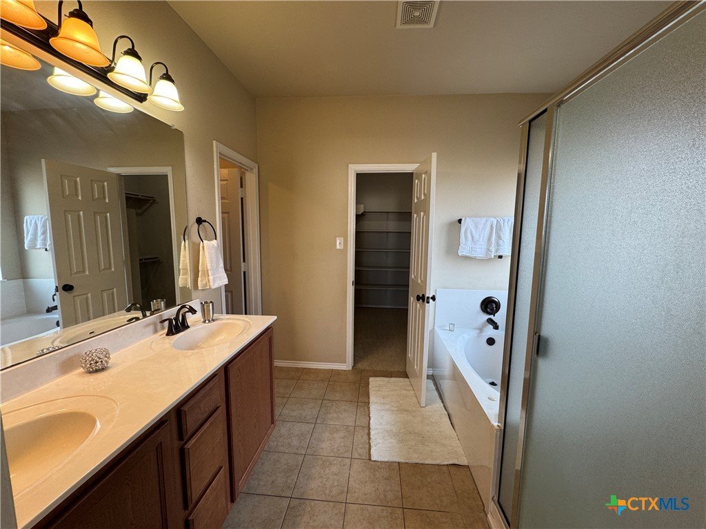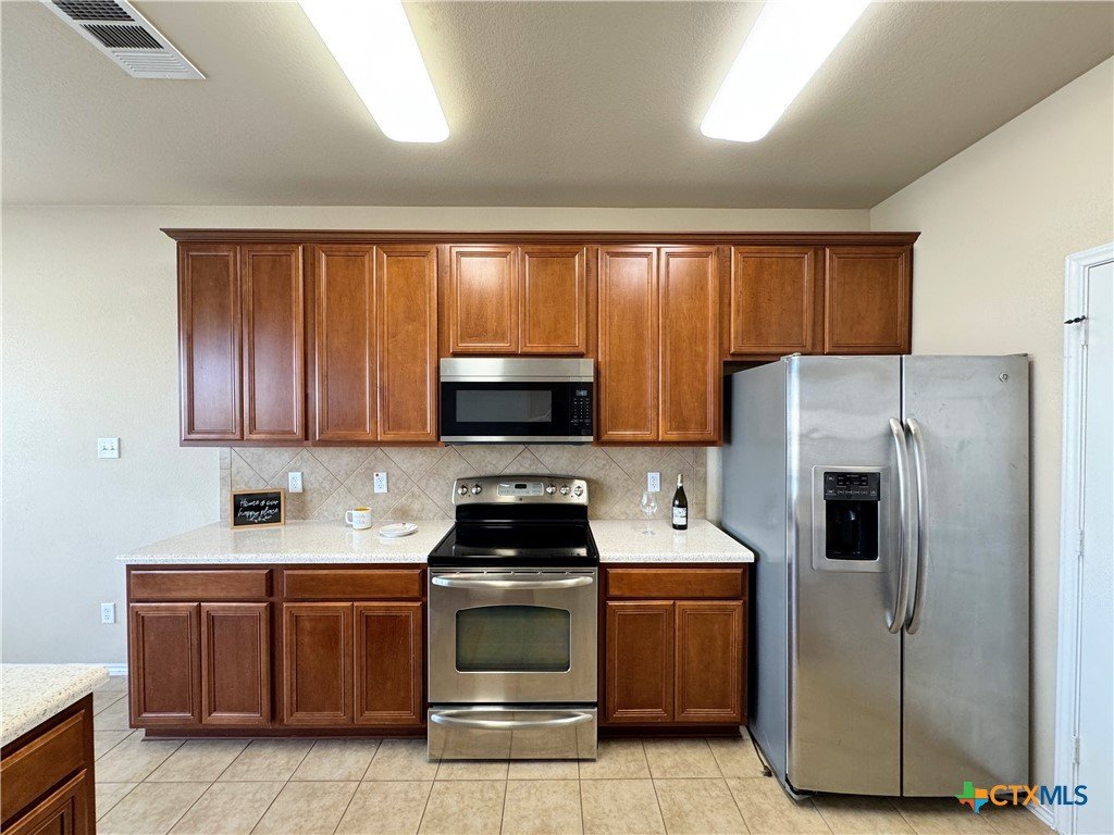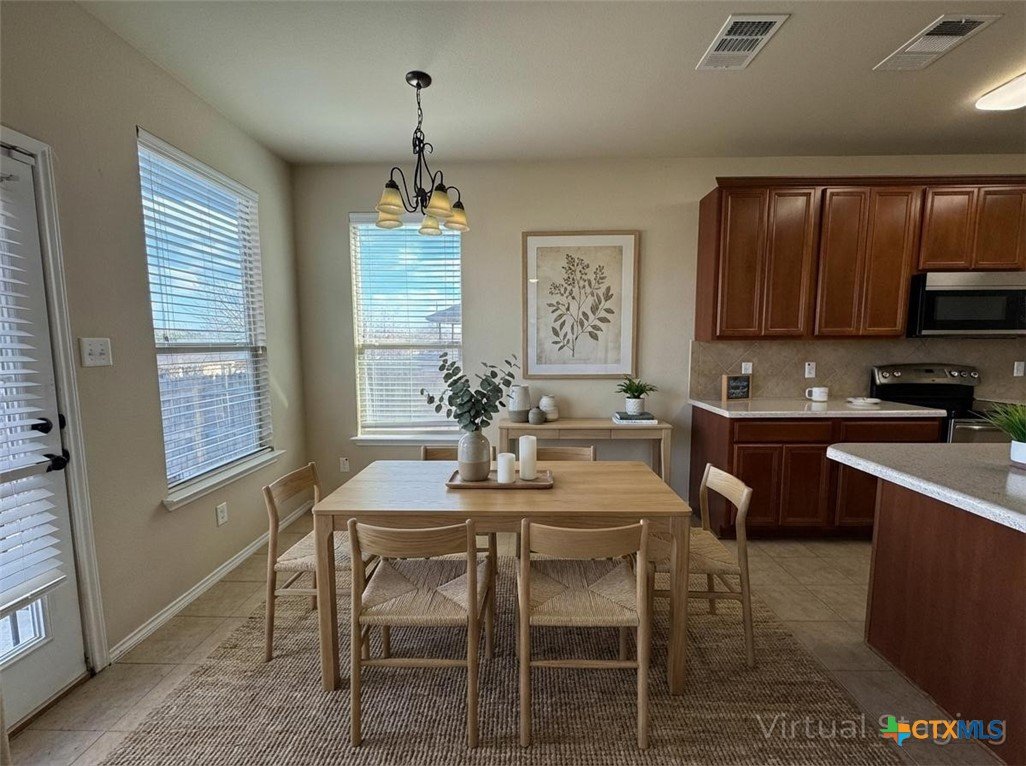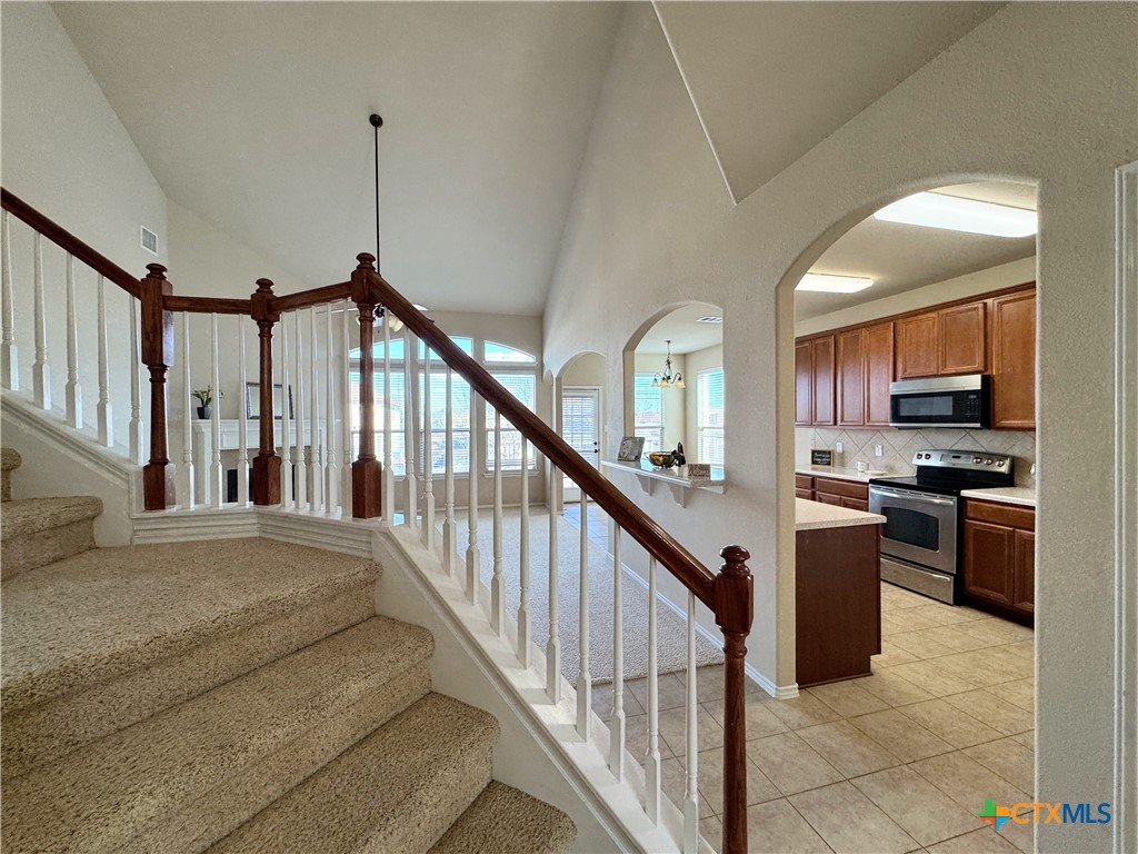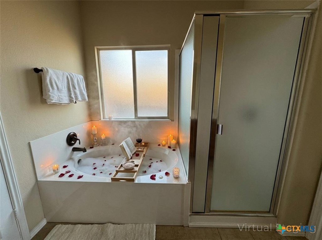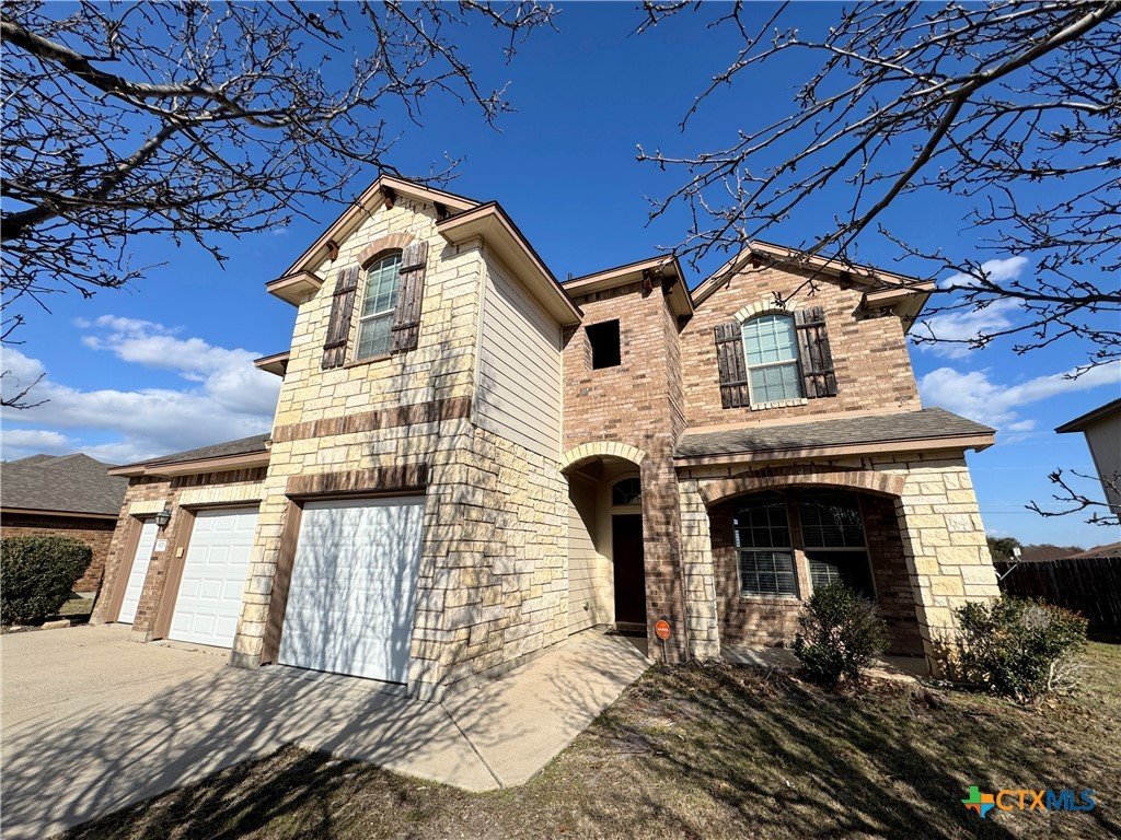 4 bedroom, 2.5 bath home in the desirable Spanish Oaks Subdivision. This spacious two-story layout features a ceramic tile entry, a formal living area with a fireplace, and an adjacent formal dining room. The fully equipped kitchen includes stainless steel appliances, a built-in microwave, and an open view into the living room. The primary suite is located on the main level, offering a jetted tub, separate shower, double vanity, and dual closets. Upstairs includes three additional bedrooms, a full bath, and a loft with a wet bar and sink. Enjoy an open patio overlooking the privacy-fenced yard and a 3-car garage for added storage and parking options. This home is located in an HOA. Disclaimer: The furnishings or enhancements shown are AI-generated and intended for inspiration only. They may not reflect the actual scale, condition, or current features of the property.