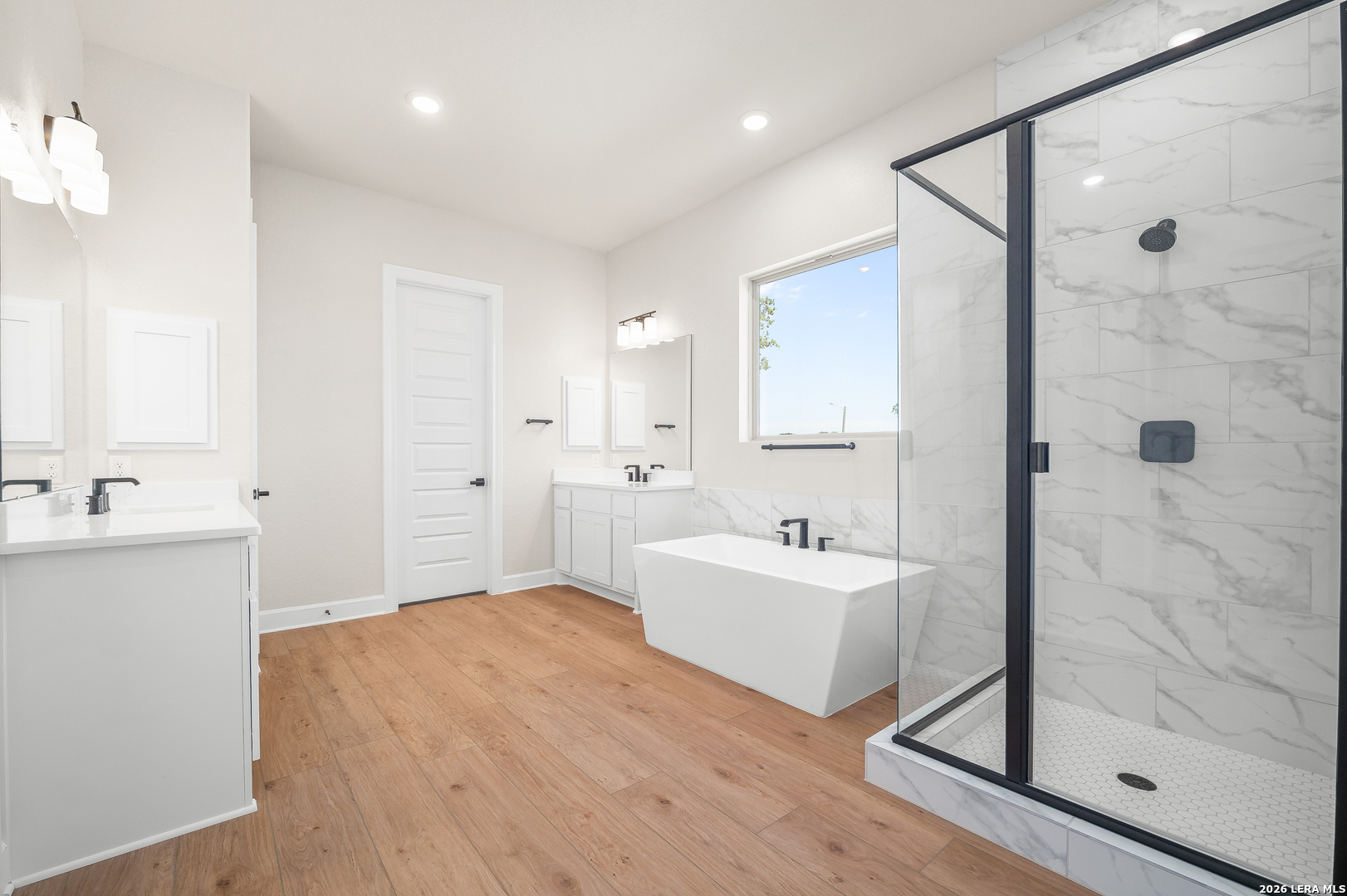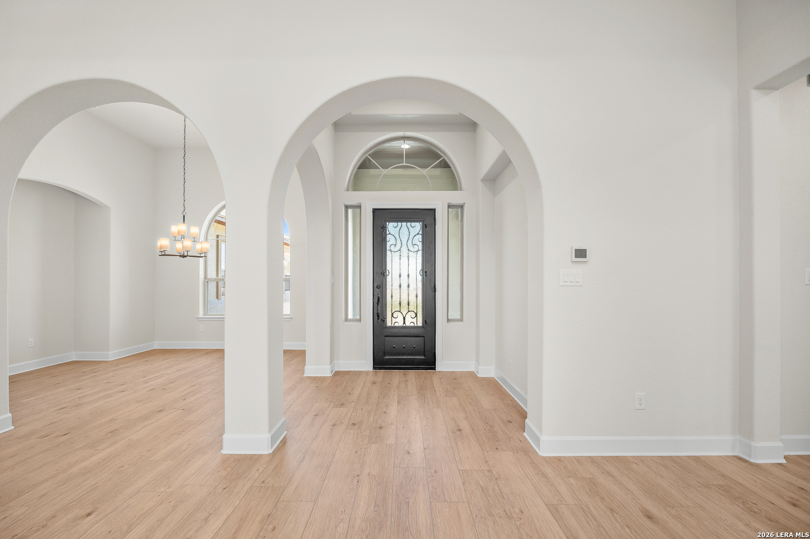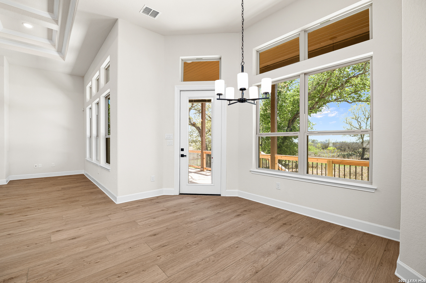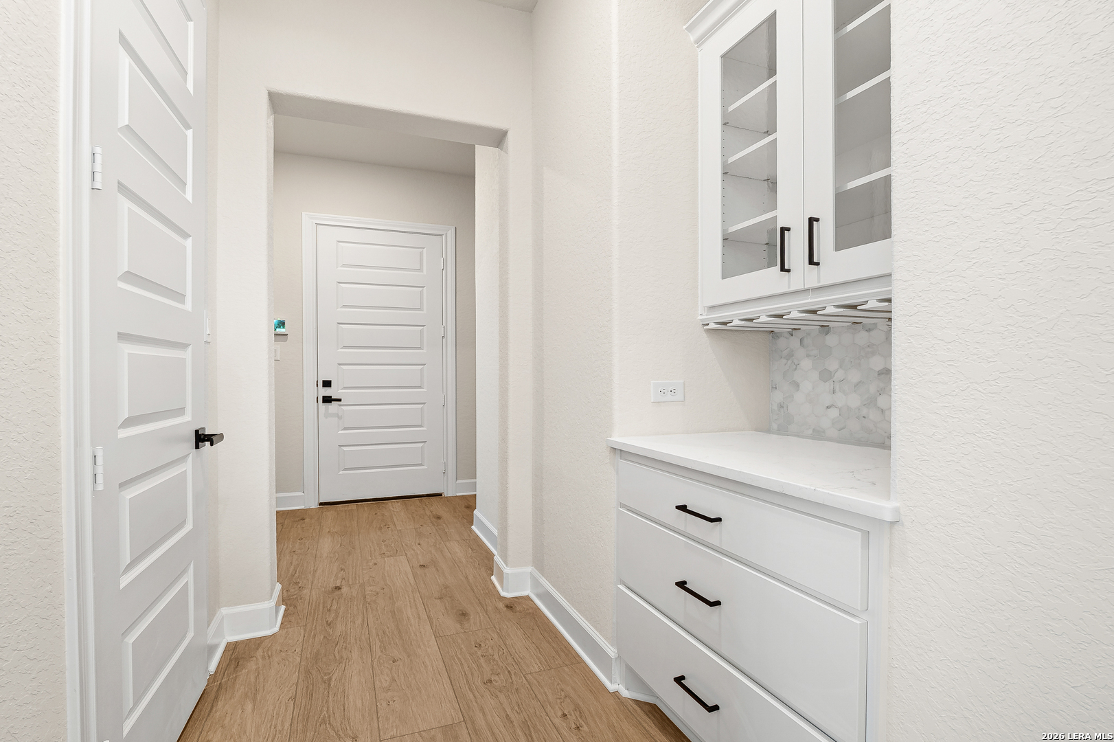 Legend Park is a new small gated community with only 34 homesites ranging from 1.25 to 2.45 acres, and is just 2.3 miles from charming and historical downtown Castroville! Private, cul-de-sac lot. Open and spacious single story with 2674 sq ft. Gorgeous home on a 1.94 acre treed homesite. 3 Bedrooms, 3 baths, study / dining room. Lots of LVP and tile flooring throughout. Voluminous Family Room with a 13.5' waffle ceiling with crown molding. Large windows overlook a spacious 30' covered patio that is perfect for entertaining! 8' iron entry door opening into a large foyer with a trey ceiling. 42" fireplace Francesca Ill mantel with gas log starter. Mudroom area. 6 panel interior doors all throughout with upgraded door levers. Kitchen & all baths have upgraded quartz counter tops. Primary bath has a tile shower with tile to the ceiling and separate freestanding 6' rectangular tub, spacious walk-in closet & raised vanities with upgraded quartz tops. The kitchen has beautiful white double stack upgraded white cabinets and upgraded quartz counter tops, farmhouse sink, pendant lights, upgraded Kitchen Aid appliances including a gas 6-burner cooktop with S/S built-in microwave and oven, pull out spice racks and trash bin. Also has an oversized, fully finished, 3 car side entry garage with openers and an over-sized Laundry room. Move-in ready!