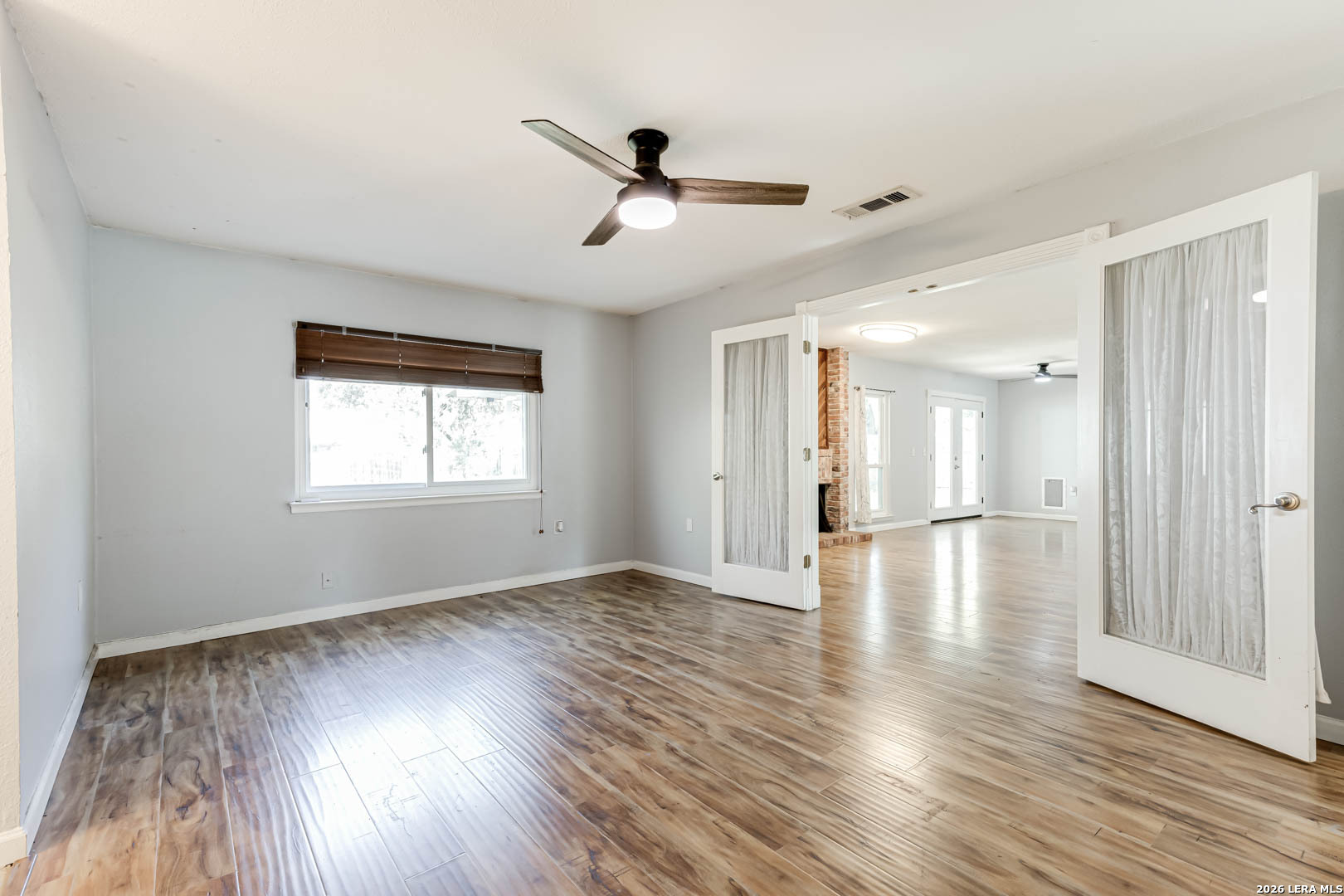 Move-in ready, this beautifully refreshed two-story home sits on an oversized lot in a quiet, established neighborhood. The bright, open layout is filled with natural light and designed for comfortable living and entertaining. Major improvements include a warranty on foundation work, brand-new roof, fully paid-off energy-efficient solar panels, HVAC system, and updated kitchen appliances-plus new windows throughout for added efficiency and peace of mind. Step outside to a spacious covered patio, perfect for gatherings, overlooking a large backyard complete with a storage unit. Inside, you'll find the living area features a floor-to-ceiling brick fireplace, creating a warm focal point. The primary suite offers a double-door entry and a walk-in shower, while the secondary bathroom includes a relaxing jetted tub. Generously sized secondary bedrooms and an expansive upstairs game room provide plenty of flexible living space. This home truly has it all-don't miss the opportunity to make it yours!