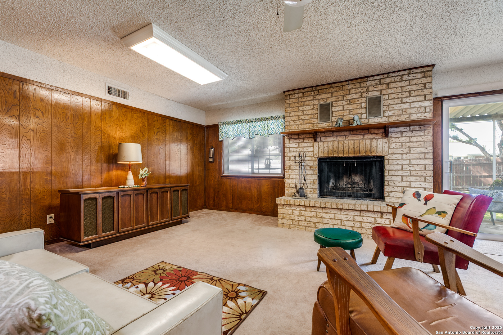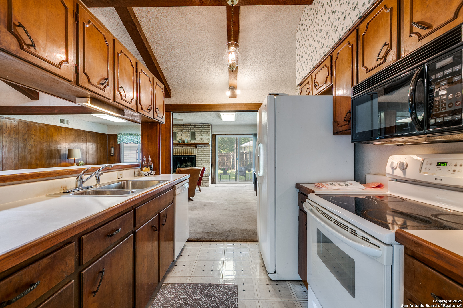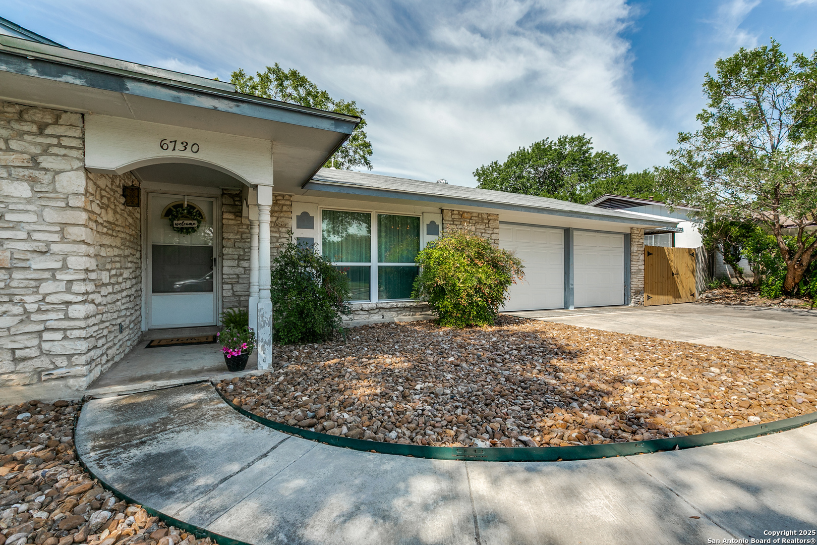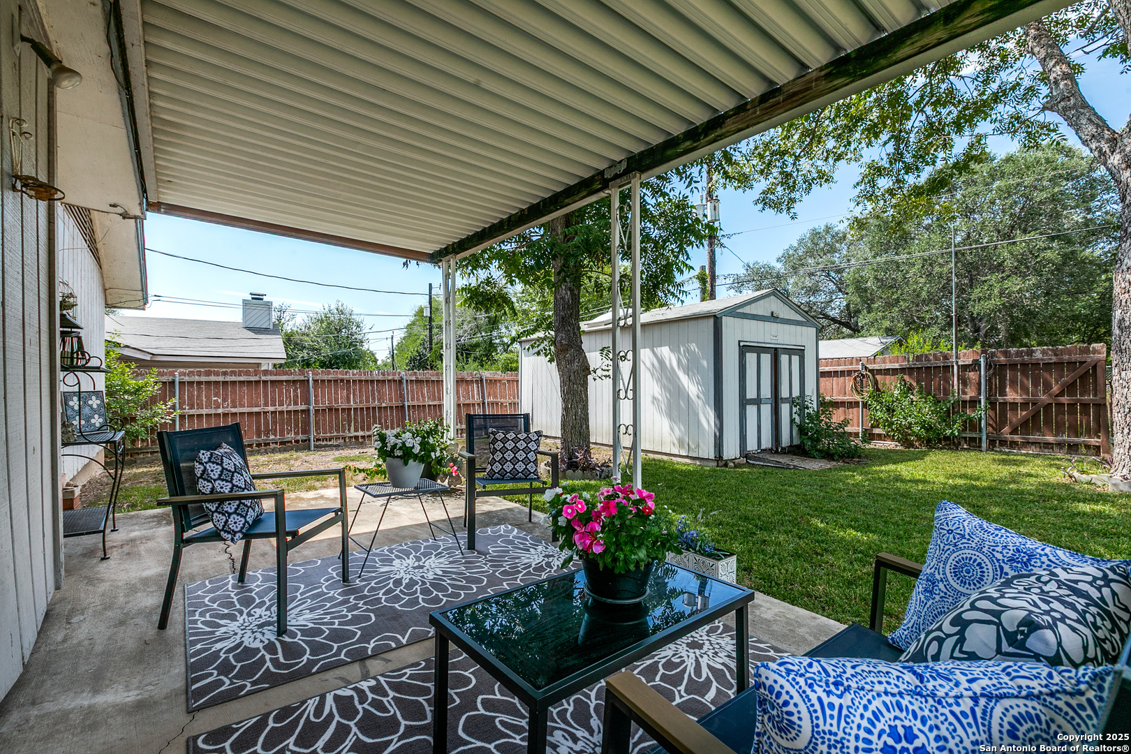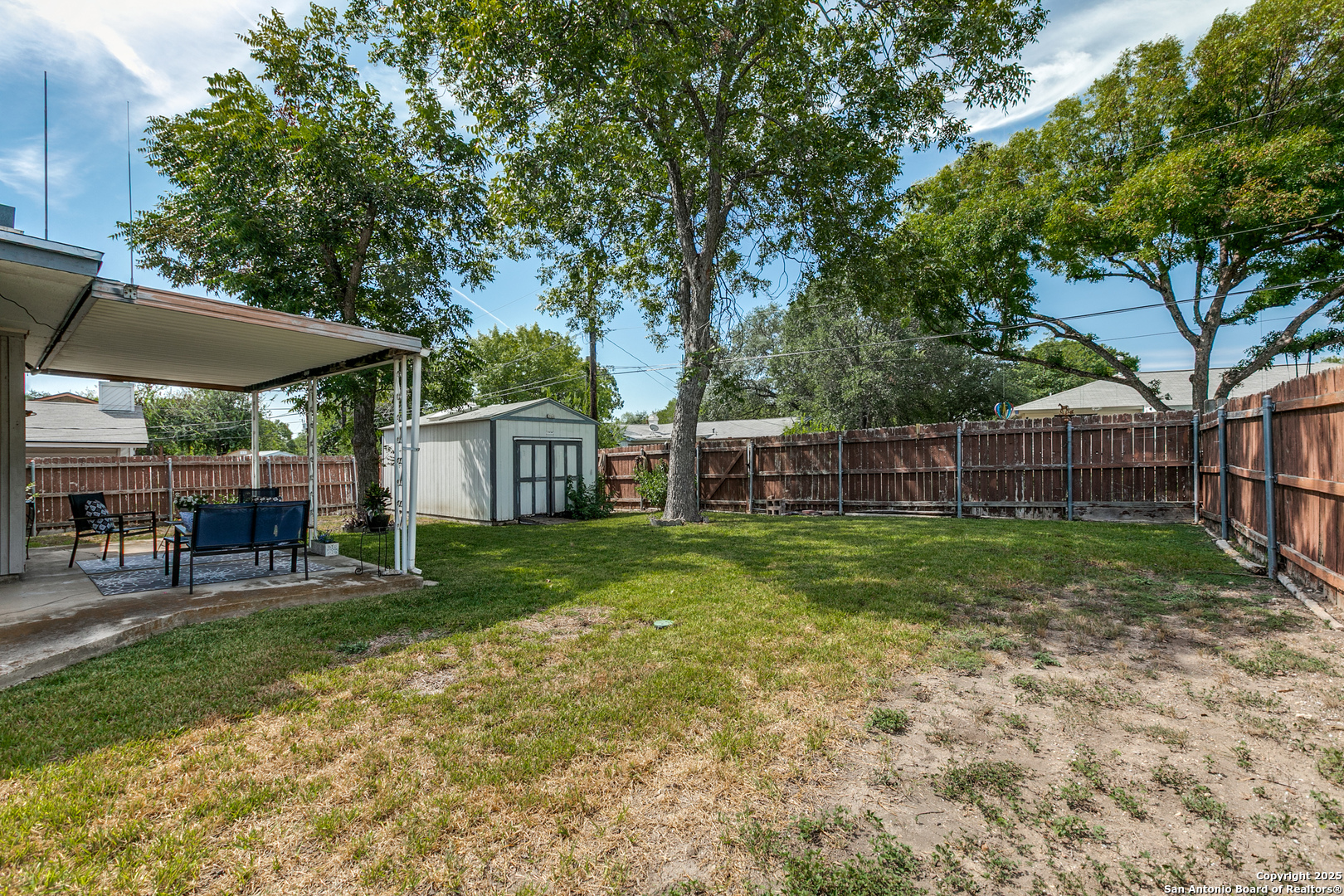 Fall in love with this eye-catching Leon Valley home featuring stone-accented charm and inviting curb appeal. A 2-car garage with an extended driveway and dual open gates provides additional parking and access to the oversized backyard oasis .Inside, you'll find 3 bedrooms, 2 full baths, and 1,529 sq. ft. of well-designed living space. A formal living and dining area welcomes you home and flows to a cozy family room highlighted by a full brick fireplace extending to the ceiling. The kitchen is filled with natural light and opens to a generous breakfast area, enhanced by a decorative vaulted ceiling with wood beams, creating a warm and inviting atmosphere. Enjoy indoor-outdoor living with an oversized covered back patio, perfect for gatherings. A large storage shed with electricity and skylights adds to the abundance of storage already found in the home and generous 2 car garage. Nestled in desirable Leon Valley, it's within walking distance to Raymond Rimkus Park and the community library. Small-town charm with no HOA allows a flexible lifestyle, all while being close to the Medical Center, Loop 410, and I-10. Priced below BCAD appraisal-this spectacular home is ready to be yours!