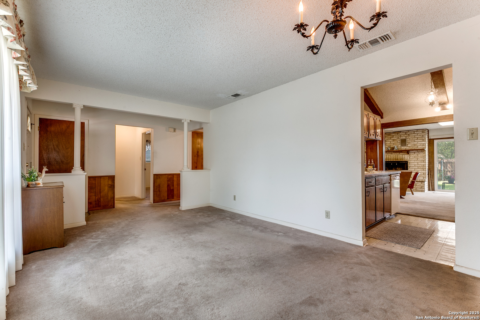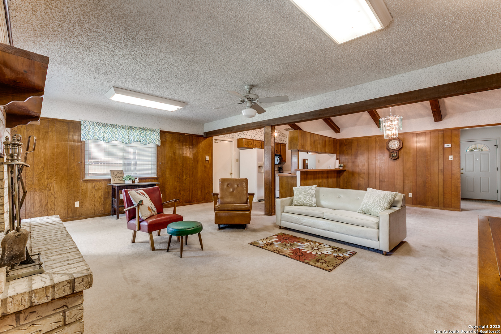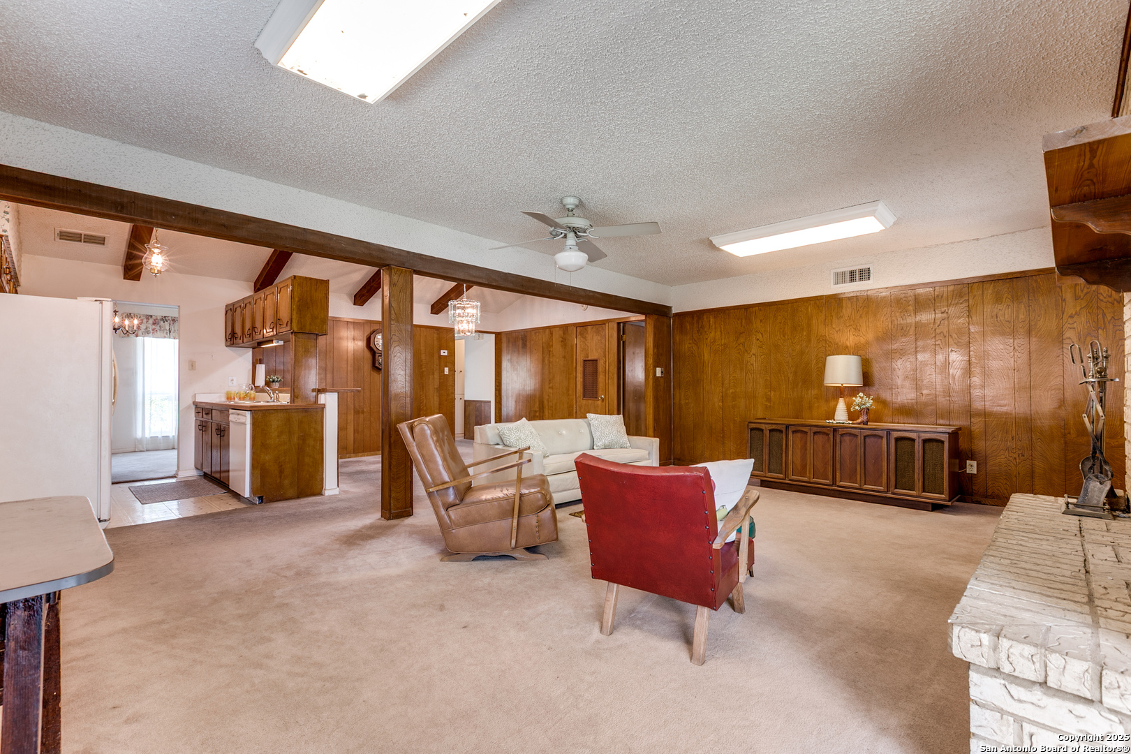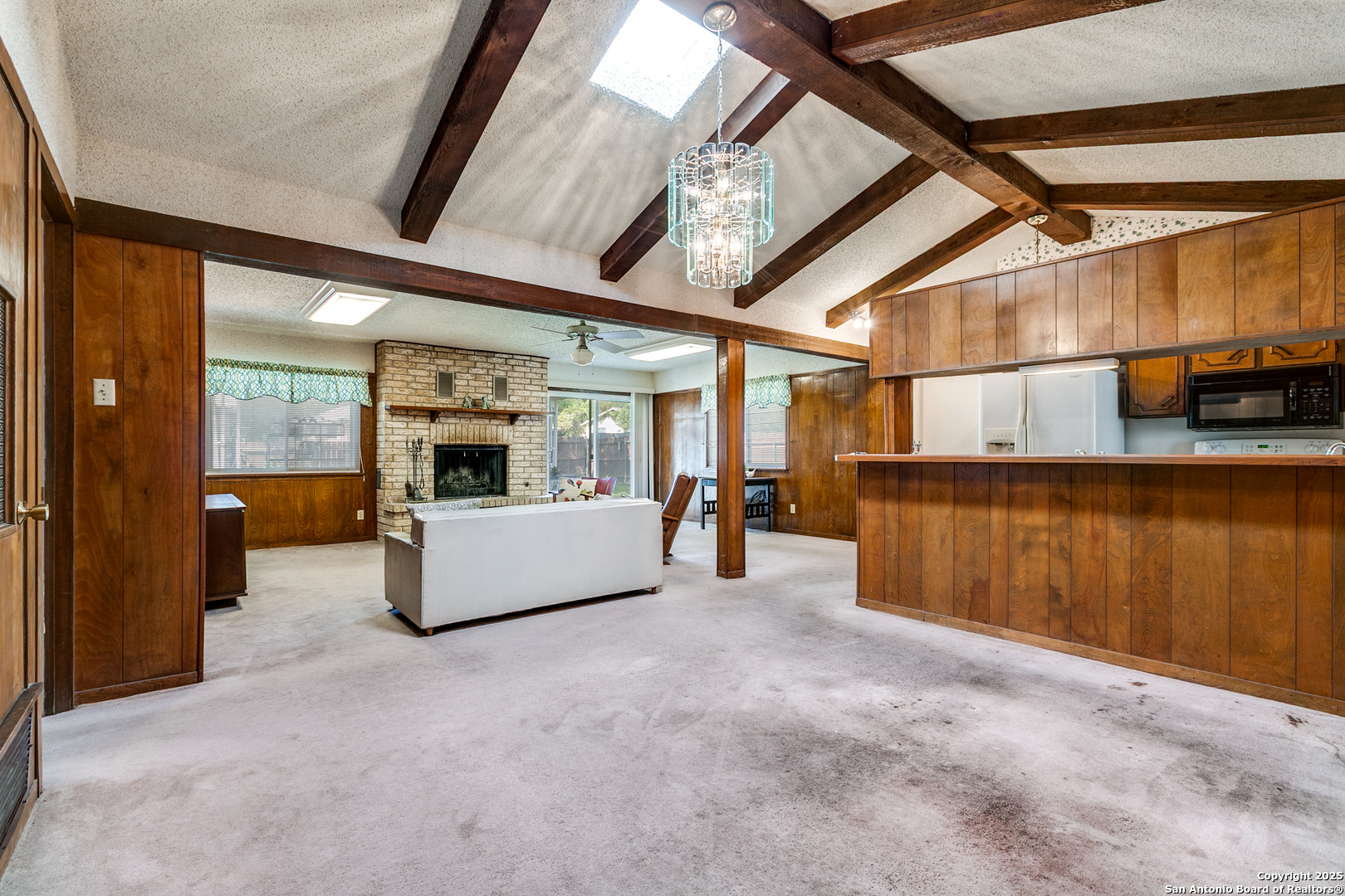 Fall in love with this eye-catching Leon Valley home featuring stone-accented charm and inviting curb appeal. A 2-car garage with an extended driveway and dual open gates provides additional parking and access to the oversized backyard oasis .Inside, you'll find 3 bedrooms, 2 full baths, and 1,529 sq. ft. of well-designed living space. A formal living and dining area welcomes you home and flows to a cozy family room highlighted by a full brick fireplace extending to the ceiling. The kitchen is filled with natural light and opens to a generous breakfast area, enhanced by a decorative vaulted ceiling with wood beams, creating a warm and inviting atmosphere. Enjoy indoor-outdoor living with an oversized covered back patio, perfect for gatherings. A large storage shed with electricity and skylights adds to the abundance of storage already found in the home and generous 2 car garage. Nestled in desirable Leon Valley, it's within walking distance to Raymond Rimkus Park and the community library. Small-town charm with no HOA allows a flexible lifestyle, all while being close to the Medical Center, Loop 410, and I-10. Priced below BCAD appraisal-this spectacular home is ready to be yours!