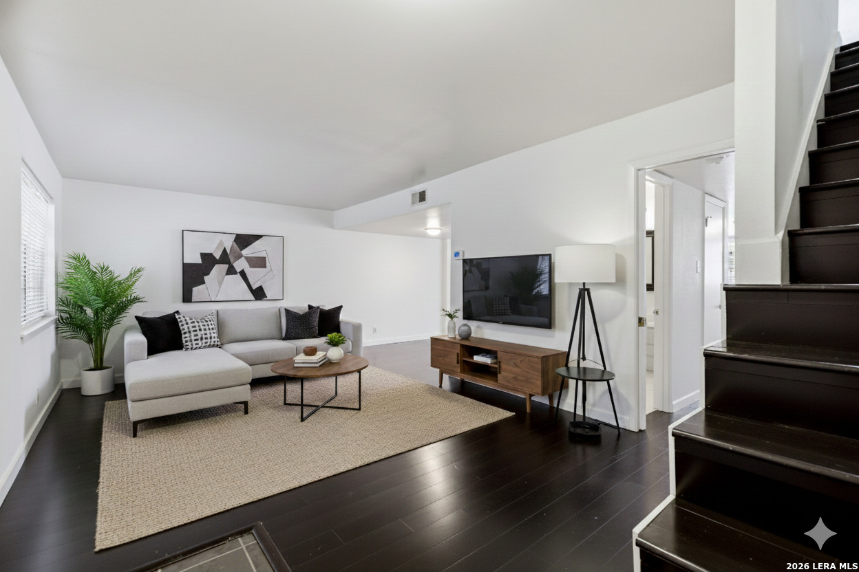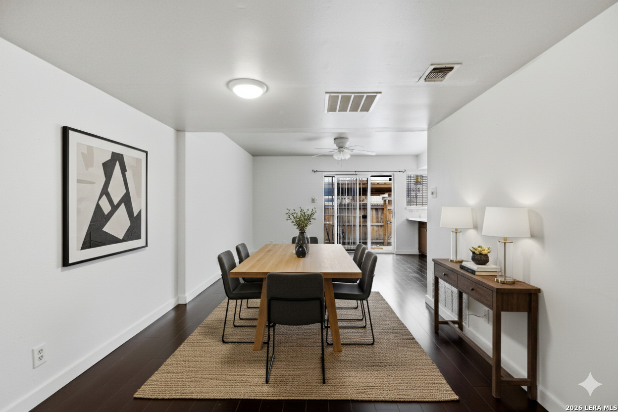 Positioned within the established Crown Ridge Townhomes community, this spacious two-story residence offers approximately 1,750 square feet of thoughtfully designed living space. With three bedrooms and two-and-a-half bathrooms, the layout provides functional separation between living and sleeping areas while maintaining an open and inviting main level. Inside, the primary living area flows comfortably into the dining space and kitchen, creating a natural gathering point for everyday living. Plank flooring highlights the main areas, while tile surfaces in select spaces offer durability and easy maintenance. The upstairs level includes all bedrooms, including a generously sized primary suite with private bath and ample closet space. Outdoor living is enhanced by a private patio area ideal for relaxing or entertaining. Two covered carport spaces with rear entry provide convenient parking along with additional exterior storage. Residents of the community enjoy access to maintained common areas, pool, clubhouse, and recreational amenities. The property's setting within the neighborhood offers convenient access to major roadways, shopping, dining, and everyday conveniences while maintaining a tucked-away residential feel. A well-proportioned townhome offering comfortable living space, community amenities, and a practical layout in an established Northeast San Antonio location.