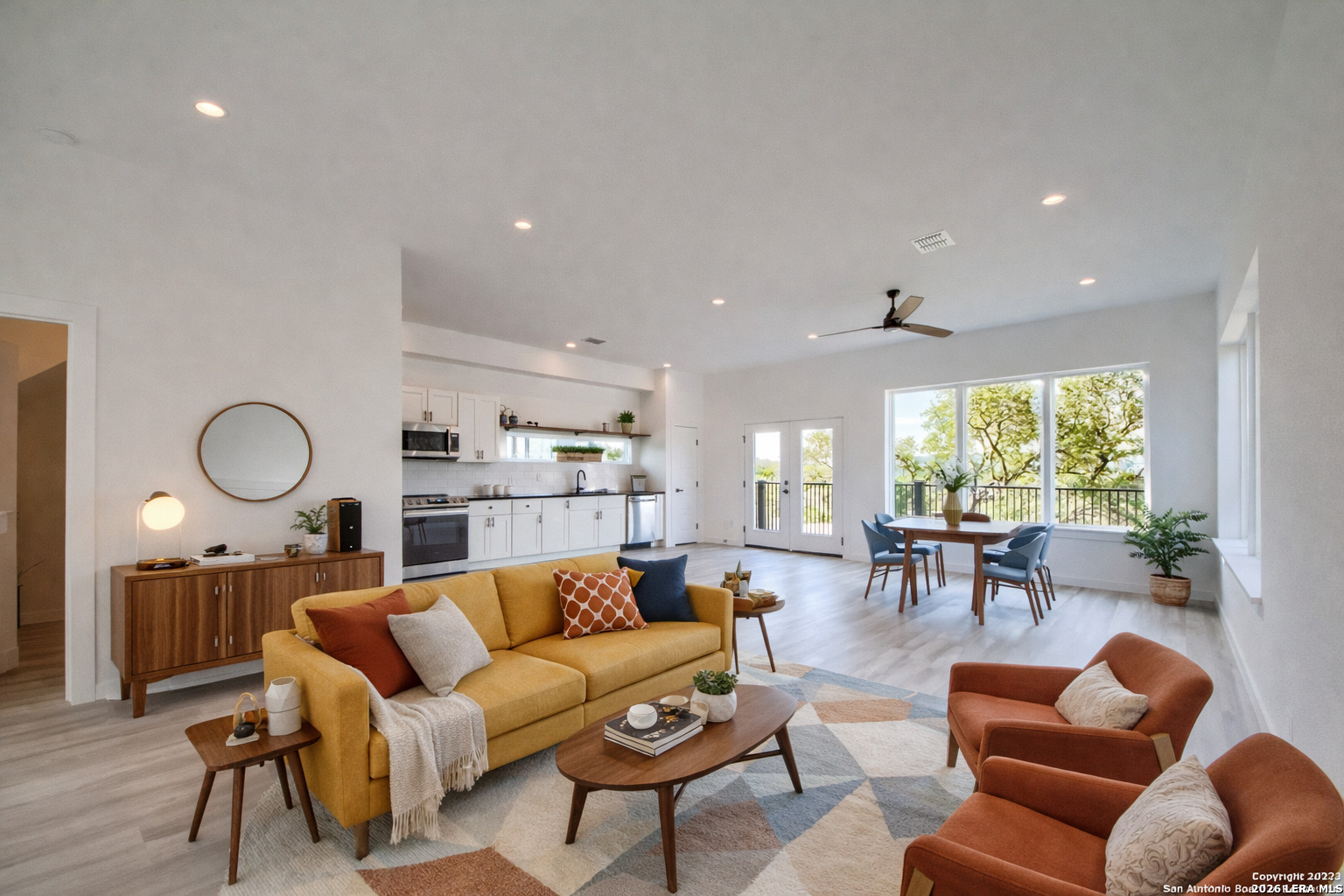 Lake views from every floor! This stunning 3-story Mid-Century Modern home offers 3 bedrooms, 3.5 baths, and approximately 2,300 sq ft with breathtaking Canyon Lake and Hill Country views. Features include luxury vinyl plank flooring, a modern kitchen with quartz countertops, custom maple shaker cabinets, stainless steel appliances, and designer finishes throughout. Enjoy balconies on the 2nd and 3rd floors, a fenced yard, and extended driveway with room for boat parking. Just one block from Canyon Lake and near Boat Ramp #6, with community pool and park access. Ideal for full-time living, a weekend retreat, or short-term rental (Airbnb/VRBO). Photos include virtual staging; property is tenant occupied.