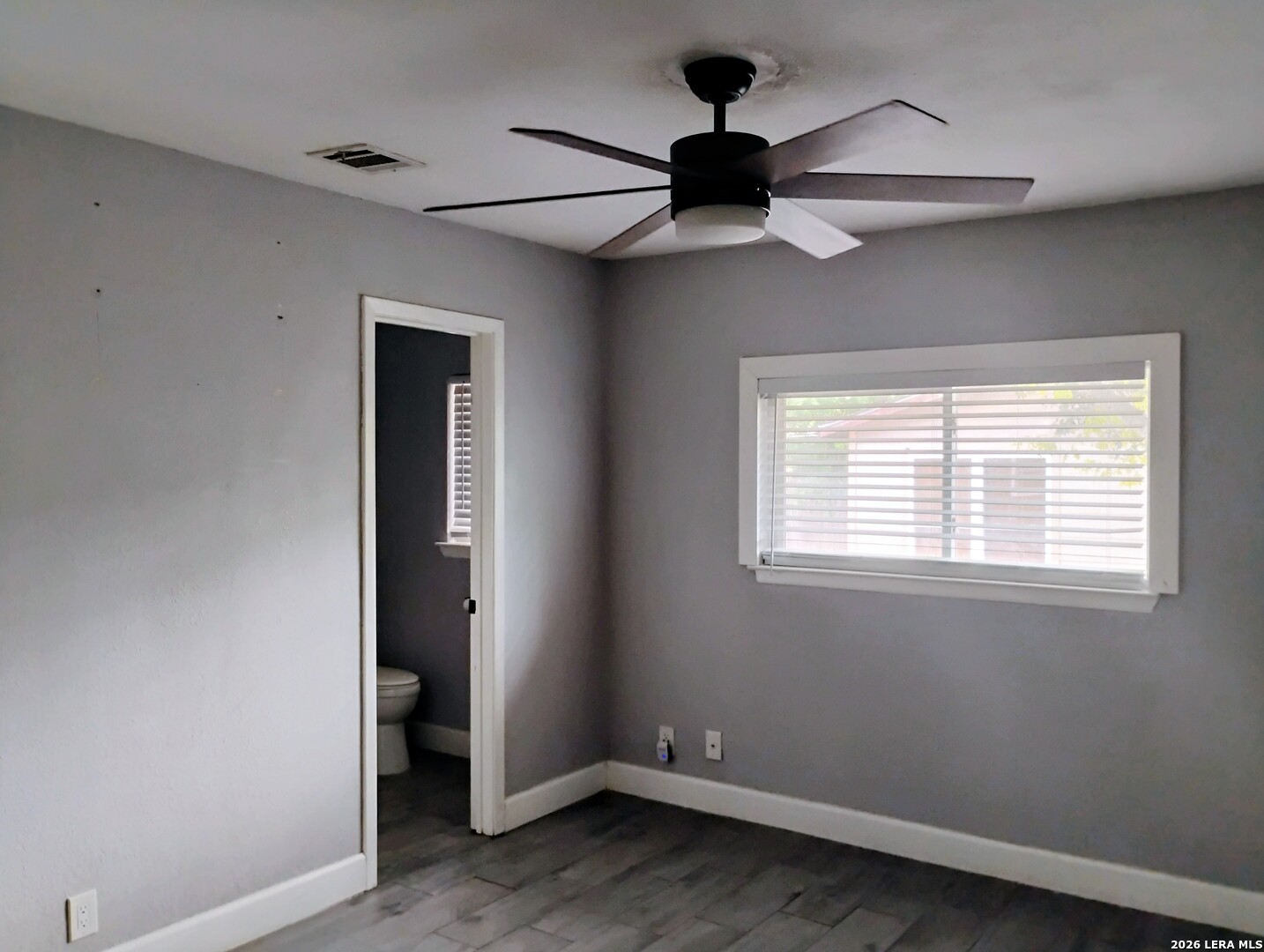 Welcome to Paradise Oaks! This contemporary, updated home with a wrought iron gate in front offers plenty of upgrades and fun for friends and family. Inside, laminated floors flow throughout, and the family room features a cozy fireplace for comfort and romance. The kitchen boasts granite countertops and upgraded cabinets, while the main bathroom exudes elegance with its gorgeous walk-in shower. The master bedroom charms with its half bath, spacious layout, and an impressive closet that takes up one of the bedrooms. A secondary bedroom is just down the hall. Step outside to a massive back patio, ready for a cover to be installed, with a small section perfect for a barbecue pit. You'll also find a second dwelling ideal for a room, extra living space, or a shop-this versatile building offers endless possibilities. Set up a tour today