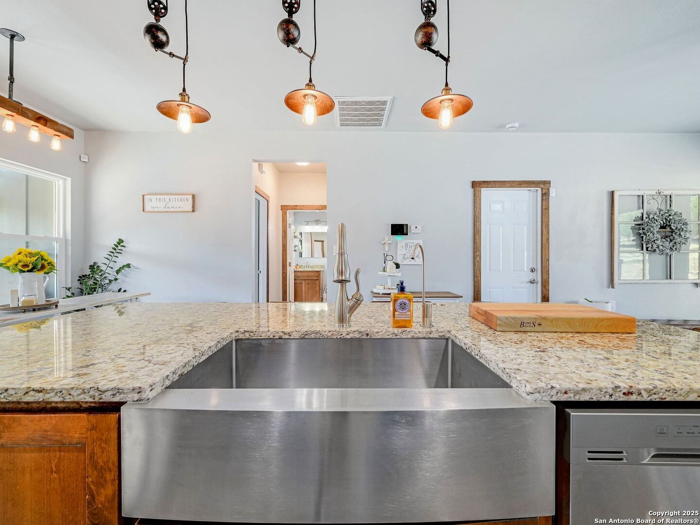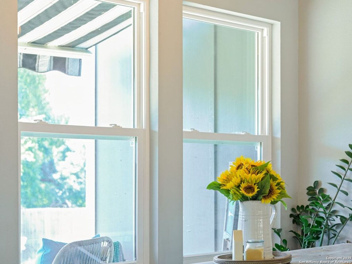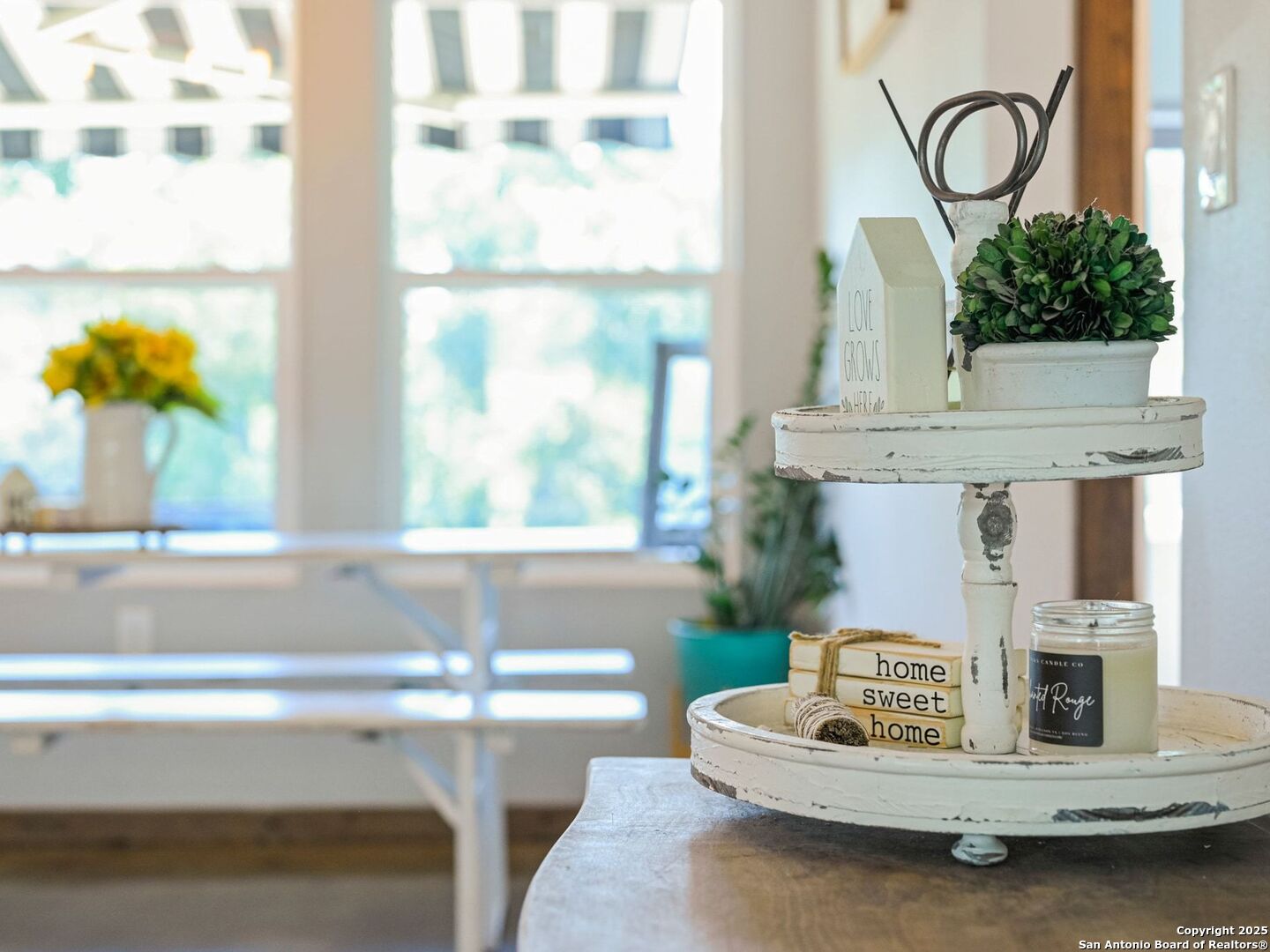 One-of-a-Kind Hill Country Retreat! Discover this hidden gem on over half an acre in the desirable Spring Branch/Bulverde area, just minutes from Hwy 281. This contemporary 3-bedroom, 2-bath home offers a turnkey retreat with furnishings negotiable for a seamless move-in. Step inside to beautifully stained concrete floors and an expansive open layout anchored by an oversized granite island, perfect for entertaining. The spacious living room and kitchen seamlessly connect to a private backyard oasis. Relax on the patio overlooking the wooded greenbelt, complete with a sleek hydraulic awning that extends shade at the touch of a button. Neighborhood amenities elevate the lifestyle, featuring three private parks with access to the Guadalupe River, swimming pool, sports courts, trails, and more; All for less than $300 per year. Highlights include: River Park: A six-acre park with 1/4-mile of Guadalupe River frontage, picnic areas, BBQ grills, and restrooms. Community Park (walking distance): Pavilion for gatherings, playground, soccer fields, tennis courts, and basketball hoops.