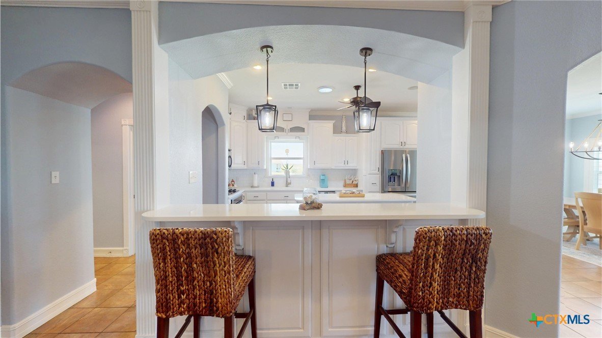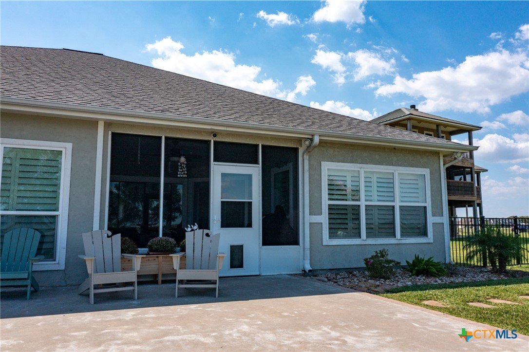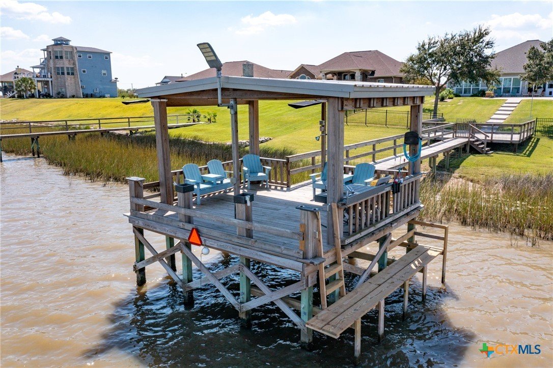 Escape to a Waterfront Paradise on Chocolate Bay Nestled on a spacious half-acre lot, this beautifully designed, open-concept home offers the ultimate in relaxed coastal living. Featuring a thoughtful split-bedroom floor plan, the layout provides privacy while keeping the main living areas open and inviting—perfect for both everyday living and entertaining. Enjoy sweeping views of Chocolate Bay from the comfort of the screened-in back porch, an ideal spot to sip your morning coffee or unwind in the evening. Step outside to a large back patio, perfectly suited for hosting gatherings or simply enjoying the fresh coastal breeze. The kitchen is a chef’s dream, boasting elegant quartz countertops, while the bathrooms feature luxurious granite countertops, adding a touch of sophistication throughout the home. For fishing enthusiasts, the private covered pier comes equipped with electricity and water, making it easy to spend long, enjoyable days by the water. Additional features include: All-electric home Security system (cameras excluded from sale) Sprinkler system 2-car garage with ample storage City water and aerobic septic system Low annual HOA fees This property offers the perfect blend of comfortable indoor living and exceptional outdoor amenities. Don’t miss your chance to own this stunning waterfront retreat on Chocolate Bay.