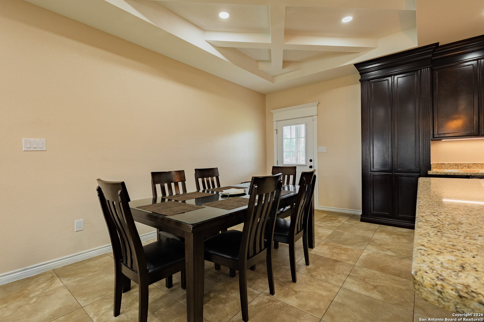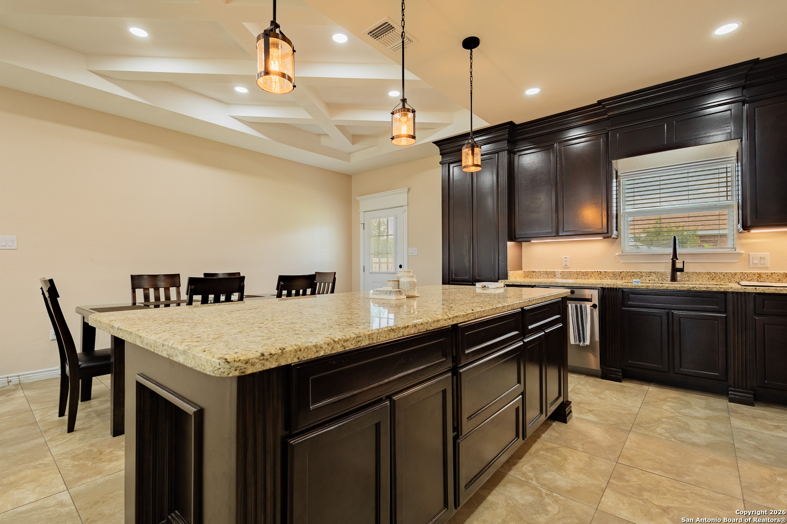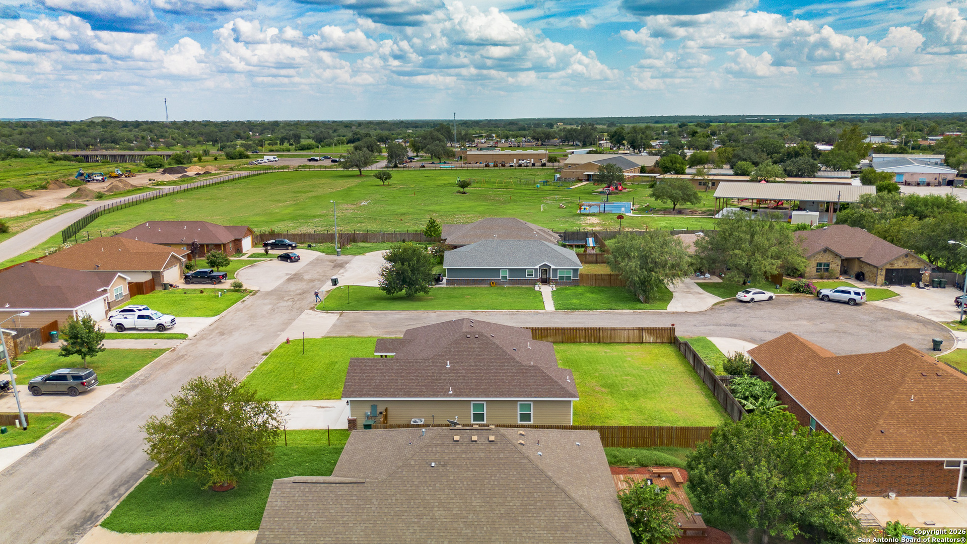 Offering $10,000 in buyer's concessions! Use it to cover closing costs, buy down rate, whatever you choose! Built in 2024 and gently lived in by the original owner, 68 Sunday Court offers modern design, functional living, and just under 1,600 square feet of well-appointed space on a desirable corner lot. This three-bedroom, two-and-a-half-bath home features a brick and siding exterior, a two-car attached garage, and a fully fenced backyard with a covered back porch-ideal for grilling, entertaining, or relaxing outdoors. Inside, the open living and dining area is highlighted by custom architectural ceiling details, recessed lighting, and elegant backlit crown molding that creates a warm, upscale atmosphere. The entire home is finished with durable and stylish 24x24 large-format ceramic tile throughout. The kitchen is a standout with dark custom cabinetry extending to the ceiling, granite countertops, a large island with pendant lighting, and stainless steel appliances-all included. Oil-rubbed bronze fixtures are carried consistently throughout the home, adding a cohesive designer touch. The split floor plan provides privacy, with the primary suite located on one side of the home. The primary bathroom features dual vanities with granite countertops, custom cabinetry, and a beautifully tiled walk-in shower with frameless glass doors. On the opposite side of the home, two generously sized guest bedrooms offer walk-in closets with custom storage, TV connections, and additional wall bracing. The guest bathroom is finished to the same high standard with granite countertops, custom cabinetry, oil-rubbed bronze fixtures, and a tile tub/shower combination. A convenient half bath off the common area provides easy access for guests. Additional features include a spacious laundry room with a utility sink and custom cabinets, a fully finished garage with LED lighting, sheetrock, texture, paint, and trim, a decorative front entry door, and an included security system. Located in a neighborhood surrounded by newer construction homes-most built within the last five years-this home is just minutes from an elementary school and a short drive to downtown Uvalde shopping and dining.