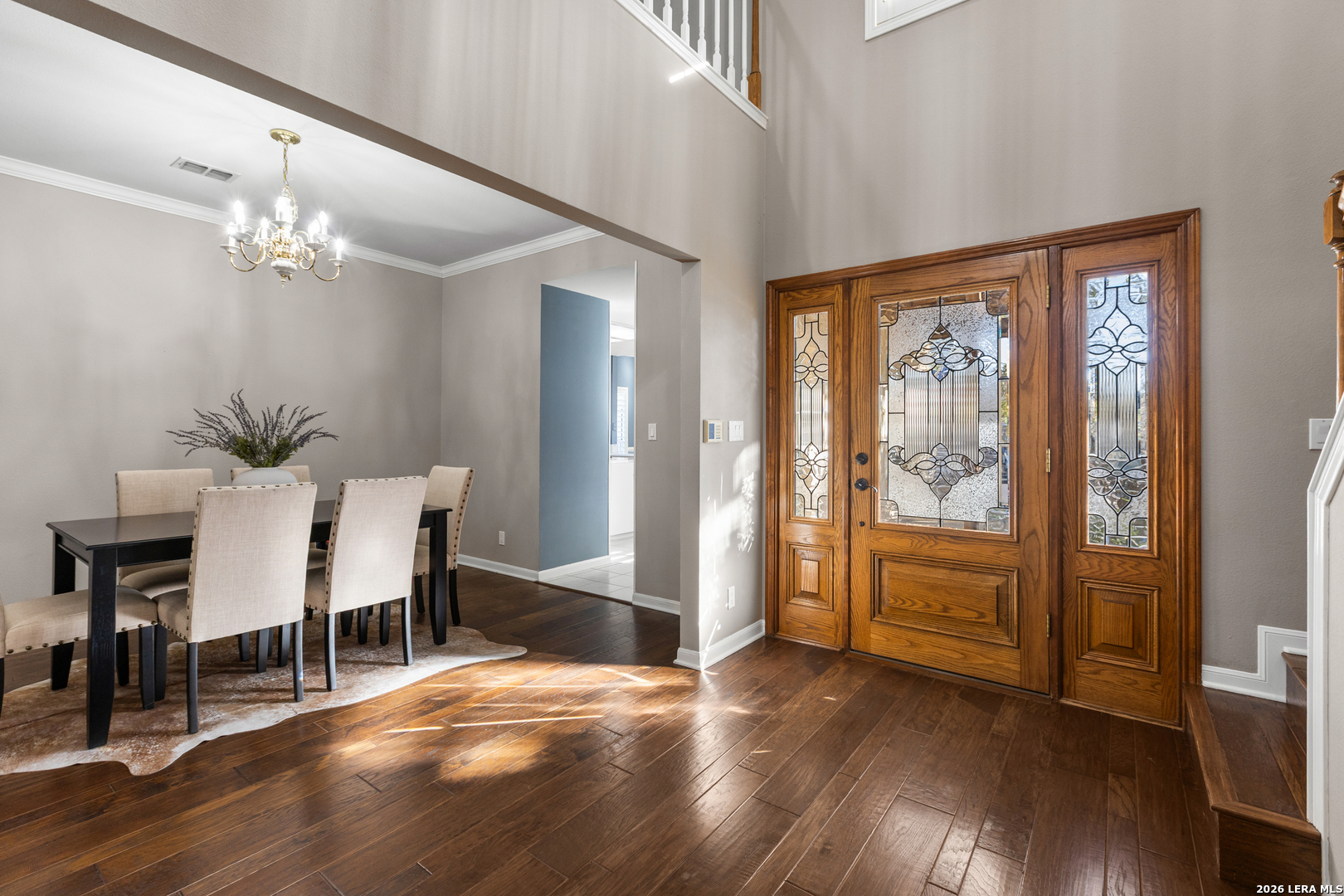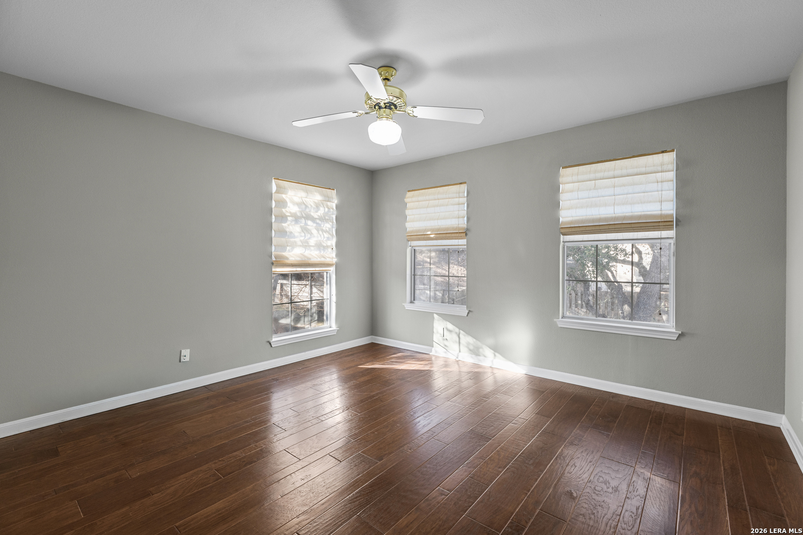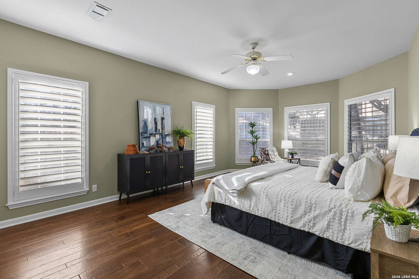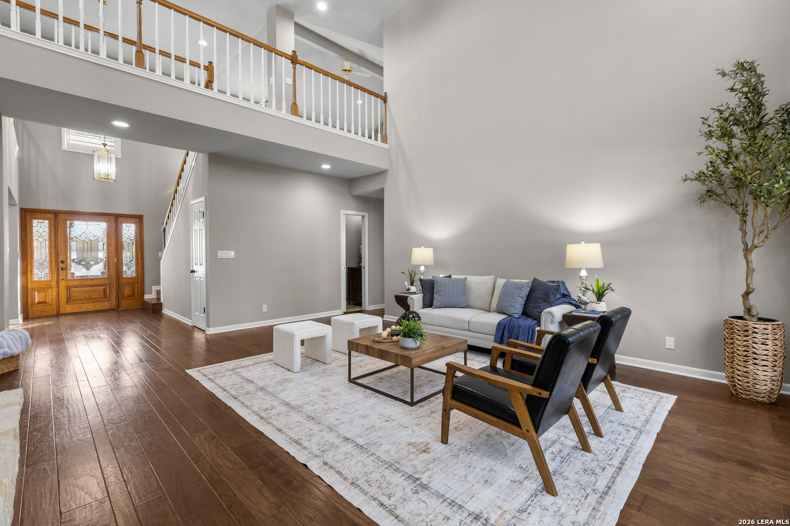 Welcome to Crownridge, one of San Antonio's most desirable communities located just minutes from La Cantera, the Rim, UTSA, and some of the city's best dining, shopping, and entertainment. Step inside and experience soaring ceilings, expansive windows, and an abundance of natural light for an open, inviting atmosphere. The living room is anchored by a striking stone fireplace, offering warmth and architectural charm while connecting to the dining area for entertaining. Quartz countertops, stainless steel appliances, and ample cabinetry and prep space enhance the impressive kitchen and breakfast room. The first-floor primary bedroom offers privacy and comfort with a sitting area and an ensuite bath featuring granite countertops, travertine floors, double vanities, shower, jetted tub, and built-in storage. Upstairs, a spacious game room, provides additional living space, leading to three generously sized bedrooms and a Hollywood bath layout. Rich hardwood floors and plantation shutters flow throughout the home adding warmth, elegance, and timeless appeal. A rock exterior and standing-seam metal roof reflect the Texas Hill Country style, while the driveway with electronic gate leads to a side-entry garage and additional secure parking options. The oversized backyard is framed by mature trees, offering shade, privacy, and room to enjoy the outdoors. If you are searching for refined living, this four-bedroom home delivers luxury. Schedule your private showing today and experience it in person.