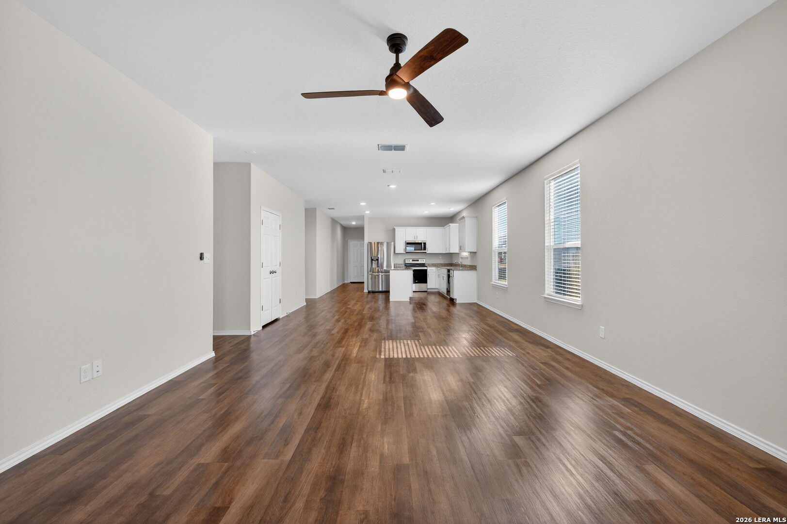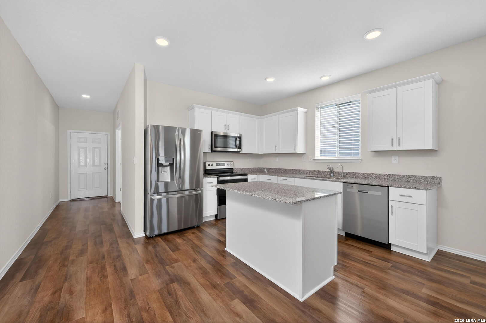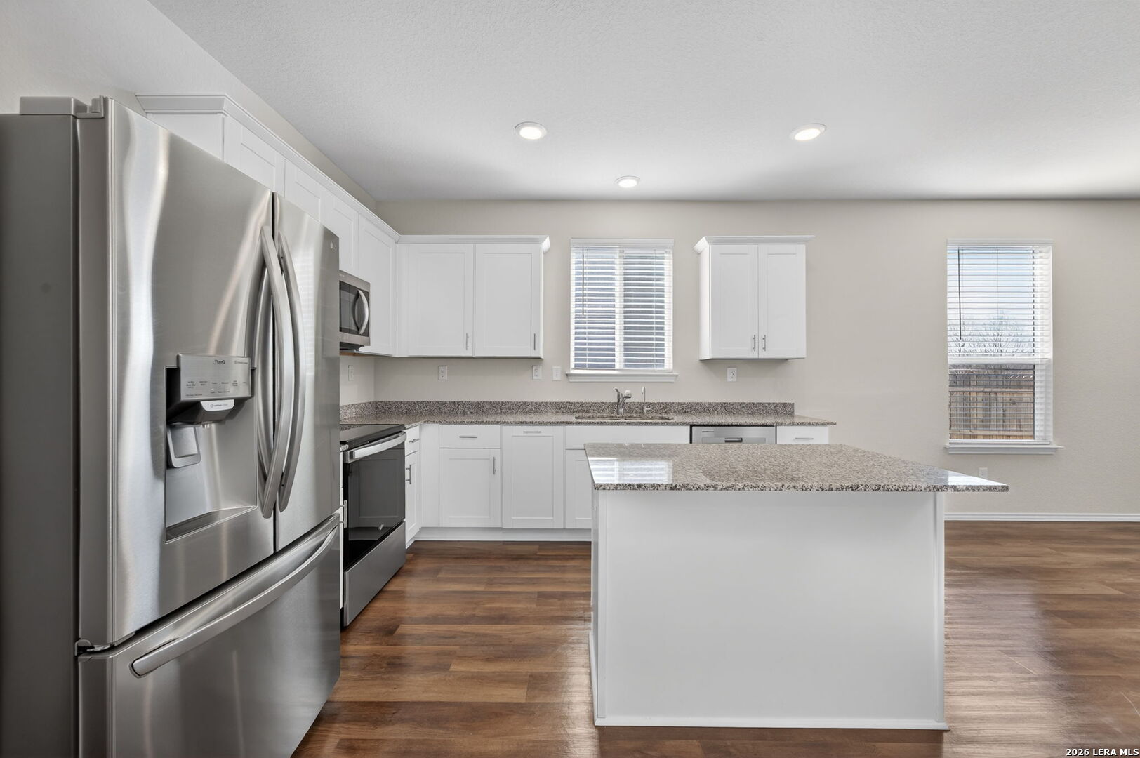 Featuring The Hewitt's open concept floor plan from Pulte Homes, this one story style energy efficient home accommodates free-flowing living. Upon entry, be greeted by the office/study room and luxury vinyl plank flooring which sprawls the property. The chef friendly kitchen with breakfast bar hosts granite countertops which opens into the large family room. The three bedrooms includes a secluded owner's suite which hosts double vanity and full bath. All LG & Whirlpool appliances stay. Sprinkler system installed. Offering peace and privacy, the land directly behind the property is owned by the Santa Clara's Homeowner's Association. Schedule your private tour today.