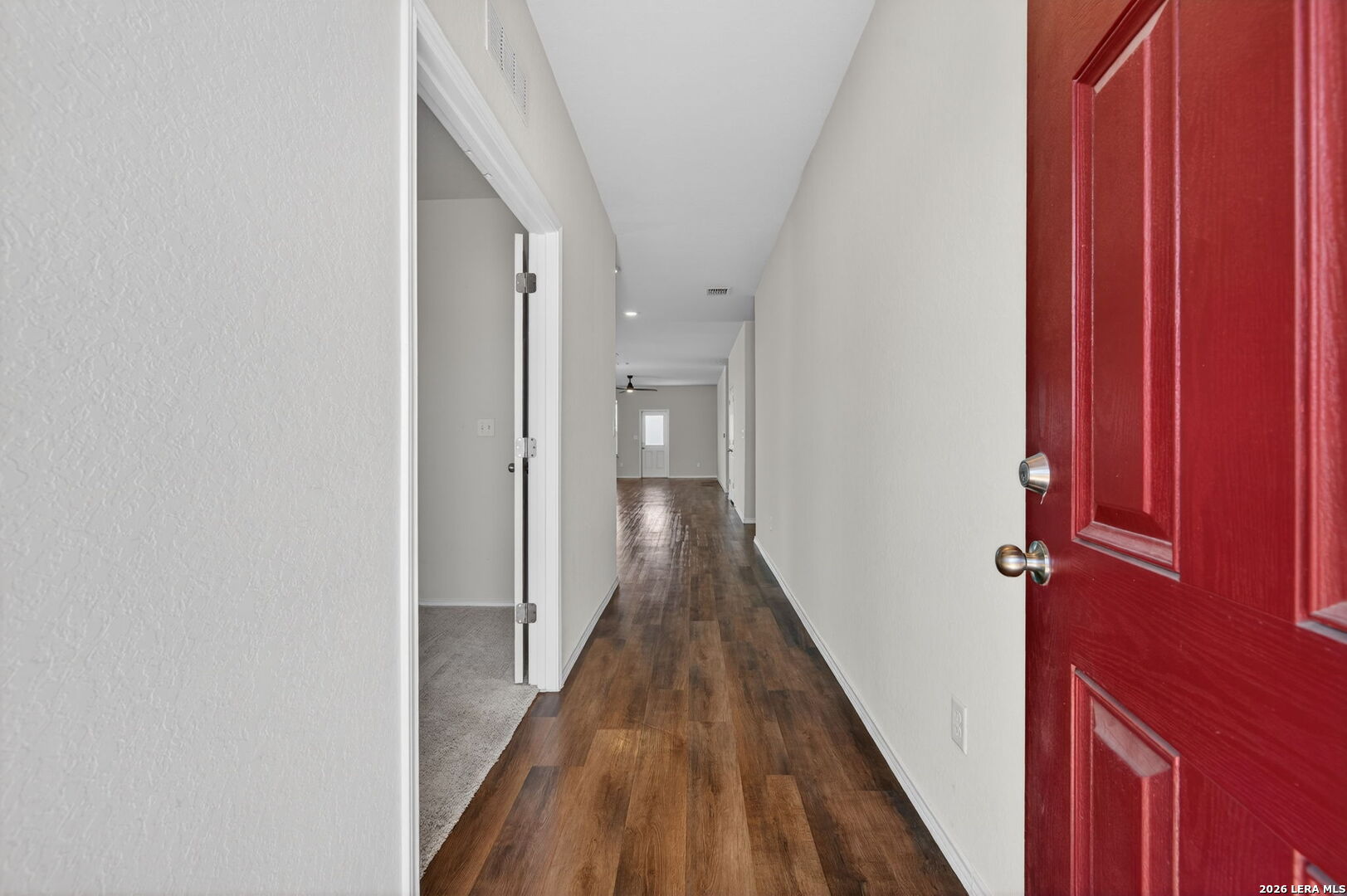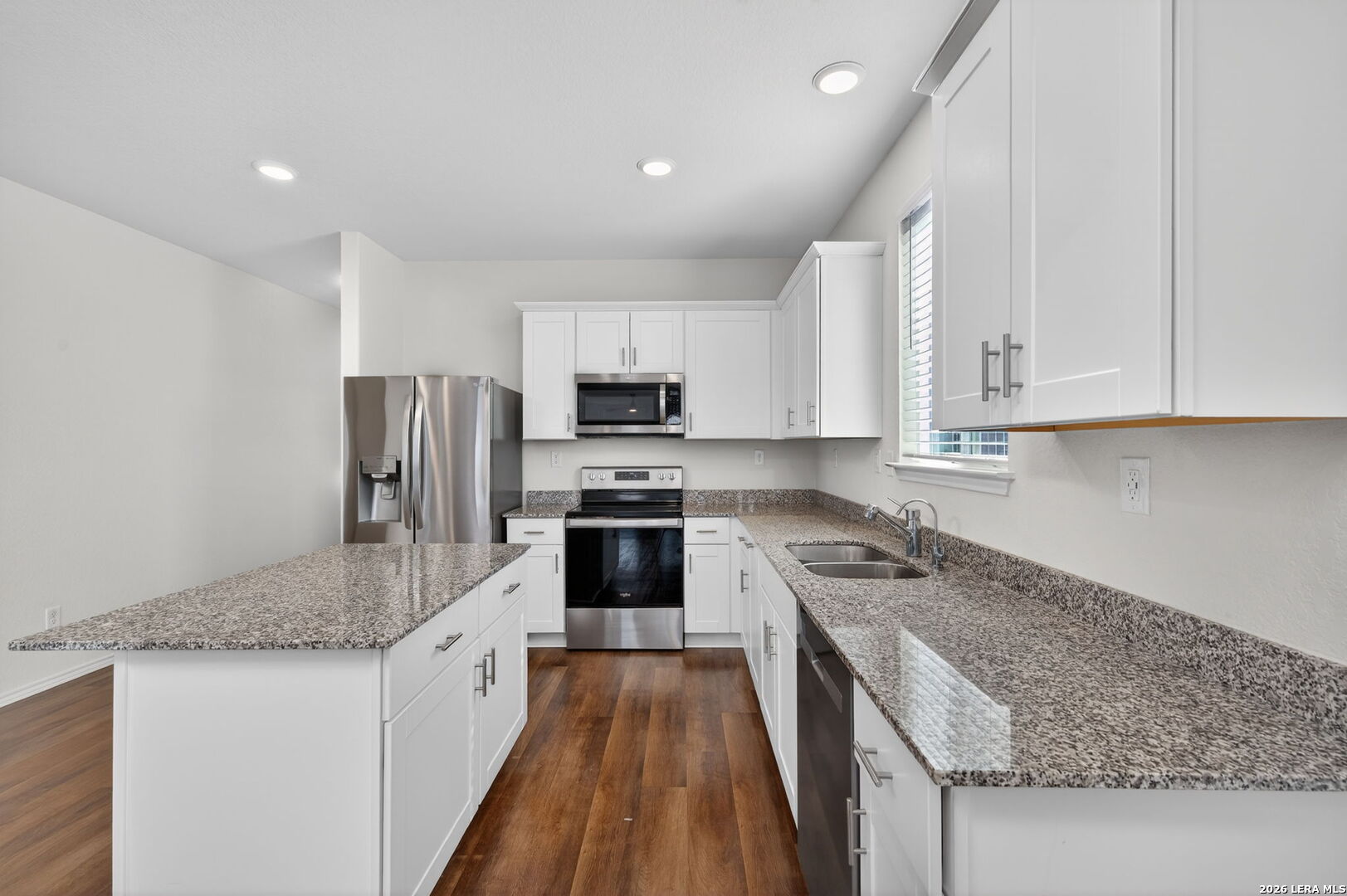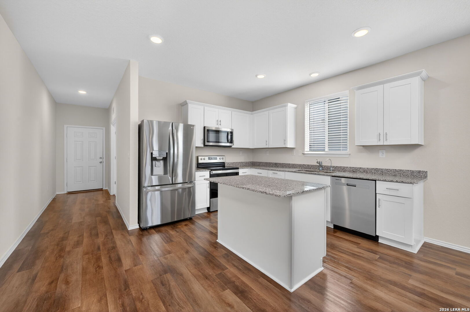 Featuring The Hewitt's open concept floor plan from Pulte Homes, this one story style energy efficient home accommodates free-flowing living. Upon entry, be greeted by the office/study room and luxury vinyl plank flooring which sprawls the property. The chef friendly kitchen with breakfast bar hosts granite countertops which opens into the large family room. The three bedrooms includes a secluded owner's suite which hosts double vanity and full bath. All LG & Whirlpool appliances stay. Sprinkler system installed. Offering peace and privacy, the land directly behind the property is owned by the Santa Clara's Homeowner's Association. Schedule your private tour today.