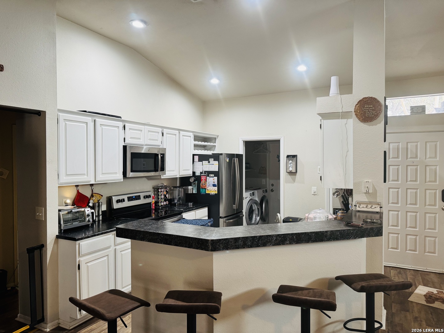 Welcome home to this charming 3-bedroom, 2-bath beauty with an open-concept layout and soaring ceilings that create a bright and airy feel. Natural light pours in, highlighting the stylish laminate flooring and spacious living areas perfect for entertaining or cozy nights in. Step outside to a huge backyard with a privacy fence - plenty of room for BBQs, kids, pets, or future outdoor upgrades! Located just minutes from I-35 and Loop 1604, with quick access to shopping, restaurants, entertainment, Randolph Air Force Base, and zoned to Northeast ISD - convenience truly meets comfort.