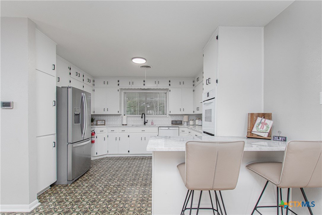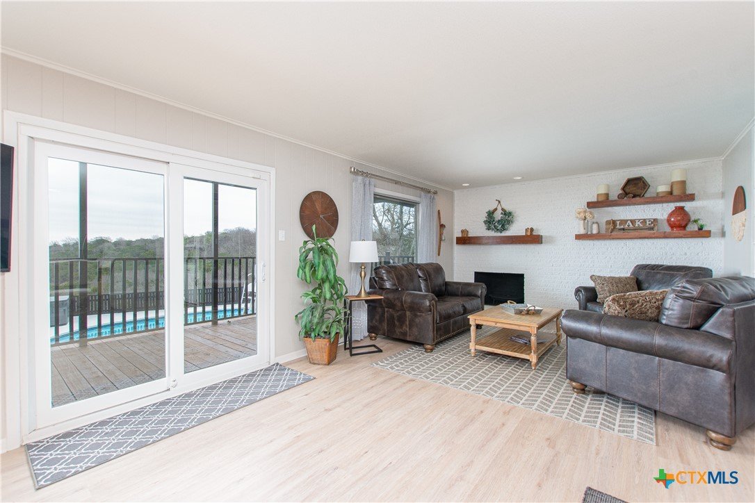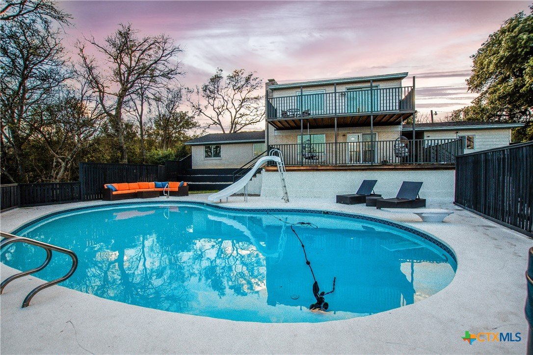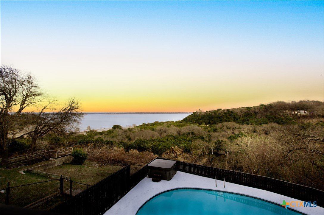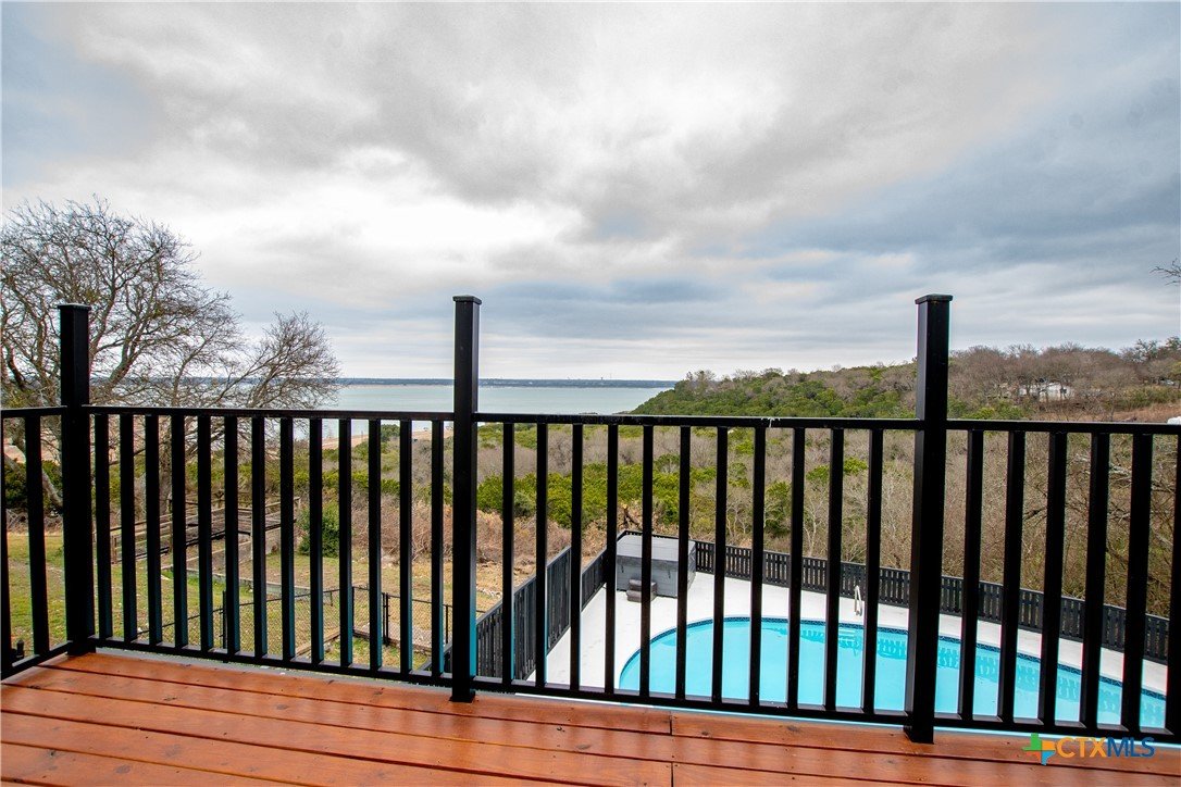 Stunning LAKE BELTON VIEW W/A POOL & HOT TUB!!! This panoramic view of peaceful, calming Belton Lake awaits in this renovated home. The property features an inground pool, with a diving board, and water slide for outdoor fun with family and friends. The back patio/deck has been completely rebuilt with a metal frame. Floor plan with a large master upstairs w/ an endless lakeview. The primary suite also hosts a bath with a private balcony. Main floor features 4 bedrooms, 1 bath, a spacious kitchen w/ new granite counter tops, luxury vinyl plank & tile flooring throughout the main level. Plush carpet to stairs & primary bedroom. Kitchen has double ovens, cooktop, refrigerator, dining, wet bar area, fireplace, family room w/ access to beautiful views. Storage building/workshop attached to the covered carport. Belton ISD & close to all Lake Belton amenities. The Westcliff Park is a short walking distance away w/ a boat ramp for easy lake access.