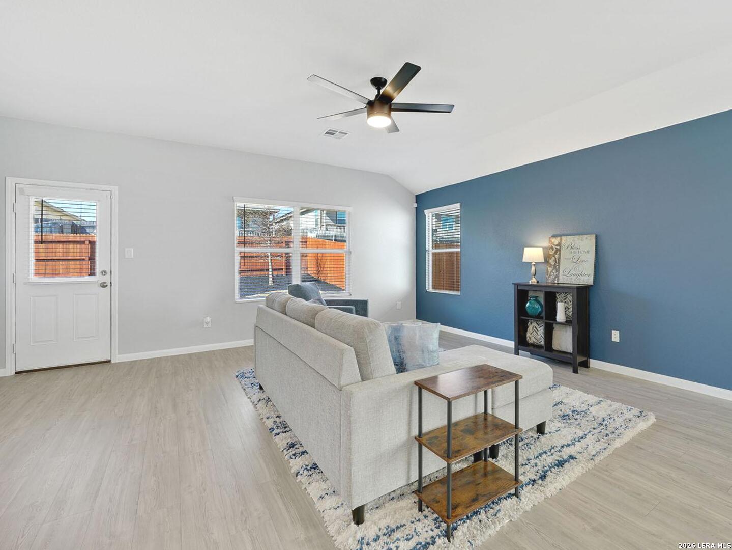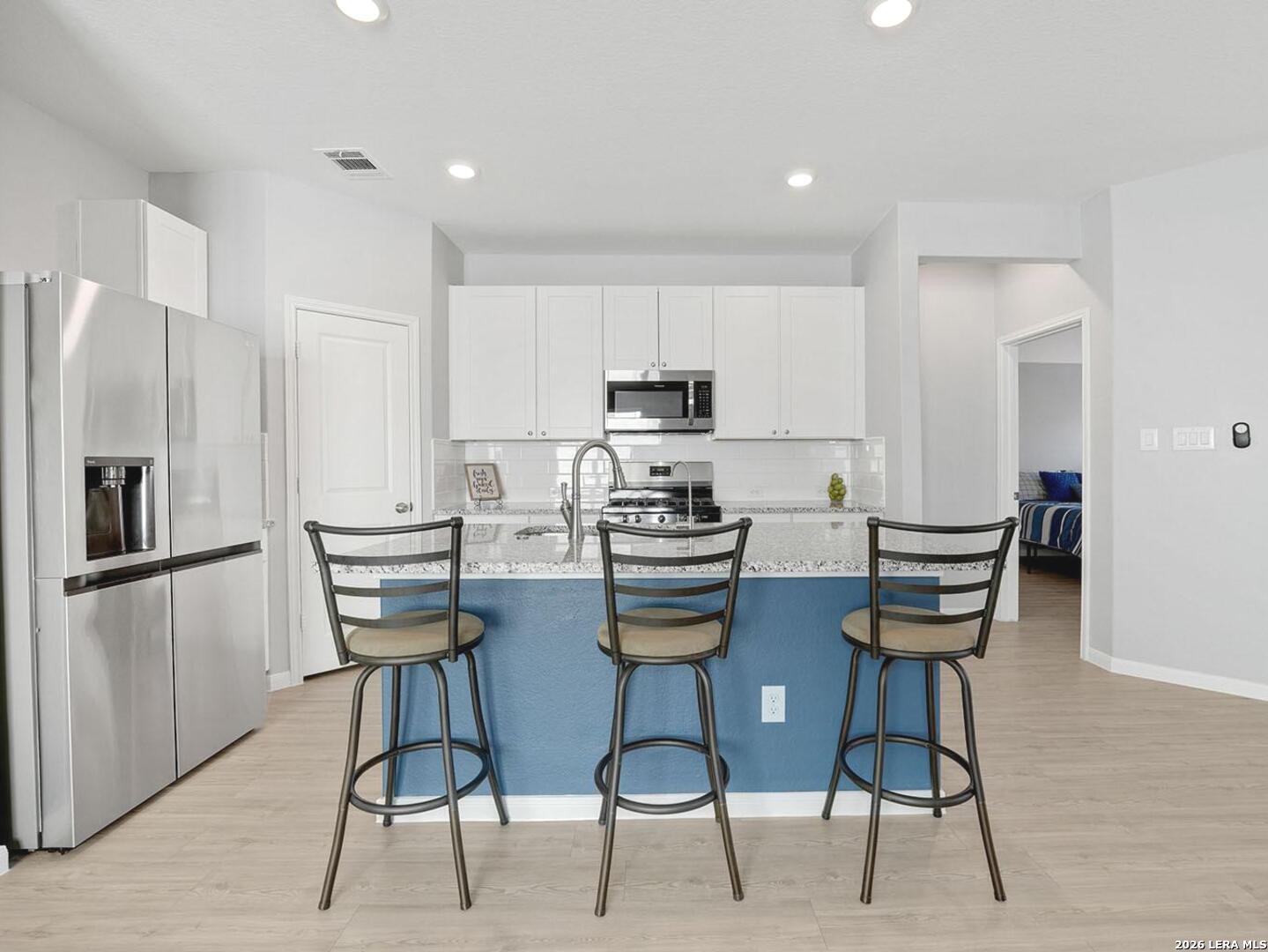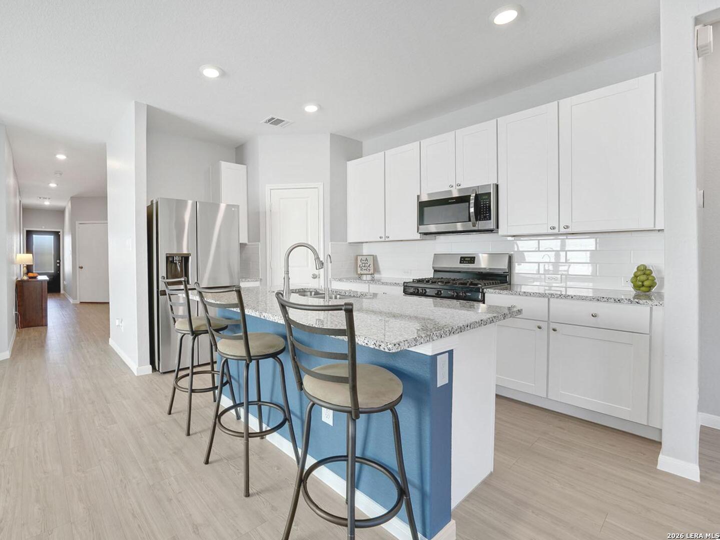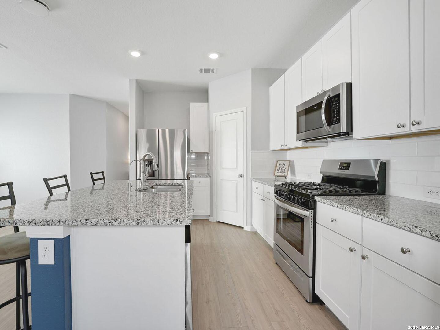 Open House Sun. April 12th, 1-4pm. Located in Silos, where the resort-style recreation center and year-round events foster connection and community. High ceilings and luxury vinyl plank flooring flow throughout. White cabinetry, and solid counters in baths and kitchen plus gas cooking, and stainless appliances. Air and water quality upgrades plus security features enhance comfort and peace of mind. Refrigerator, washer, & dryer convey. The home has three generously sized bedrooms plus a dedicated office with double doors located off the central foyer. The home has a spacious, open floor plan with the kitchen located at the heart of the home, with the kitchen sink anchored in a large breakfast bar looking out to the great room dining and living spaces. Nestled at the back of the home, the private primary suite offers peaceful views of the backyard and a spa-style bath with extended dual vanity, private water closet, oversized tiled walk-in shower, and a 9x15' walk-in closet. The secondary bathroom includes solid surface counters, white cabinets and tub/shower with ceramic tile surround. Designed with comfort and well-being in mind, the home includes a smart thermostat for energy efficiency, exterior security cameras, smart entry lock, Ring doorbell camera, RainSoft water softener with reverse osmosis, whole-house air purification system, laundry oxygenation system, and a tankless gas water heater-enhancing air quality, water quality, and efficiency from day one. Residents of Silos enjoy the Farmhouse amenity center, with a resort-style pool, partially-covered playground, 24-hour fitness center, and gathering spaces that host year-round events and social activities coordinated by on-site community managers-creating opportunities to connect, stay active, and enjoy a vibrant neighborhood lifestyle. Don't wait ~ Schedule your private tour today. ~ Qualified buyers may have access to special conventional financing options that can help reduce upfront costs. Buyer to verify with lender.
