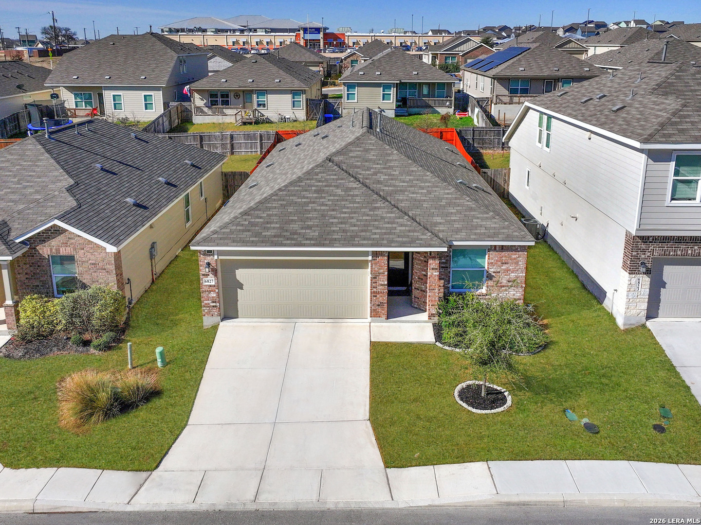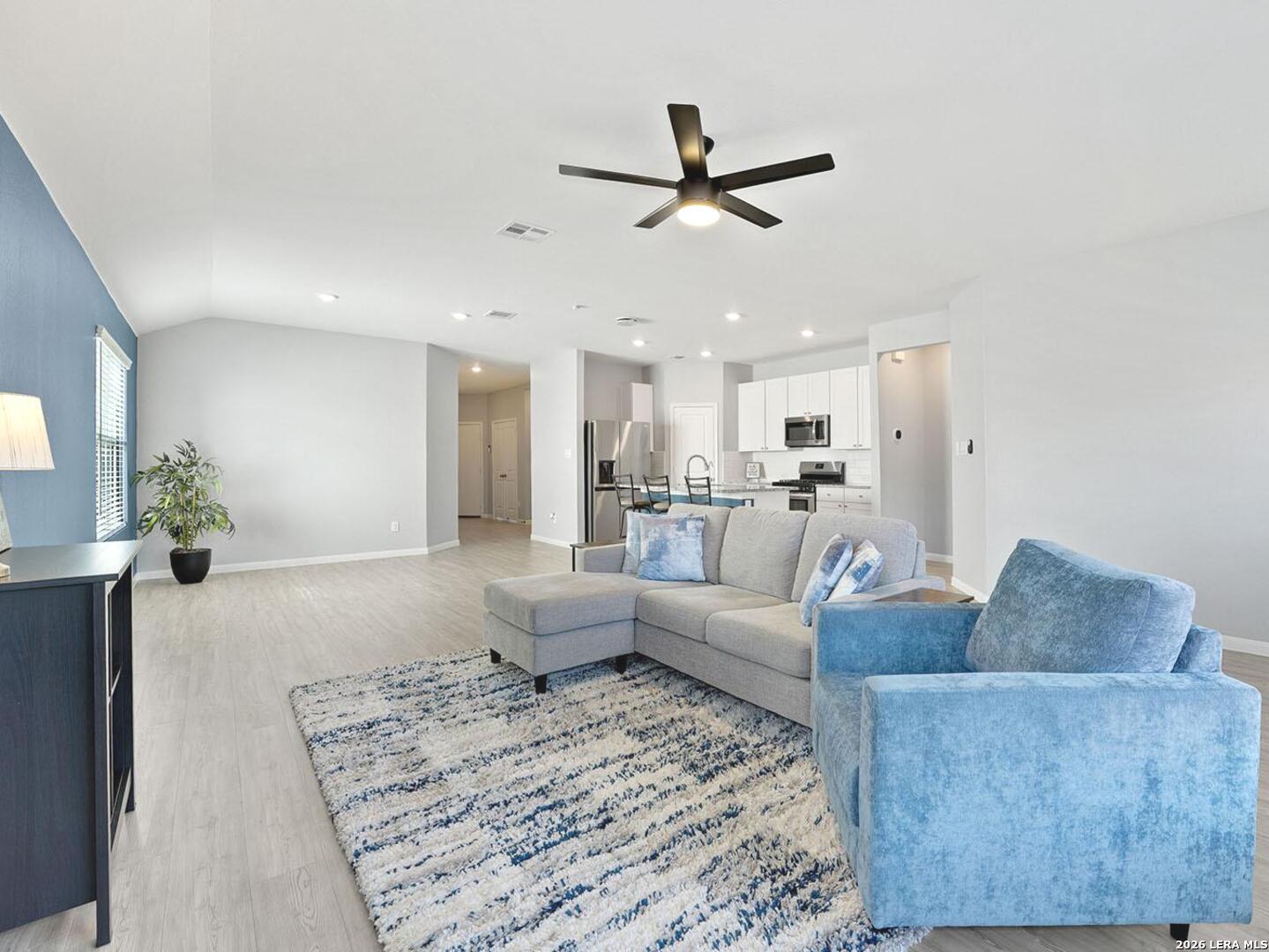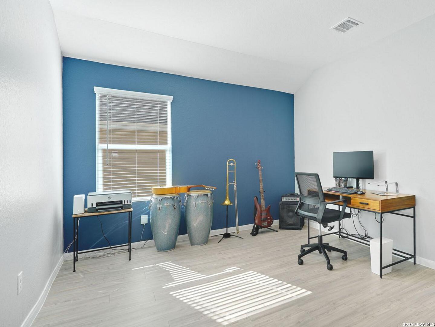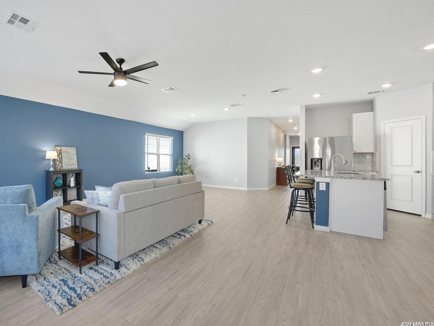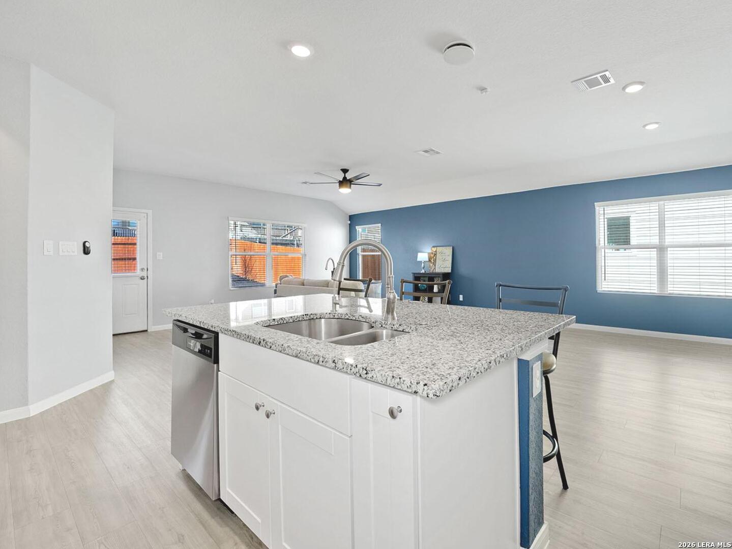 Open House Sun. April 12th, 1-4pm. Located in Silos, where the resort-style recreation center and year-round events foster connection and community. High ceilings and luxury vinyl plank flooring flow throughout. White cabinetry, and solid counters in baths and kitchen plus gas cooking, and stainless appliances. Air and water quality upgrades plus security features enhance comfort and peace of mind. Refrigerator, washer, & dryer convey. The home has three generously sized bedrooms plus a dedicated office with double doors located off the central foyer. The home has a spacious, open floor plan with the kitchen located at the heart of the home, with the kitchen sink anchored in a large breakfast bar looking out to the great room dining and living spaces. Nestled at the back of the home, the private primary suite offers peaceful views of the backyard and a spa-style bath with extended dual vanity, private water closet, oversized tiled walk-in shower, and a 9x15' walk-in closet. The secondary bathroom includes solid surface counters, white cabinets and tub/shower with ceramic tile surround. Designed with comfort and well-being in mind, the home includes a smart thermostat for energy efficiency, exterior security cameras, smart entry lock, Ring doorbell camera, RainSoft water softener with reverse osmosis, whole-house air purification system, laundry oxygenation system, and a tankless gas water heater-enhancing air quality, water quality, and efficiency from day one. Residents of Silos enjoy the Farmhouse amenity center, with a resort-style pool, partially-covered playground, 24-hour fitness center, and gathering spaces that host year-round events and social activities coordinated by on-site community managers-creating opportunities to connect, stay active, and enjoy a vibrant neighborhood lifestyle. Don't wait ~ Schedule your private tour today. ~ Qualified buyers may have access to special conventional financing options that can help reduce upfront costs. Buyer to verify with lender.