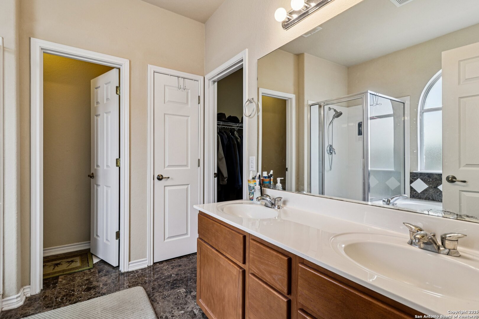 Discover timeless comfort in this spacious 2-story home nestled in the heart of New Braunfels. Offering 5 bedrooms, 3.5 bathrooms, and 3,200 square feet of thoughtfully arranged living space, this residence is perfect for those who appreciate a more traditional layout. Step inside to find a warm and inviting living room ideal for relaxing or hosting guests. The separate dining room and kitchen provide distinct spaces for cooking and entertaining, creating a cozy and functional flow without the open-concept feel. The kitchen features ample cabinet storage, countertop space, and a breakfast area for casual meals. The generously sized primary suite is located on the main floor, complete with a private en-suite bathroom and walk-in closet. Upstairs, you'll find four additional bedrooms and two full baths-perfect for a growing household or guests. A powder room downstairs adds convenience for visitors. Situated on a sizable lot, the backyard offers endless potential for a garden, playscape, or outdoor retreat. Located just minutes from shopping, and major roadways, this home offers the perfect blend of space, comfort, and location. Schedule your tour today and see the possibilities for yourself!