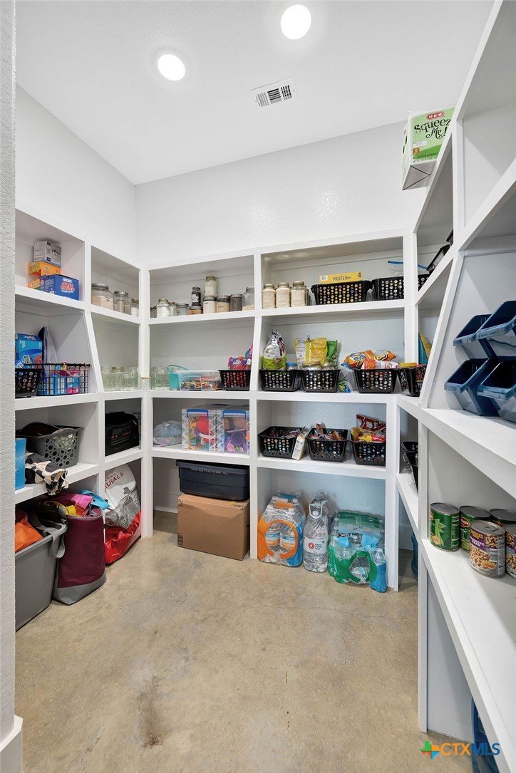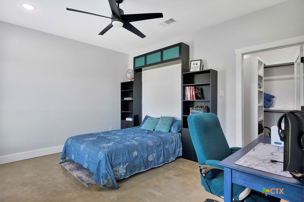 In Salado ISD, this home welcomes you to country living. Starting with a MASSIVE garage, you can easily fit 4+ cars. The garage includes a 1,000 gallon water storage tank, an owned and well maintained water softener and an an additional oversized garage door for toys. There's an RV hookup on that side of the home. Outside you'll find a privacy gate, a 30+ gallon/minute well pump and a blank canvas on this one acre lot to do almost anything you like. The home was built with watching the sunrise on the patio in mind. The kitchen is an open concept with stunning charcoal granite, plenty of room for dancing, updated lighting, a very large walk in pantry and all stainless steel appliances. Every window sill is deep because the metal framing of the home is THICK. There are plugs in the living room floor for different furniture arrangements. Separated from the other rooms you'll find a guest room to use for many purposes. The Murphy bed in the guest room can be removed per buyer's request. Every room has lots of plugs, ceiling fans and large walk in custom closets. In addition to your walk in pantry you'll find an interior storm shelter with all concrete walls and ceiling around. In the master suite with a custom build in bookcase, you'll find an oasis of a bathroom with a luxurious clawfoot tub, private vented toilet room, a walk in shower and double vanity. Both bathrooms have heaters. There is additional storage space in the attic, beautifully polished and sealed concrete floors throughout that are easy to clean and low allergenic. Each wet area has custom backsplash. BONUS There's a 1% lender credit available.