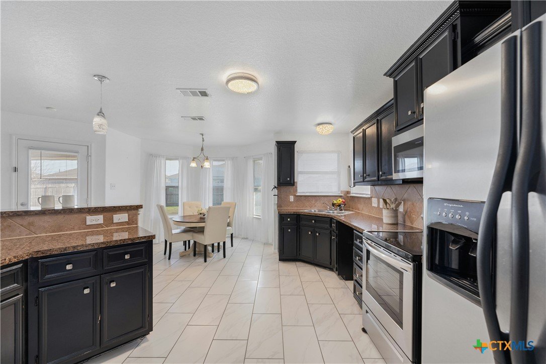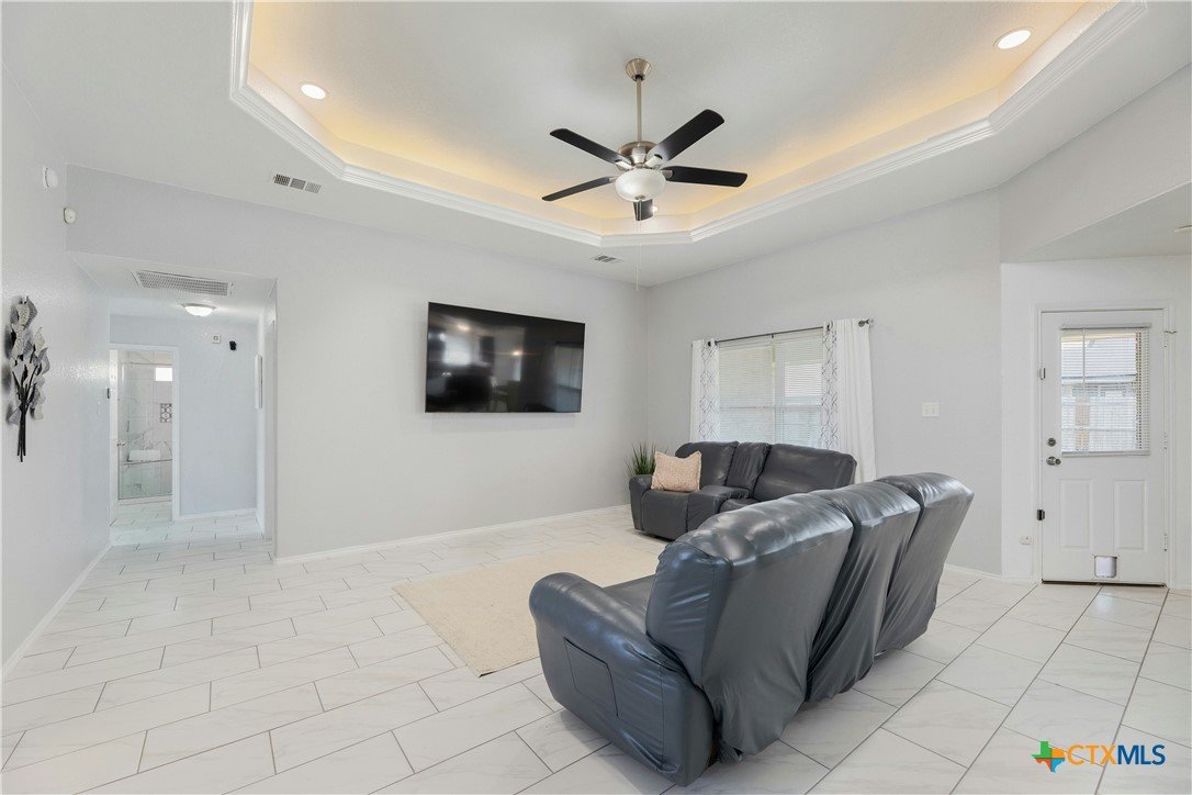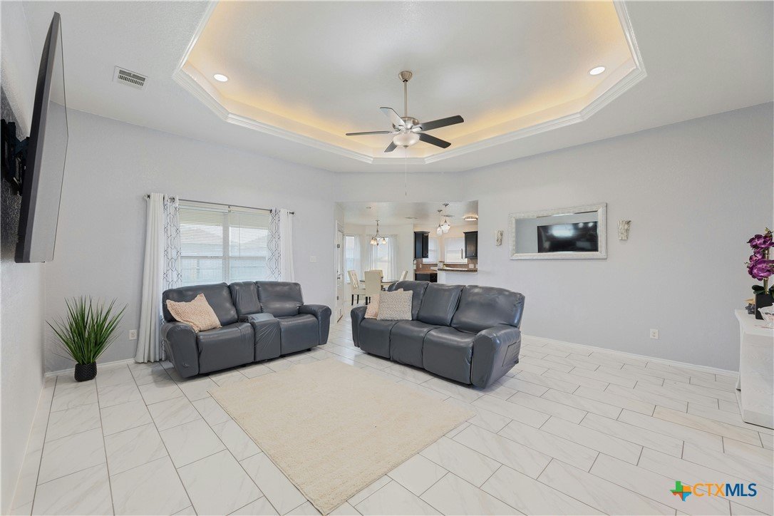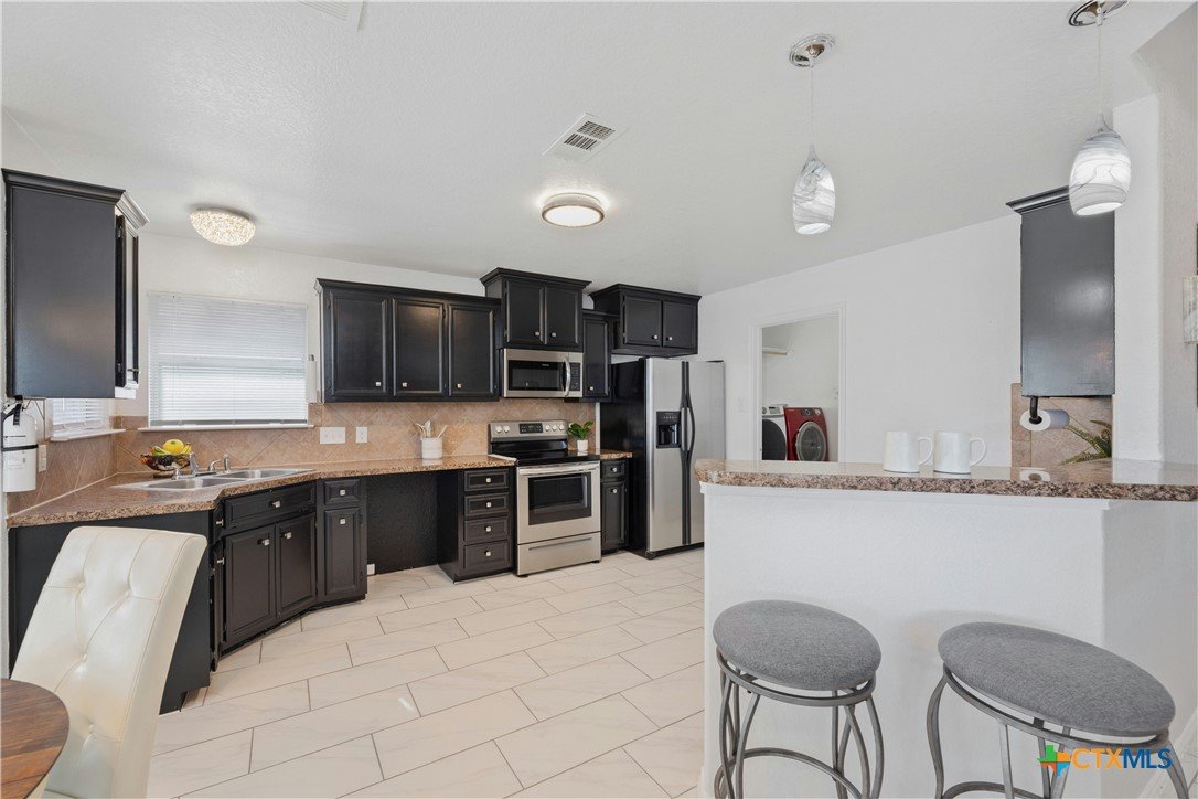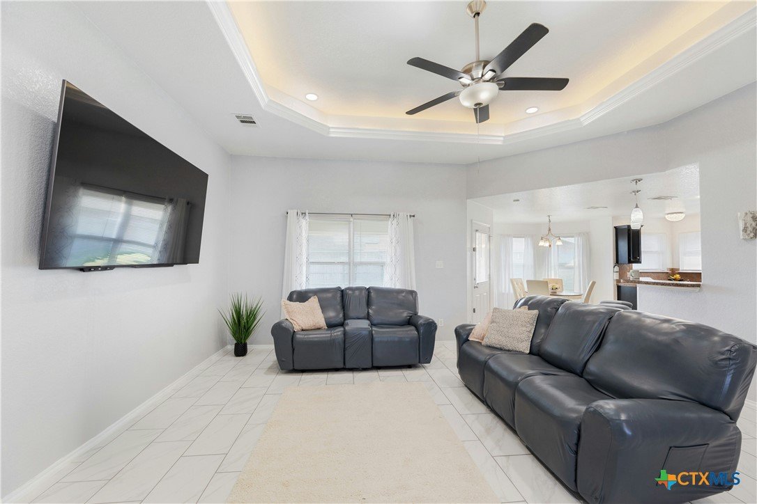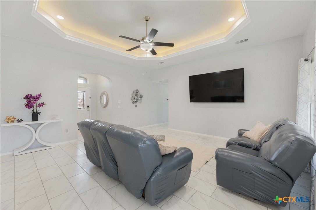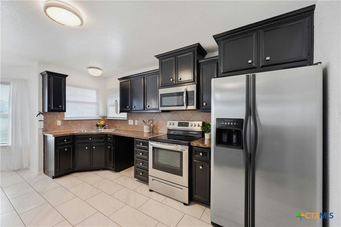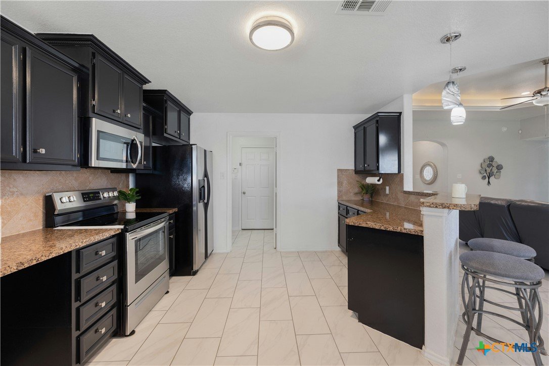 4.75% FHA assumable loan. Many Updates including HVAC/AC with Echo Bee wifi control 12/2024 , Gutters 5/2023, Roof 5/2024, Back Door 3/2025 , Interior Paint 2/2025, Main Bath with walk-in Tile Shower with Seat 1/2024 , Microwave & Stove 1/2024, Lighting fixtures in Living room 10/22, Pendant Lights over the Breakfast Bar 10/2022, Kitchen and Entry boast beautiful Crystal Lighting 10/2022, Ceiling fans in all 3 bedrooms 10/2022, and Ring door Bell 10/2022, front yard Zoysia Sod 7/2023, Sprinkler Control Box with wifi control 9/2022. Primary suite is a true retreat, featuring a double vanity, 2 spacious walk-in closets, and a separate shower and bathtub for added luxury. A designated laundry room adds extra convenience. Step outside to enjoy the covered back porch and spacious backyard, perfect for relaxing or hosting gatherings. Two-Car Garage with space for Storage. Located in a prime area with easy access to restaurants, shopping, Fort Hood, and IH 195. This home is a must-see!