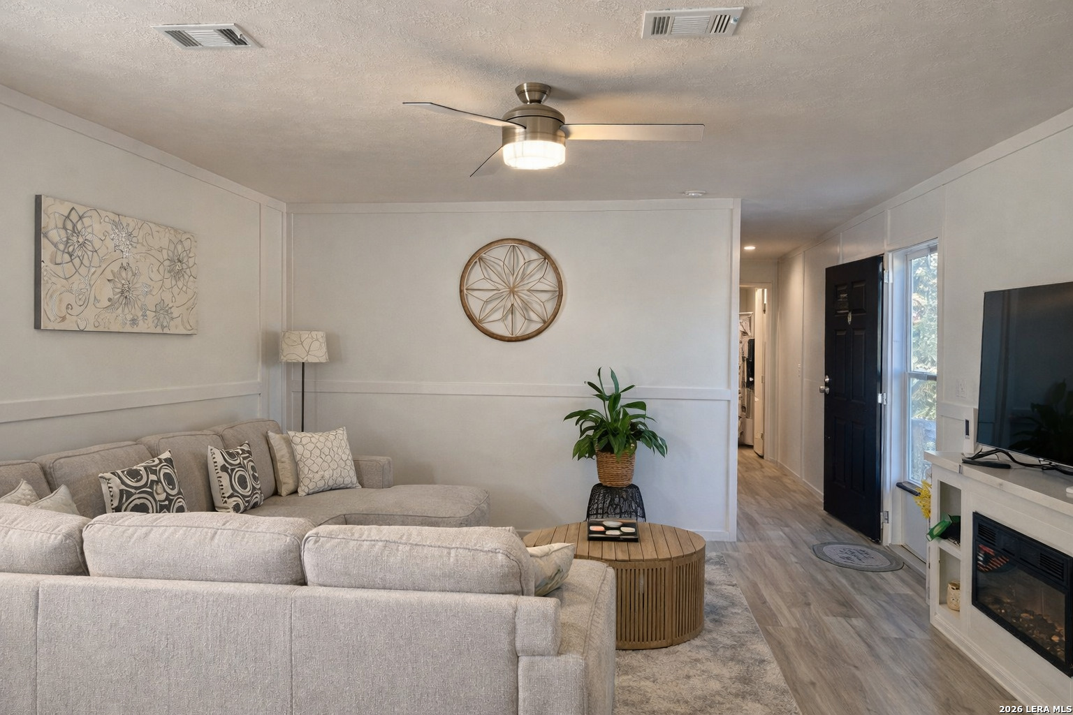 Welcome to 691 PR 1510, a beautifully maintained 2023 Cavco manufactured home located in the sought-after Holiday Villages community on the outskirts of Bandera. This fully furnished 3-bedroom, 2-bath home is ideal as a weekend getaway or full-time residence, offering a peaceful escape from the hustle and bustle of city life. The open-concept floor plan flows seamlessly into a contemporary kitchen and dining area, perfect for everyday living and entertaining, and features modern finishes such as soft-touch light switches, recessed lighting, and ceiling fans in all bedrooms. The private primary suite is thoughtfully positioned on the opposite side of the home from the secondary bedrooms and includes a full bath for added comfort and privacy. Step outside to the secluded front patio and enjoy quiet Hill Country living with beautiful Texas sunsets. Neighborhood amenities include a guarded entrance, pool, clubhouse with monthly activities, BBQ areas, RV park, and more-providing resort-style living in a serene Hill Country setting.