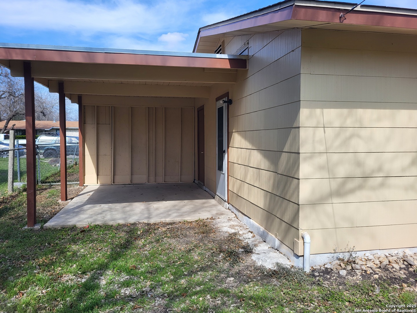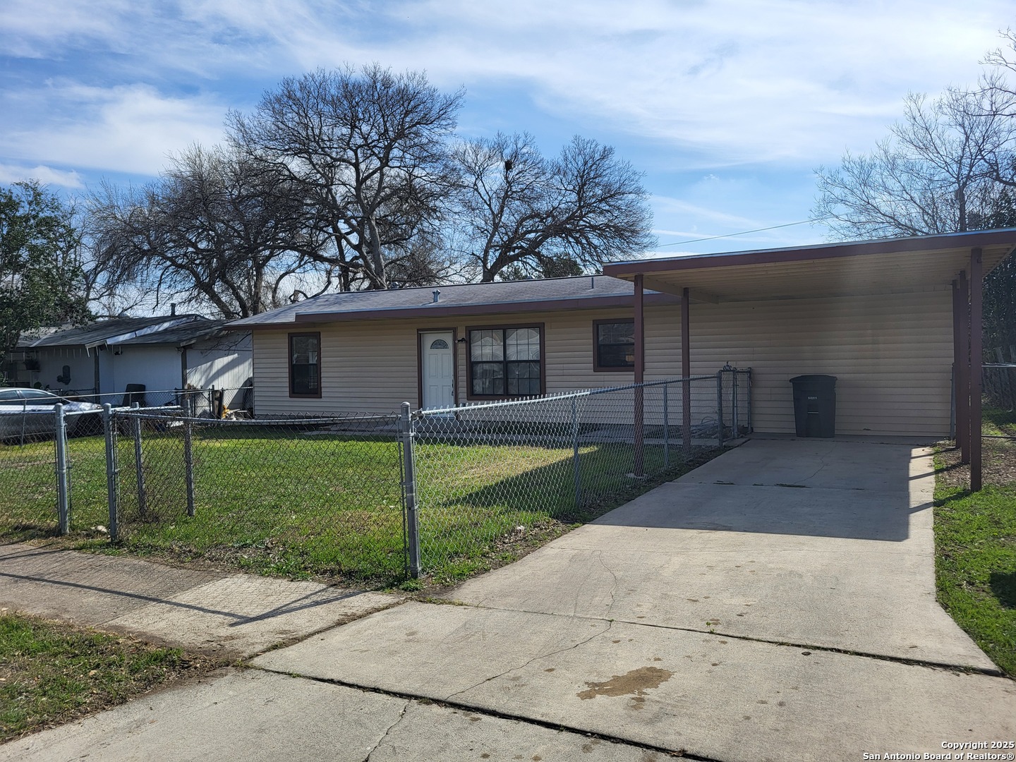 Great Starter Home in Established Neighborhood. This wonderful home is perfect for families Looking for a starter home at an affordable price. This home features 3 bedrooms, 1 full bath, open floorplan. 1 Living area and 1 Large dining area. Walk in Shower, New Cabinets, Quartz counter tops in bathroom and kitchen, New Central A/C! Roof less than 10 yrs old! Spacious backyard ideal for family BBQ's, extra space, covered patio. The large yard included a build in shed . Close to the main gate at Lackland AFB, shopping and Hwy.