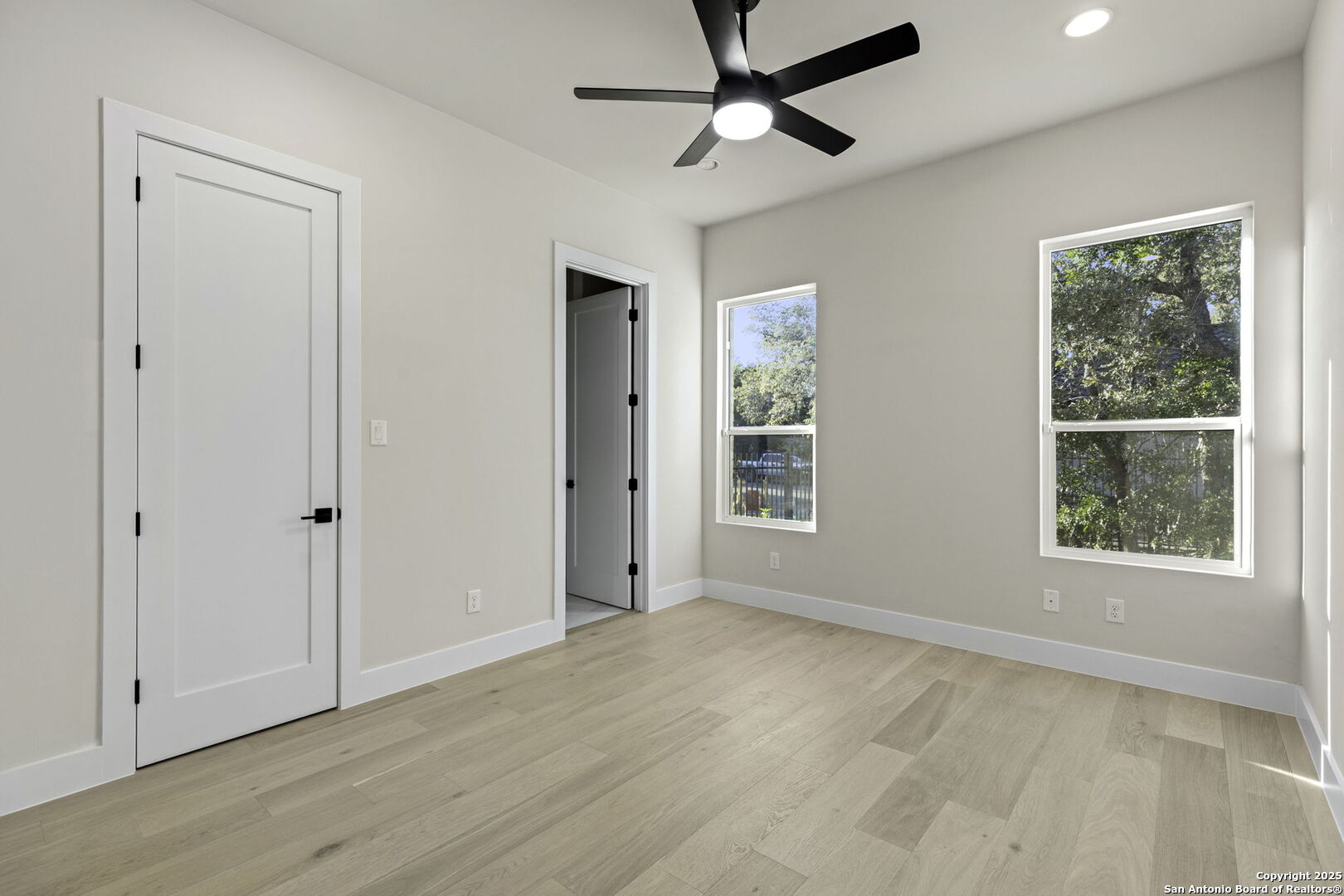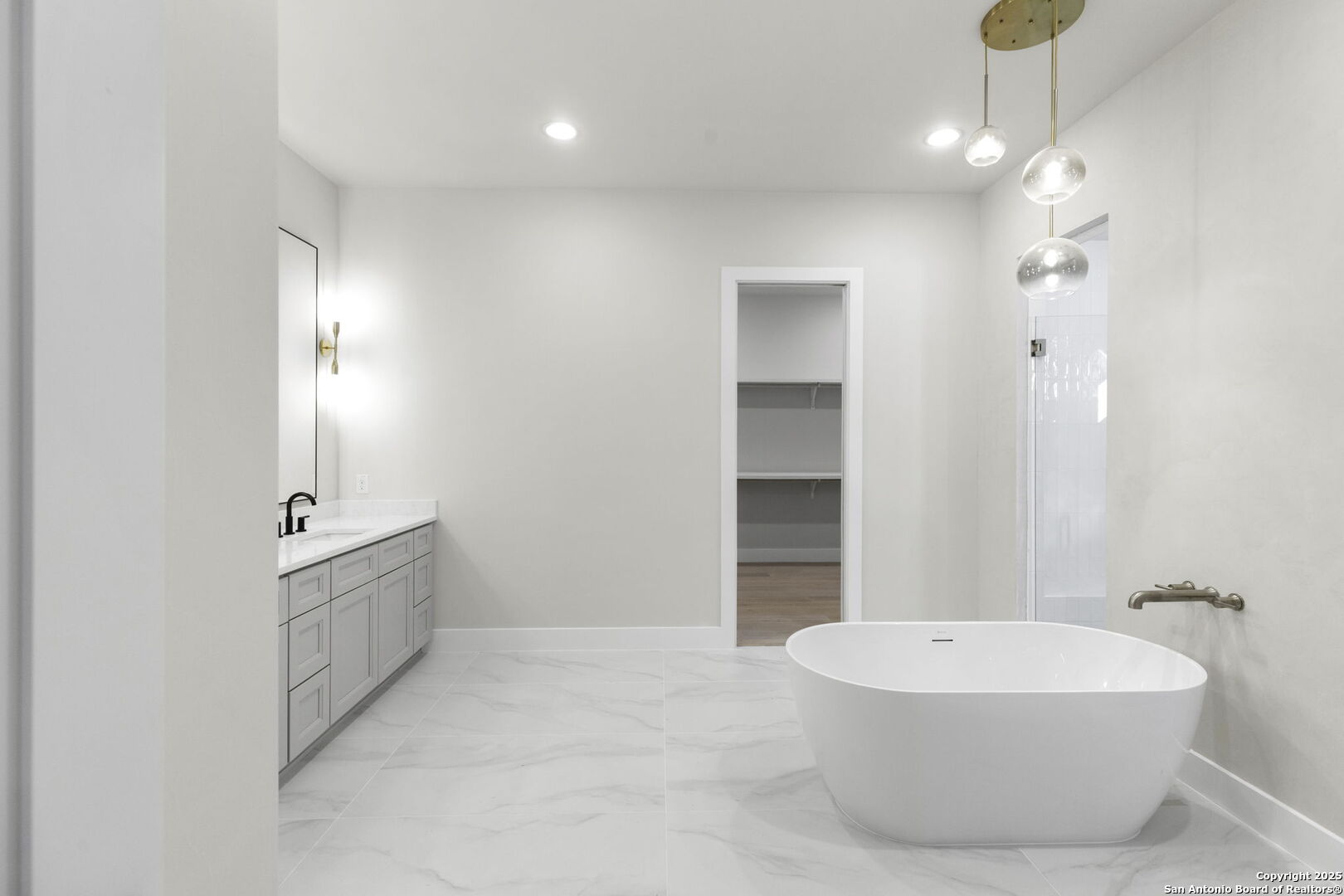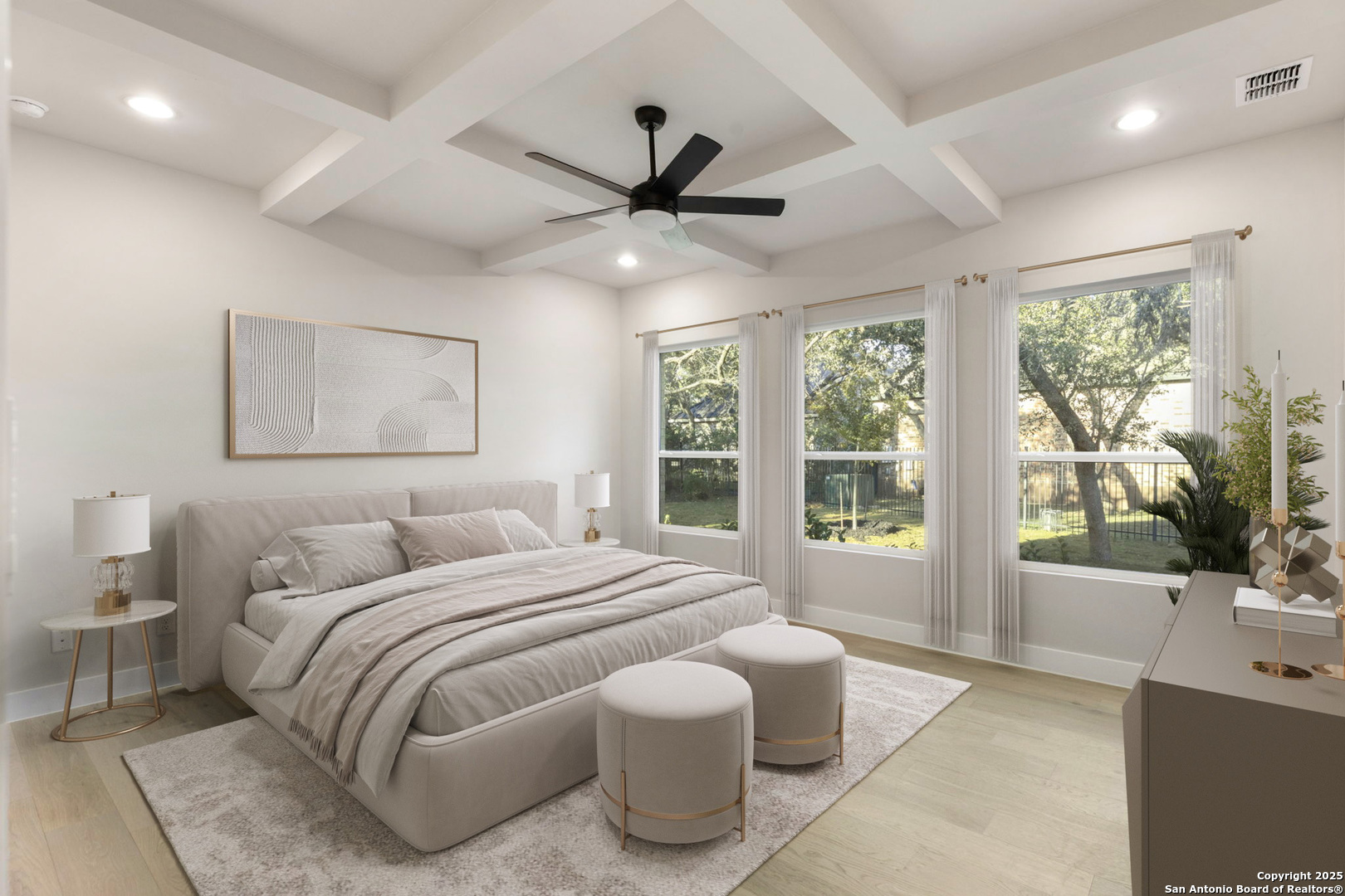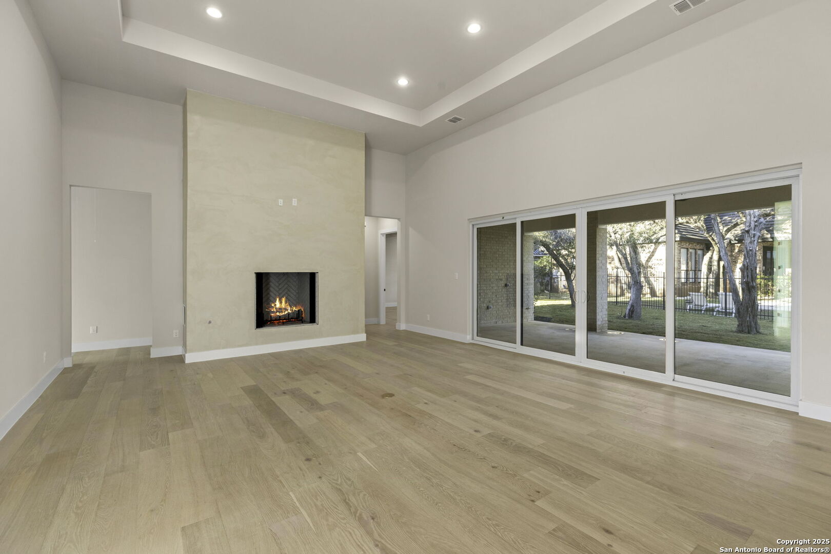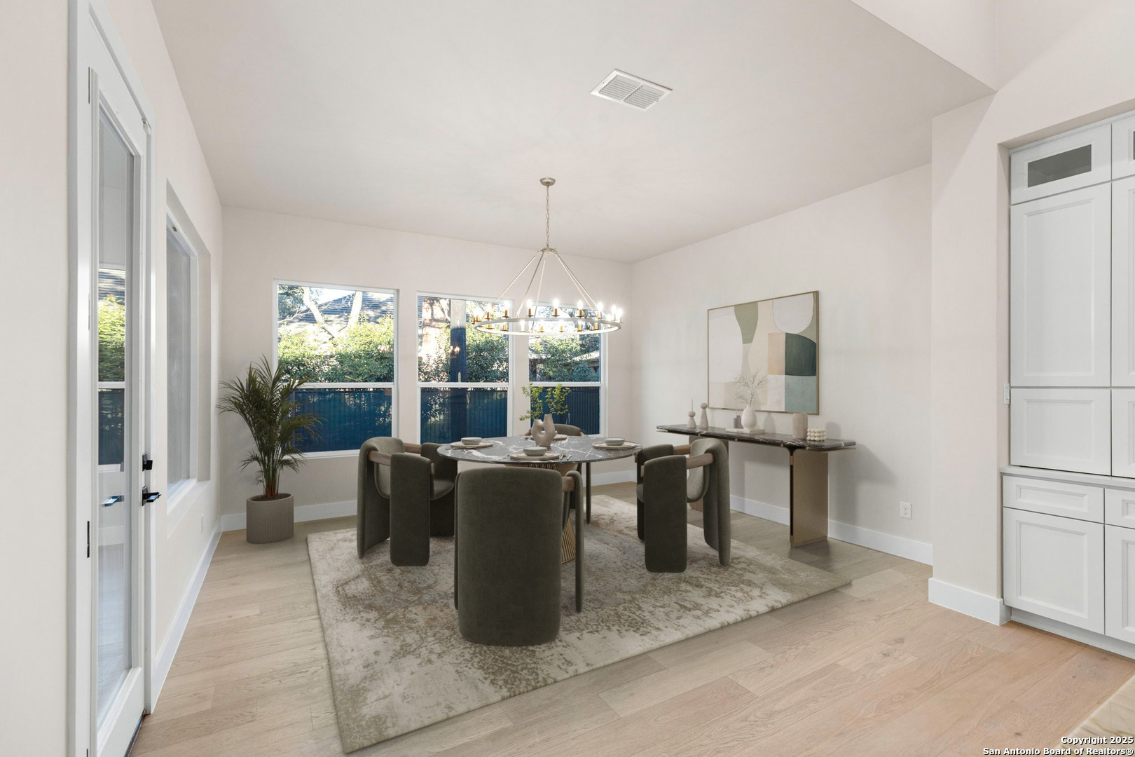 Nestled within the prestigious, guard-gated Dominion community, this exceptional single-story residence offers refined living with timeless elegance. Spanning 3,030 square feet, the home features 3 bedrooms and 3 full baths, including an extra versatile secondary bedroom ideal for a private office or study. Rich wood flooring, solid-core wood doors, and soaring ceilings create a sophisticated yet inviting atmosphere throughout. The expansive living spaces are anchored by a fireplace and complemented by a well-appointed kitchen with double ovens, custom cabinets, large island and a wet bar with sink-perfect for upscale entertaining. Outdoors you have an oversized back patio with a gas hook up and plenty of room to create the perfect outdoor living space. Tucked away on a quiet cul-de-sac, you will love the minute golf cart ride to the Dominion Golf Course. Residents of The Dominion enjoy world-class amenities including a guarded entrance, private clubhouse, on-site restaurant, and championship golf course, offering an unparalleled luxury lifestyle in one of San Antonio's most exclusive neighborhoods.