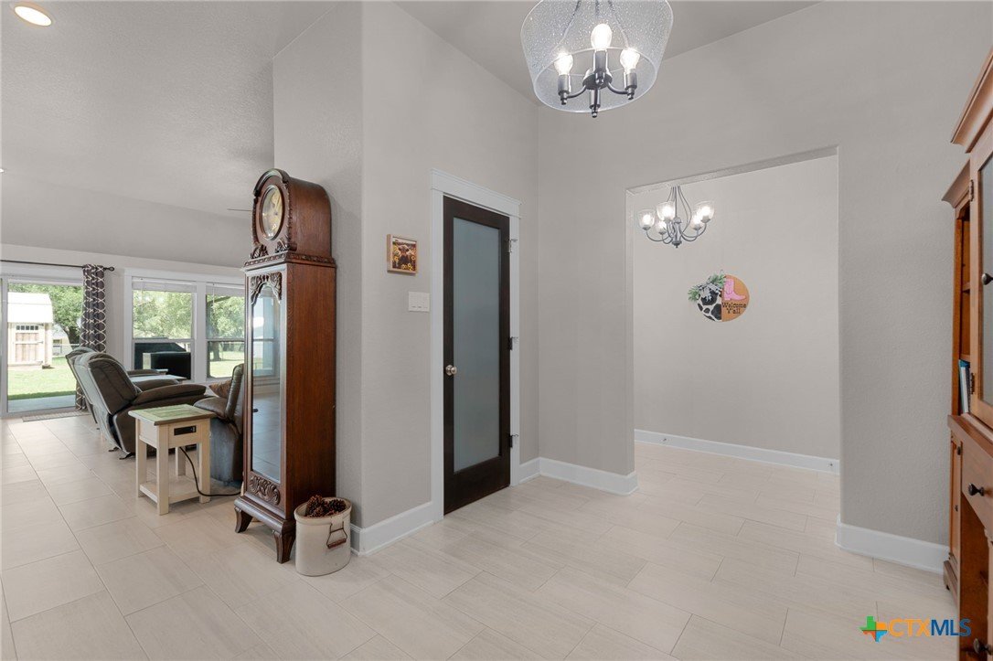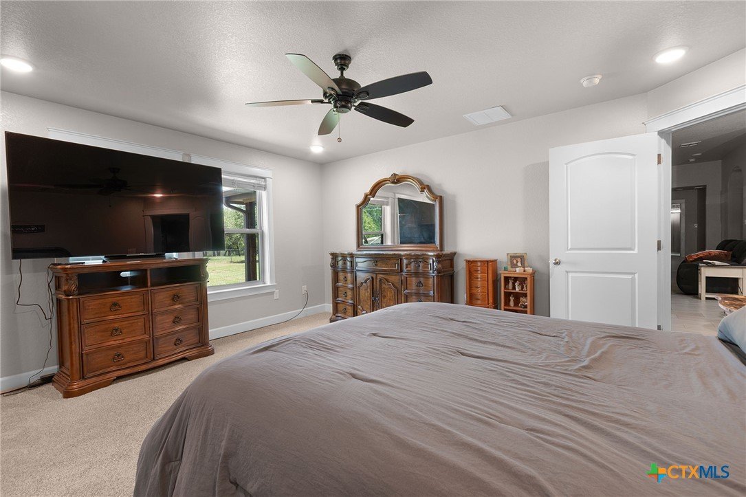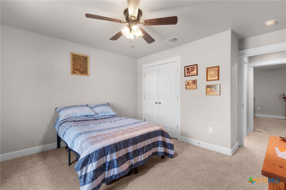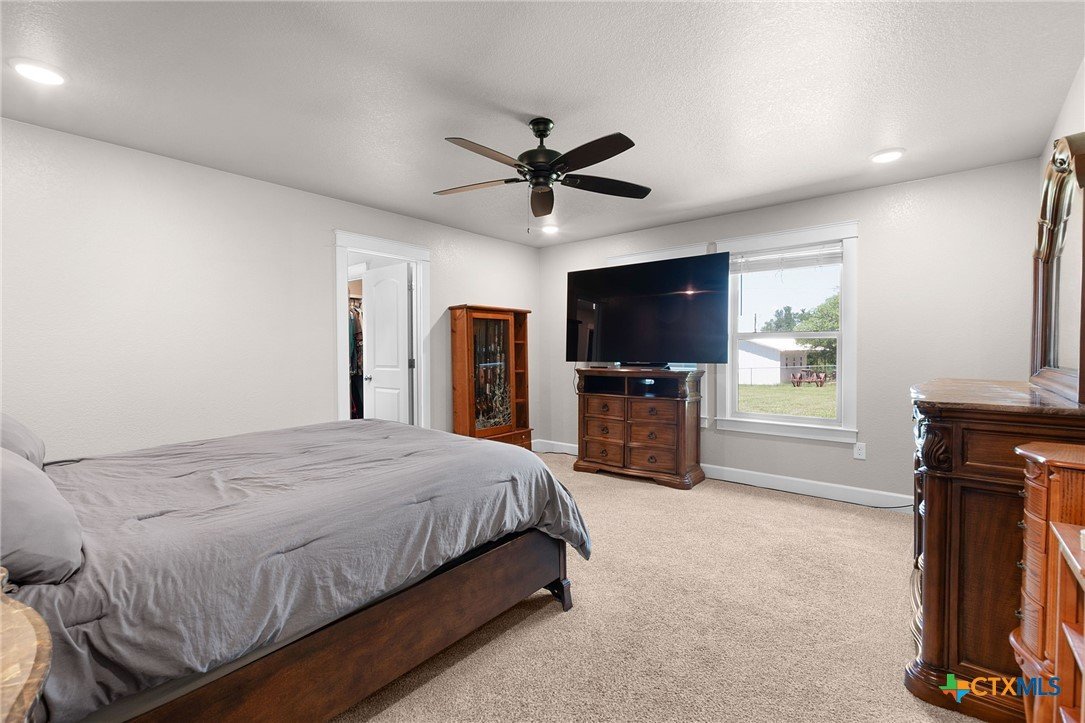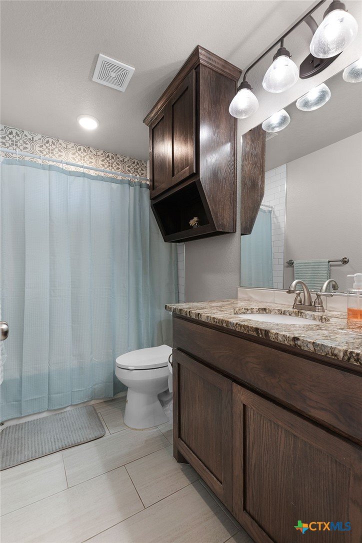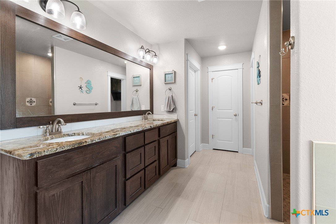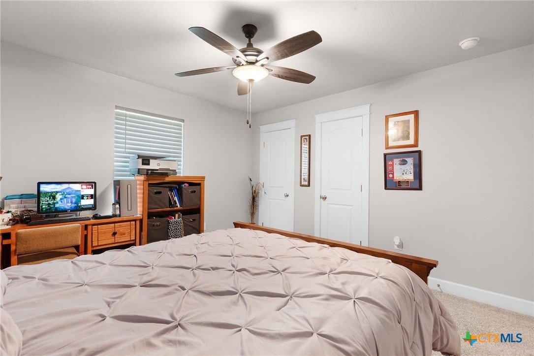 Built in 2020 by Atkinson-Wilson Homes, this well-crafted home in Lampasas sits on a spacious half-acre lot. The brick exterior with rock accents and composition roof offers timeless curb appeal, while the fully fenced backyard includes two storage buildings for added functionality. A 2-car garage completes the exterior. Inside, the 2,071 sq ft layout features 3 bedrooms and 2 bathrooms with an open-concept living, dining, and kitchen area plus a breakfast room. The living room features a cozy fireplace, and tile flooring runs throughout the main areas, with carpet in the bedrooms. The kitchen includes granite countertops and flows seamlessly into the main living space. The primary suite offers dual sinks, a soaking tub, separate walk-in shower, and a walk-in closet. The secondary bath includes a tub with tile surround. A utility room with sink adds convenience to this move-in ready home.