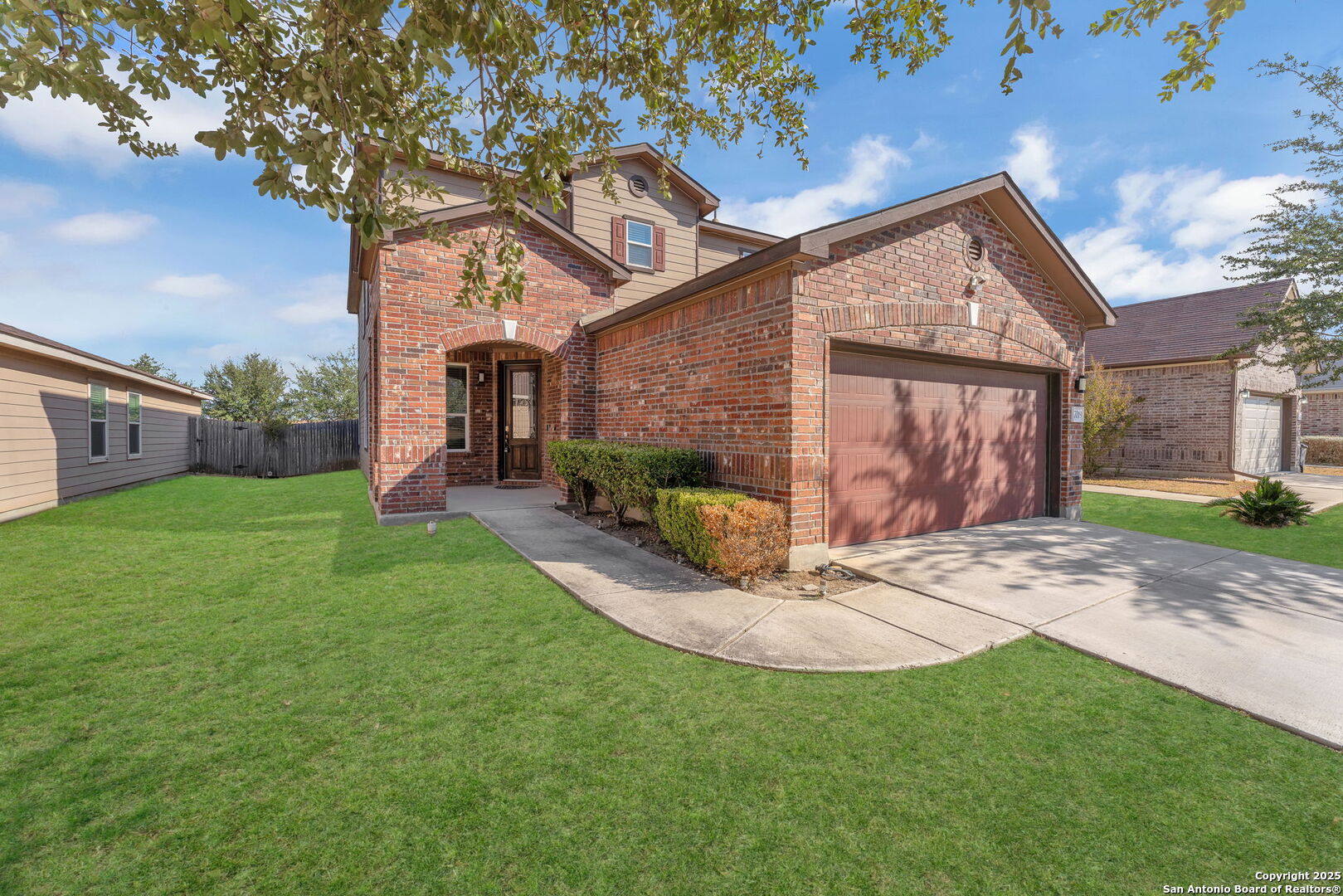 Beautifully Maintained Two-Story Home in Carmona Hills! Welcome to this stunning home, ideally located near Loop 410, Lackland Air Force Base, and an abundance of shopping and dining options. The open-concept main level showcases wood-look laminate flooring, abundant natural light, and a flexible layout that includes a private study and a convenient secondary bedroom. The gorgeous island kitchen features quartz countertops, recessed lighting, black appliances, and overlooks the spacious family room, perfect for entertaining or everyday living. Upstairs, enjoy a generous game room, two comfortable secondary bedrooms, and an oversized primary suite complete with a full bath and a large walk-in closet. Step outside to a covered patio, full privacy fence, and a spacious backyard, ideal for relaxing or creating your own outdoor retreat. This move-in-ready home blends modern comfort, thoughtful design, and a prime location. A true must-see!