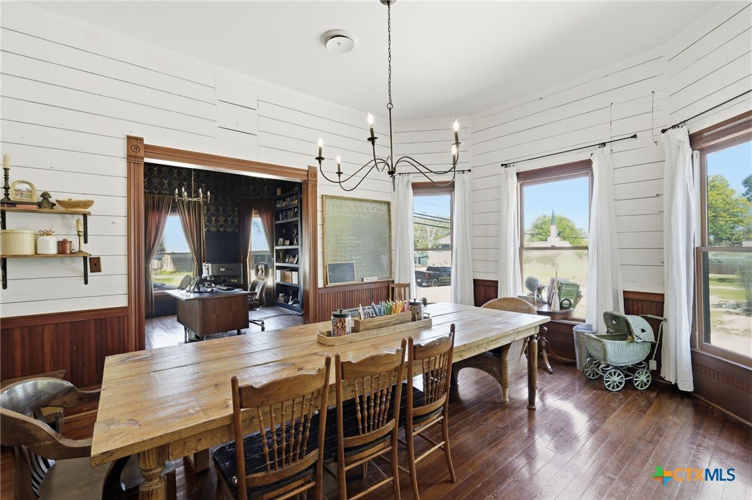 Step into timeless character with this historic gem, originally believed to have been built in 1905, with a thoughtfully designed addition from the 1970s. Rich in Craftsman and Victorian influences, this one-of-a-kind home showcases beautiful architectural details throughout, including built-in bookshelves, hidden storage spaces, tall ceilings, and a stunning wraparound front porch. Offering 3,460 square feet of living space, the home features 4 spacious bedrooms and 2 bathrooms, with a functional and inviting floor plan designed for both everyday living and entertaining. The family room boasts striking beamed ceilings, while the wood-burning fireplace adds warmth and charm. The kitchen blends vintage appeal with modern functionality, featuring a double-sided apron sink, walk-in pantry, and dedicated drink station. Period-style updates and carefully chosen colors preserve the home’s historic integrity, complemented by wood and tile flooring throughout. A classic clawfoot tub enhances the timeless appeal. Situated on an expansive 0.4993-acre lot, the property offers a huge yard complete with a playhouse, chicken coop, and Garden area—perfect for those seeking both character and versatility. Ideally located near Caldwell Square, this rare property combines historic charm, unique features, and generous space in a highly desirable setting.