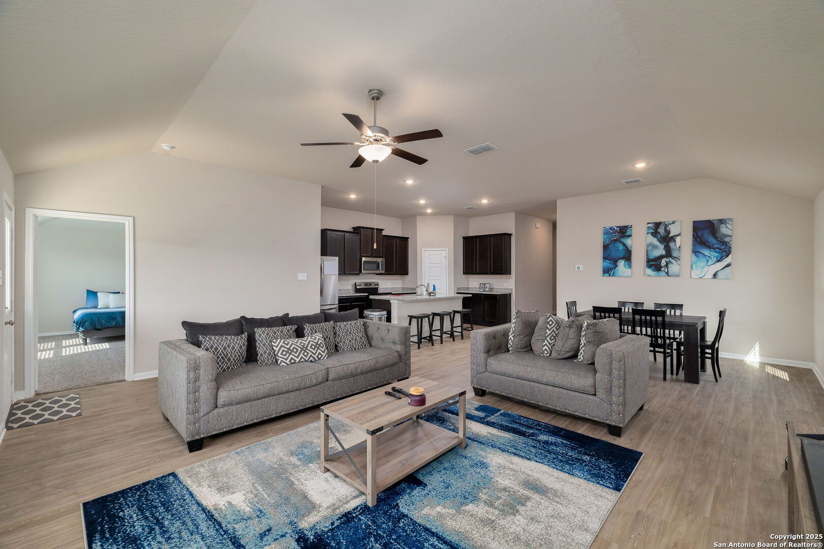 **MOTIVATED SELLER - PRICED TO SELL FAST!- FHA ASSUMABLE LOAN 5.25% Rate** This stunning 3-bedroom, 2-bathroom residence sits on a premium oversized corner lot with complete privacy-no back neighbors to worry about. Step inside to find a thoughtfully designed layout featuring two comfortable bedrooms and a versatile flex space perfect for a home office, fitness room, media center, or game room-the choice is yours! Entertainment Ready-The heart of the home showcases an open-concept living area with soaring high ceilings and abundant natural light, creating the perfect atmosphere for gatherings and everyday living. Chef's Paradise-The well-appointed kitchen is a true showstopper, featuring: - Expansive island for cooking and casual dining - Abundant cabinet storage throughout - Premium appliances (all included- even the washer and dryer!) Primary Suite Sanctuary-Retreat to your private primary suite boasting: - Spacious bedroom with impressive high ceilings - Elegant bay windows flooding the space with natural light - Luxurious bathroom with soaking tub/shower combination - Convenient double vanity Outdoor Oasis Awaits The massive backyard is your blank canvas! The covered patio provides immediate outdoor living space, while the expansive yard offers endless possibilities for landscaping, entertaining, or recreation. Prime Location Perfectly positioned for convenience: - Close proximity to Lackland AFB, SeaWorld, and Downtown San Antonio - Easy access to major highways: 410, 1604, I-35, and Highway 90 - Quick commute to anywhere in the greater San Antonio area **Don't miss this opportunity! Seller has relocated and ready to make a deal. Schedule your showing today!**