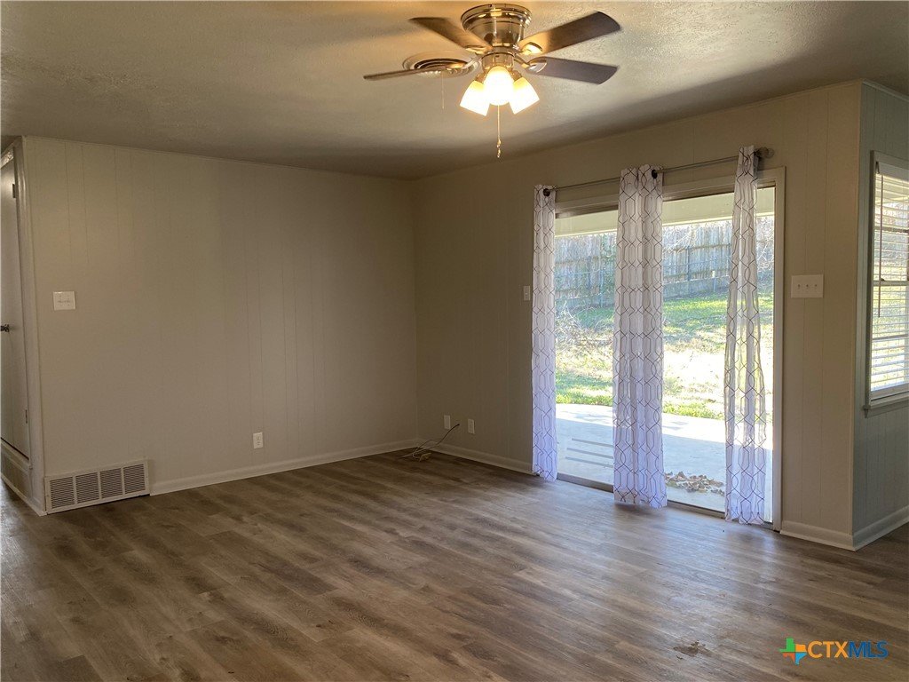 Charming 3 Bedroom, 2 Bathroom Home on a Spacious Fenced Lot Welcome home to this beautifully maintained 3-bedroom, 2-bathroom residence featuring a bright, open layout and modern updates throughout. The living area boasts wood-look flooring and large sliding glass door that fill the space with natural light and opens to a covered patio—perfect for relaxing or entertaining. The kitchen offers ample cabinet storage, vintage charm, and plenty of counter space, including a breakfast bar for casual dining. Enjoy the privacy of a large fenced backyard—ideal for pets, play, or outdoor gatherings. Features: 3 Bedrooms / 2 Bathrooms Spacious living and dining areas Wood-look flooring throughout Kitchen with storage Large fenced backyard Covered patio and sliding glass doors Central heat & air Pricing reflects a 12 month lease.