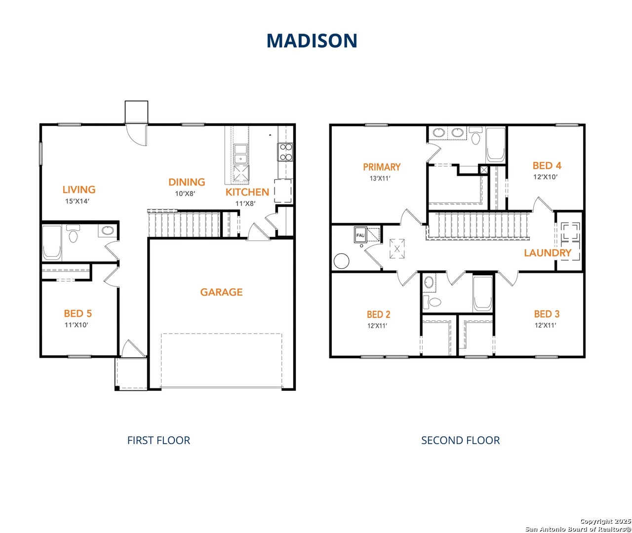 More Space, Less Money! The Madison Floor plan, offers 1804 square fee of exceptional living space. This spacious home includes 5 bedrooms & 3 baths, perfect for growing families or those who love to entertain. The main level features a secondary bedroom with a full bathroom an open floor plan that seamlessly connects the kitchen, dining, and living areas. The kitchen is equipped with stainless steel appliances, including a built-in microwave, & Shaker-style cabinets with 30-inch uppers. Upstairs, you'll find the Primary Suite and 3 more bedrooms. The exterior boasts an open patio and a fully sodded front landscaped lawn. For a list of features & a virtual tour, check the MLS attachments. We are America's Affordable Builder, offering the best value in the area. Schedule your meeting today!