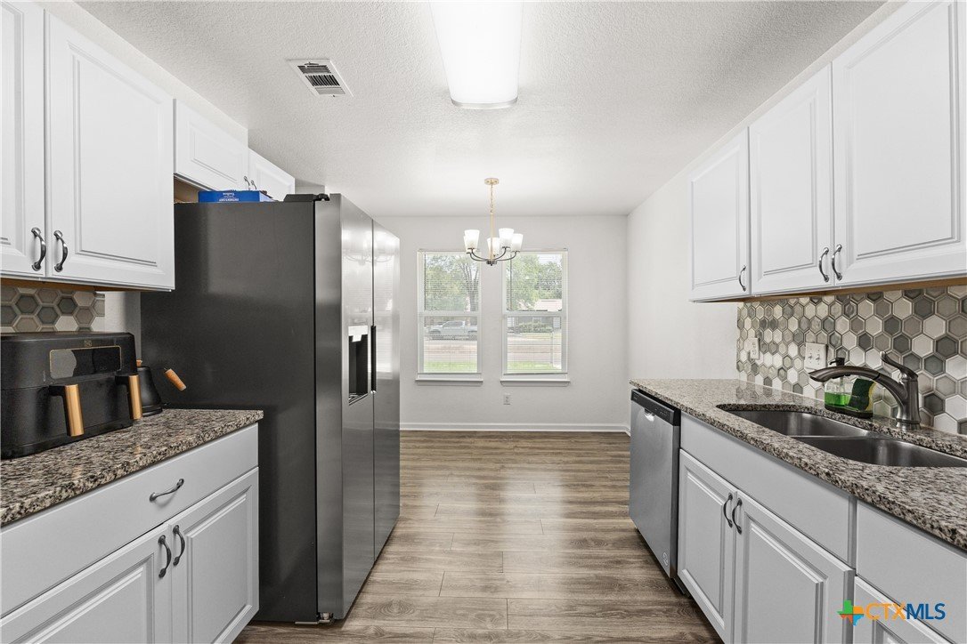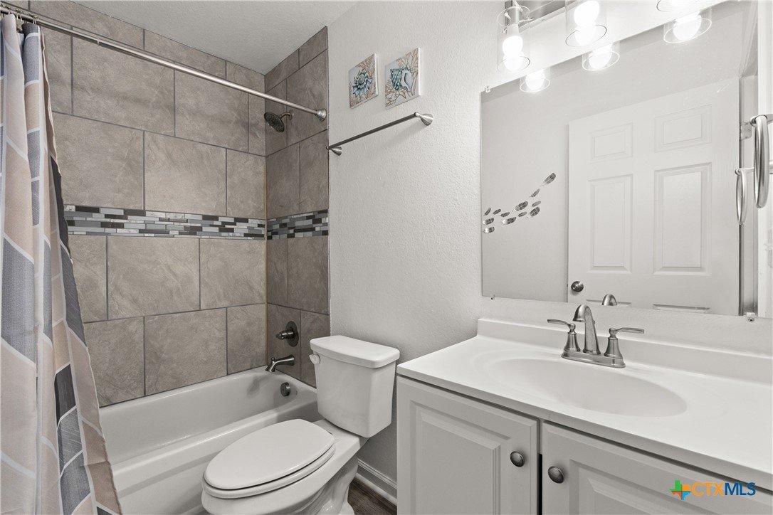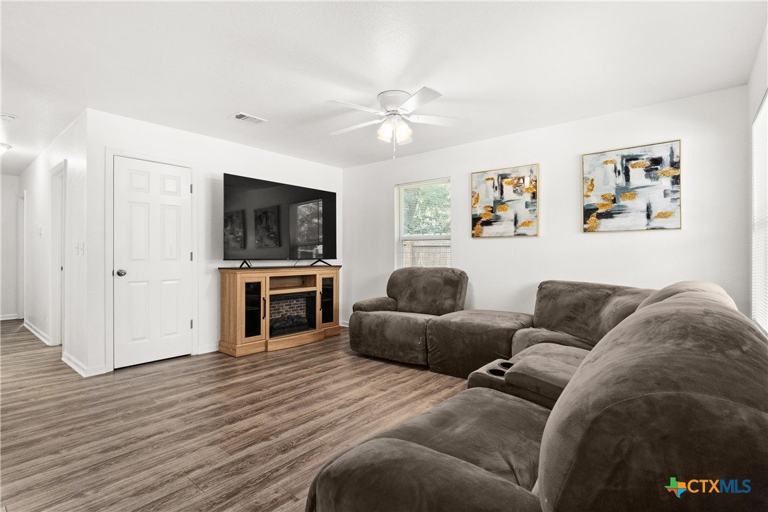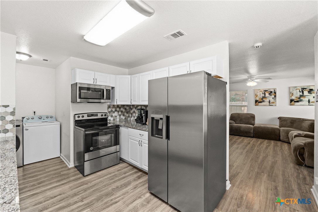 Charming 3 bedroom 2 bath newly built in 2023! Close to Ft Hood, shopping and restaurants. 2 car garage home with laundry room inside! The kitchen has stainless steel appliance package to include the refrigerator! The kitchen is open to the dining room and the laundry area is just off of the kitchen! The windows all have blind coverings! Tiled flooring, backsplash and tub surrounds! The bedrooms boast carpet flooring and ceiling fans with light fixtures! The master bathroom has a double vanity with shower tub combo. New wood fence around back, chainlink around the front!