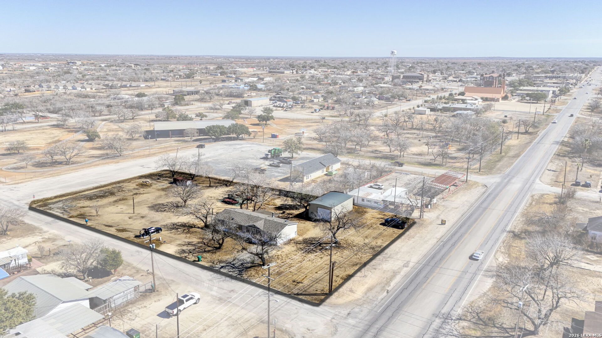 LEGAL DESCRIPTION: LOTS 2,4,6,8,10,12,14,16,18,20, Blk 160 Jourdanton****** OVER 1 AC OF LAND*****Charming 3-Bedroom Manufactured Home on Expansive Corner Lot - A Unique Blend of Residential Comfort and Commercial Potential!** Welcome to your property, where comfort meets opportunity! Nestled on a spacious corner lot that encompasses a whole city block, this delightful 3-bedroom, 2-bath manufactured home . With its inviting open kitchen, expansive back deck, and a sturdy metal workshop, this versatile property is perfect for families, savvy investors, or entrepreneurs looking to capitalize on its commercial potential. - **Spacious Living:** Step inside to discover a warm and welcoming living space that seamlessly flows into the open kitchen. Whether you're whipping up a gourmet meal or hosting family gatherings, this layout fosters togetherness and functionality. - **Relaxation Awaits:** The three generously-sized bedrooms provide ample space for rest and rejuvenation. The master suite features an en-suite bath, offering privacy and convenience for busy mornings. - **Outdoor Oasis:** The expansive back deck invites you to enjoy your morning coffee or evening barbecues while soaking in the serene surroundings. Imagine summer nights spent under the stars, with plenty of room for entertaining friends and family. - **Versatile Workshop:** For those with hobbies or work needs, the included metal workshop with a slab floor is a fantastic addition. Whether you're crafting, repairing, or running a small business, this space is ready to accommodate your passion. - **Commercial Potential:** Located on a whole city block, this property opens doors for commercial possibilities as well. With the right vision, you can transform this space into a small business hub while still enjoying the comforts of home. - **Prime Location:** Situated on a corner lot, this property offers excellent visibility and accessibility, making it an ideal location for both residential living and potential business ventures. - ** Enjoy this neighborhood, with local parks, schools, and amenities just a short drive away. This property is perfect for those who appreciate a close-knit community while still being near urban conveniences. - **Investment Opportunity:** Whether you're looking to make this your home or seeking a property with investment potential, the combination of residential comfort and commercial opportunity....... This unique property perfectly balances homey charm and commercial potential, offering you the best of both worlds. Schedule your private showing today and step into a future filled with possibilities! Whether you envision relaxed family living or an entrepreneurial venture, this home has everything you need to make it a reality.