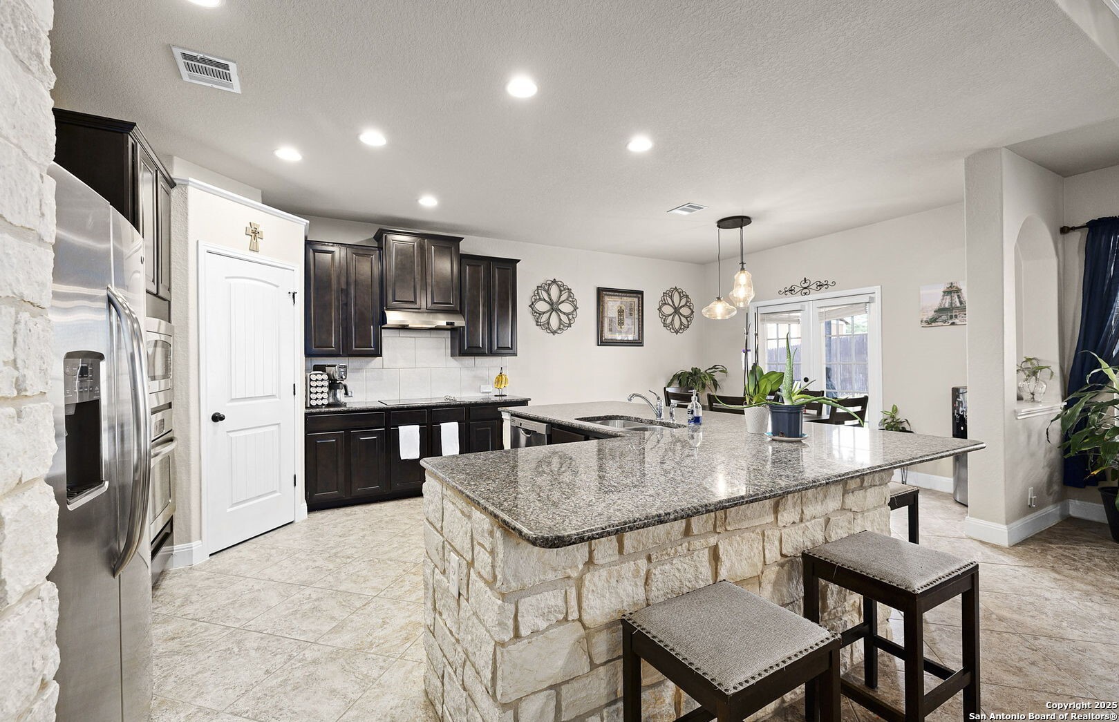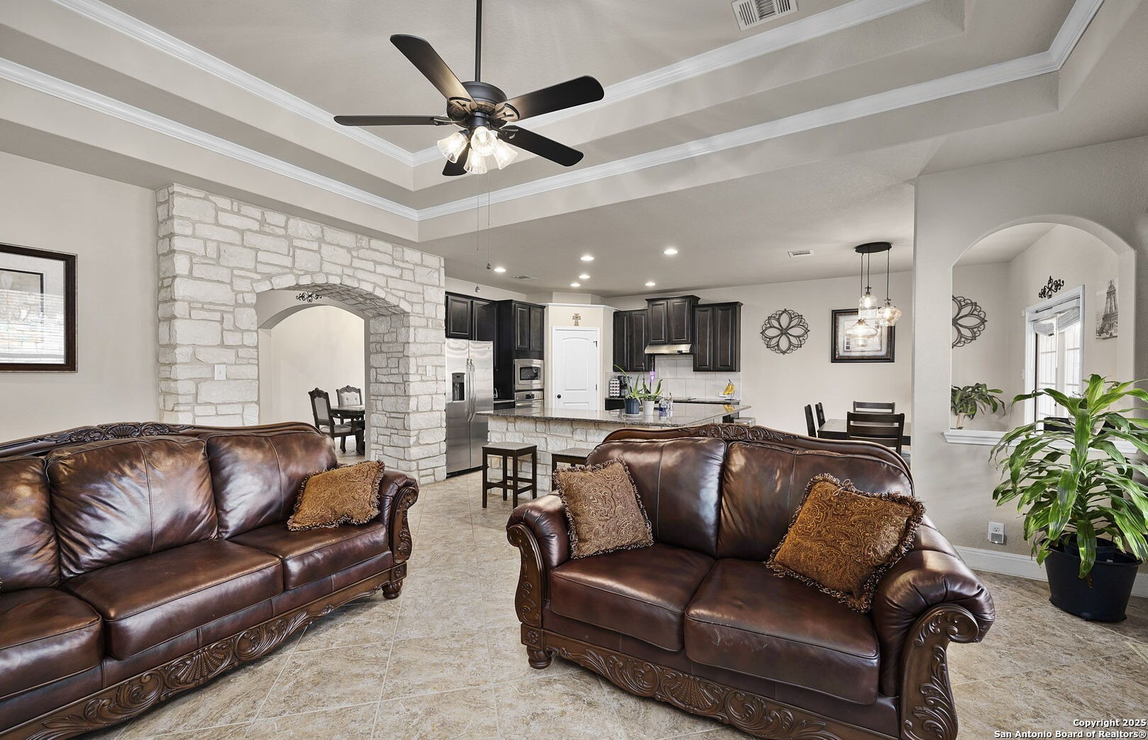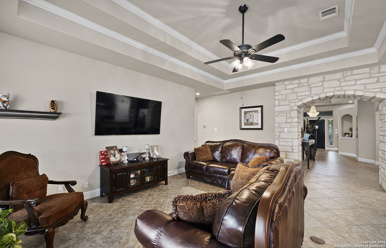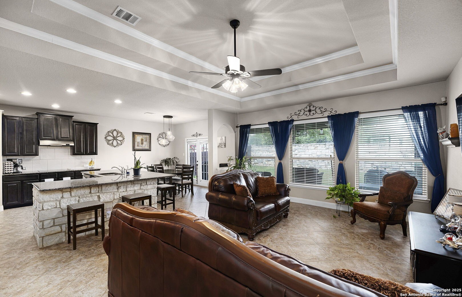 Welcome to 1.5 story home in Cibolo Texas, This beautiful home is nestled in desirable community of Turning Stone. Just minutes from I35 and downtown Cibolo. Open concept eat in kitchen with abundance granite countertop and stainless steel application. Separate formal dining and office (it can be 4th bedroom). Large master bedroom with tray ceiling and full bathroom have separate tub/shower and walk in closet. Large upstairs game room with walk-in closet and full bathroom, perfect for entertaining. Step outside and enjoy the large covered patio, sprinkler system, private fence and mature trees. Don't forget to check out the neighborhood pool and amenity.