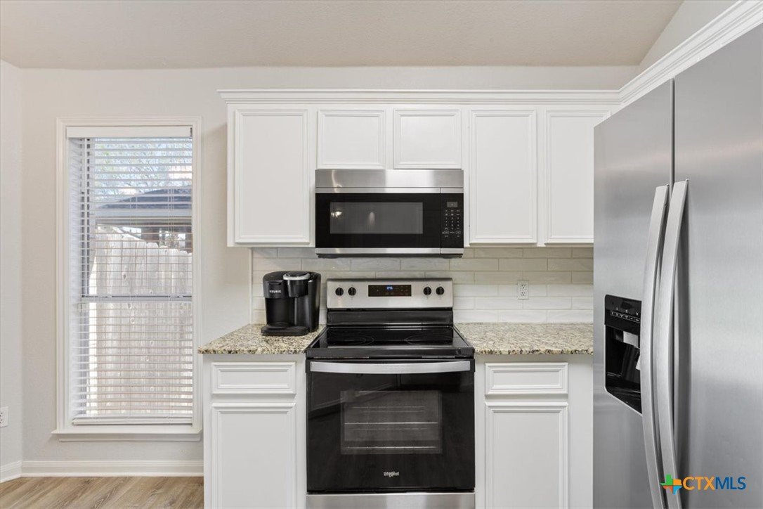 Welcome home to this charming 4-bedroom, 2-bath gem in the heart of Harker Heights. Thoughtfully designed with an open layout, this home features vinyl wood plank flooring, a cozy fireplace, and a bright kitchen with granite countertops that flows beautifully into the living space. Designated dining room would make a great office, or playroom as well. The primary suite offers a large walk-in closet and spacious bath complete with dual sinks, a garden tub, and separate shower. Home highlights include a new HVAC inside and out, new water heater, added attic insulation, solar screens, and a full Ring security system that conveys. The roof was tuned up in Spring 2026 for added peace of mind. Enjoy a full sprinkler system and a prime location within walking distance to Skipcha Elementary, with easy access to Fort Hood and Temple. A place that feels like home the moment you walk in.